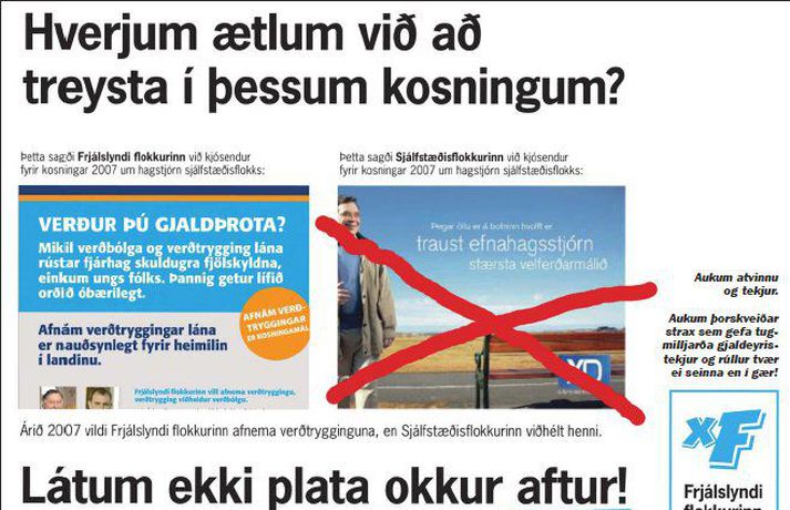 Kosningar 2009 Tengdar fréttir VG kærir sjálfstæðismenn fyrir siðanefnd SÍA Vinstri hreyfingin grænt framboð hefur kært Sjálfstæðisflokkinn í Norðausturkjördæmi til siðanefndar SÍA, Sambands íslenskra auglýsingastofa, vegna meintra brota á siðareglum samtakanna. 21. apríl 2009 21:16 Sjálfstæðismenn fá frest fram yfir kosningar til að svara kæru VG Sjálfstæðismenn í Norðvesturkjördæmi hafa frest fram yfir kosningar til að kom á framfæri sínum sjónarmiðum vegna kæru Vinstri grænna til siðanefndar SÍA, Sambands íslenskra auglýsingastofa. Þetta segir Jóhannes Gunnarsson, formaður siðanefndarinnar SÍA. Hann vill ekki tjá sig efnislega um kæruna. 22. apríl 2009 10:34 Mest lesið Kúgaðist og öskurgrét yfir lýsingum sonarins Innlent Seðlabankinn rýmkar lánþegaskilyrði Innlent Ástandið verði gjörbreytt í fyrramálið Innlent Telur að of mikil saltnotkun geri moksturinn enn erfiðari Innlent Orðin hæsta kirkja í heimi Erlent Langt í frá að málinu sé lokið Innlent Íhugar ekki stöðu sína Innlent Segja ríkislögreglustjóra þurfa að taka til hjá sér Innlent Lögreglan vill ná tali af þessu fólki Innlent Andrés ekki lengur prins og látinn yfirgefa heimili sitt Erlent Fleiri fréttir Börn og unglingar eru 9 klukkutíma á dag í símanum Reiði meðal lögreglumanna Lögreglan vill ná tali af þessu fólki Lögreglustjóri situr sem fastast og spáin gerir krökkunum grikk Vonast til að geta bjargað föstum hnúfubak í fyrramálið Fagnar komu Dags um borð í evrubátinn Nær öllu innanlandsflugi aflýst Kúgaðist og öskurgrét yfir lýsingum sonarins Seðlabankinn rýmkar lánþegaskilyrði Mannekla hafi mikil áhrif á fangaverði Ástandið verði gjörbreytt í fyrramálið Íhugar ekki stöðu sína Þau sóttu um stöðu forstöðumanns Stafrænnar heilsu Hefði aldrei giskað á uppsagnir á hennar deild Svarar ekki beinum orðum hvort Sigríður Björk njóti trausts Langt í frá að málinu sé lokið Mest ánægja starfsfólks í sveitarfélögum á Suðurlandi Strætó enn á eftir áætlun en opnun hringvegarins í vinnslu Innanlandsflugi aflýst vegna veðurs Ríkislögreglustjóra sagt að endurskoða reksturinn og allt á floti í hlákunni Farþegagjald ólögmætt og höfnin skuldar tugi milljóna Bein útsending: Langvinn einkenni Covid Segja ríkislögreglustjóra þurfa að taka til hjá sér Telur að of mikil saltnotkun geri moksturinn enn erfiðari Hringvegurinn opinn á ný Ökumaður stöðvaður með snjófargan á framrúðunni „Því miður er verklagið þannig“ Opnun Brákarborgar frestað enn á ný Ögmundur Ísak ráðinn til þingflokks Sjálfstæðisflokksins Viðbrögð hjólreiðamannsins að einhverju leyti skiljanleg Sjá meira