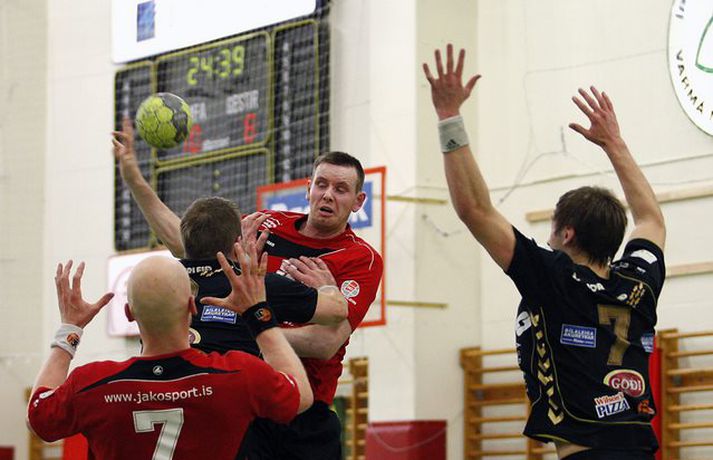 Topplið Akureyrar hélt sigurgöngu sinni áfram í N1 deild karla í gærkvöldi með 25-24 sigri á Aftureldingu í Mosfellsbænum. Akureyri hefur nú fjögurra stiga forskot á toppi deildarinnar en norðanmenn eru búnir að vinn fyrstu níu leiki sína í N1 deildinni. Akureyri hefur unnið tvo síðustu leiki sína með eins marks mun þannig að það hefur ekki mátt muna miklu að liðið tapaði sínum fyrstu stigum á tímabilinu en strákarnir hans Atla Hilmarssonar hafa klárað báða leiki og eru því áfram með fullt hús. Stefán Karlsson, ljósmyndari Fréttablaðsins og Vísis, var á leiknum að Varmá í gærkvöldi. Myndirnar má sjá í albúminu hér að neðan. Hægt er að sjá myndirnar stærri með því að smella á þær.Mynd/StefánMynd/StefánMynd/StefánMynd/StefánMynd/StefánMynd/StefánMynd/StefánMynd/StefánMynd/StefánMynd/StefánMynd/StefánMynd/StefánMynd/Stefán