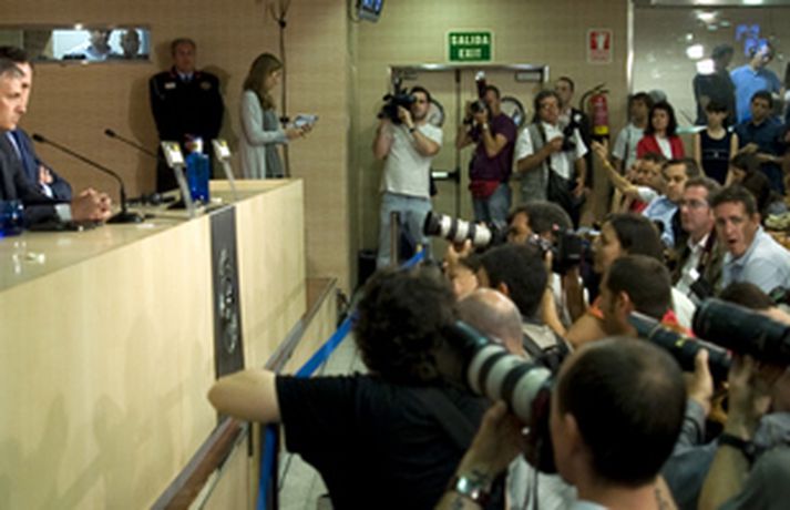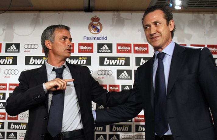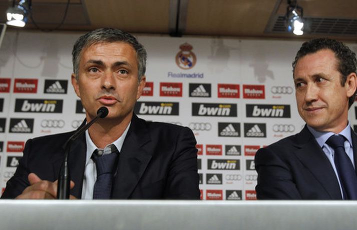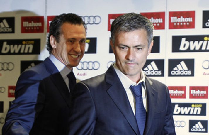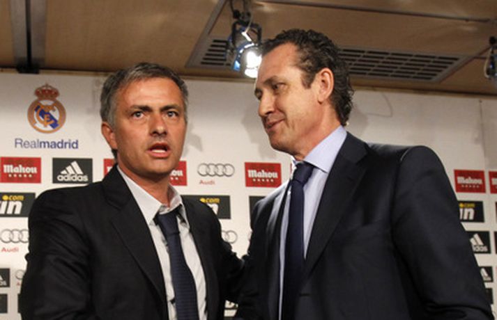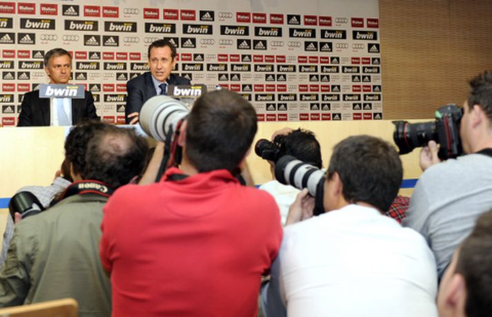 Blaðamannaherbergið á Santiago Bernabeu var troðfullt í dag þegar Jose Mourinho var kynntur sem nýr þjálfari spænska stórliðsins en honum er ætlað að gera það sem Manuel Pellegrini tókst ekki á nýloknu tímabili - að vinna titla. Mourinho leiddist ekki athyglin þegar hann fór yfir það hvernig hann ætlar að fá risastjörnur Real Madrid til að vinna hver fyrir aðra. Hann fer nú í að kynna sér betur hvernig hlutirnir ganga fyrir sig bak við tjöldin hjá Real Madrid. Ljósmyndarar AFP og AP voru mættir á svæðið og mynduðu Jose Mourinho og framkvæmdastjórann Jorge Valdano í bak og fyrir og má sjá myndasyrpu frá blaðamannafundinum hér fyrir neðan. Myndirnar má sjá í albúminu hér að neðan. Hægt er að sjá myndirnar stærri með því að smella á þær.Mynd/AFPMynd/APMynd/AFPMynd/APMynd/APMynd/AFPMynd/AFPMynd/APMynd/AFPMynd/AFPMynd/AFPMynd/AP