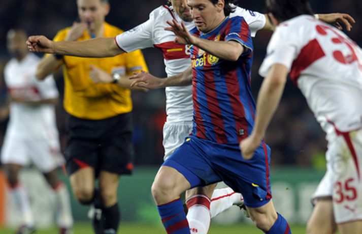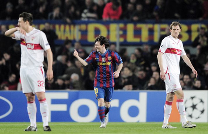Lionel Messi fór á kostum í 4-0 sigri Barcelona á Stuttgart í sextán liða úrslitum Meistaradeildarinnar í gær. Messi skoraði tvö mörk í leiknum og hefur þar með skorað 21 mark í Meistaradeildinni frá upphafi. Hér fyrir neðan má sjá myndasafn frá eftirminnilegu kvöldi litla argentínska snillingsins á Camp Nou í gær. Eftir þessi tvö glæsilegu mörk þá vantar Lionel Messi aðeins eitt mark upp á að jafna markamet félagsins í Meistaradeildinni en það met á Brasilíumaðurinn Rivaldo. Messi hefur skorað mörkin sín í 42 leikjum, 9 þeirra komu í fyrra en hann hefur skorað 4 mörk í átta leikjum á þessu tímabili. Messi vantar ennfremur fjögur mörk til viðbótar til þess að jafna landa sinn Hernán Crespo sem er sá Argentínumaður sem hefur skorað flest mörk í Meistaradeildinni frá upphafi. Mynd/AFPMynd/AFPMynd/AFPMynd/AFPMynd/AFPMynd/AFPMynd/AFPMynd/AFPMynd/AFPMynd/AFPMynd/APMynd/APMynd/APMynd/APMynd/Getty ImagesMynd/Getty ImagesMynd/Getty Images