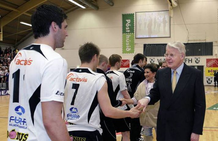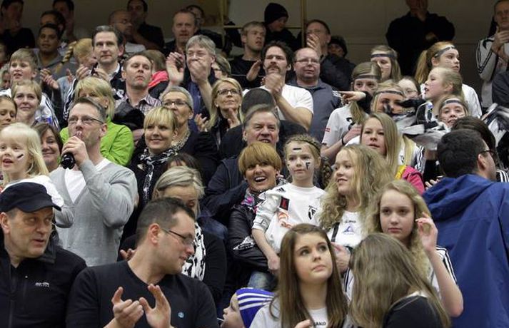 FH-ingar höfðu yfir miklu að gleðjast í Kaplakrikanum í gærkvöldi því það var ekki nóg með að þeir unnu 24-23 sigur á nágrönnum sínum í Haukum og tryggðu sér endanlega annað sætið í deildinni því með þessum sigri sáu þeir einnig til þess að Haukar verða ekki með í úrslitakeppninni í ár. FH-liðið vann ennfremur tvo af þremur innbyrðisleikjum sínum á móti Haukum í N1 deild karla í vetur en FH-ingar hafa ekki haft betur á móti nágrönnum sínum í deildarleikjum á einu tímabili síðan veturinn 1994 til 1995. Vilhelm Gunnarsson, ljósmyndari Fréttablaðsins og Vísis, var á leiknum í Kaplakrika í gærkvöldi. Myndirnar má sjá í albúminu hér að neðan. Hægt er að sjá myndirnar stærri með því að smella á þær.