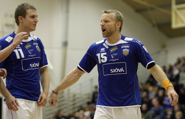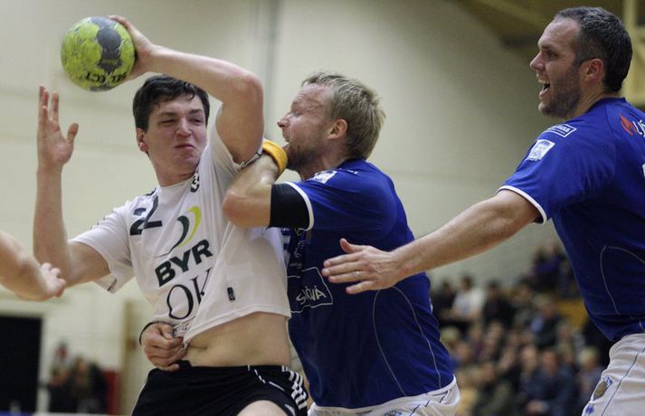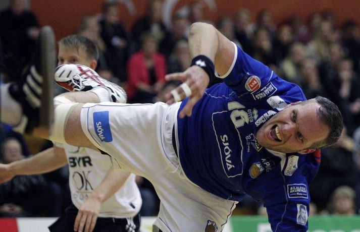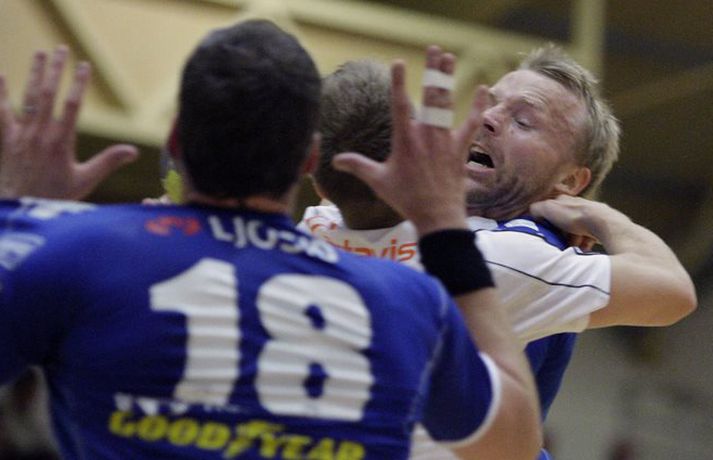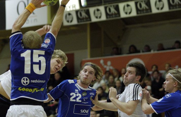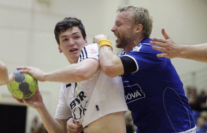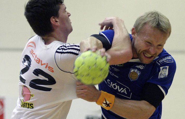 Þeir Ingimundur Ingimundarson og Ægir Hrafn Jónsson fóru á kostum er Fram gerði sér lítið fyrir og vann Íslandsmeistara FH á útivelli, 28-23, í fyrstu umferð N1-deildar karla í gær. Ingimundur sneri aftur í íslenska boltann í gær eftir nokkurra ára dvöl í atvinnumennsku og Ægir Hrafn kom til liðsins frá Gróttu fyrir tímabilið. Sigurður Eggertsson kom einnig til Fram frá Gróttu í sumar og hann var markahæstur þeirra bláklæddu í gær með átta mörk. Valgarður Gíslason, ljósmyndari Vísis og Fréttablaðsins, var á vellinum og tók þessar myndir.Mynd/Valli