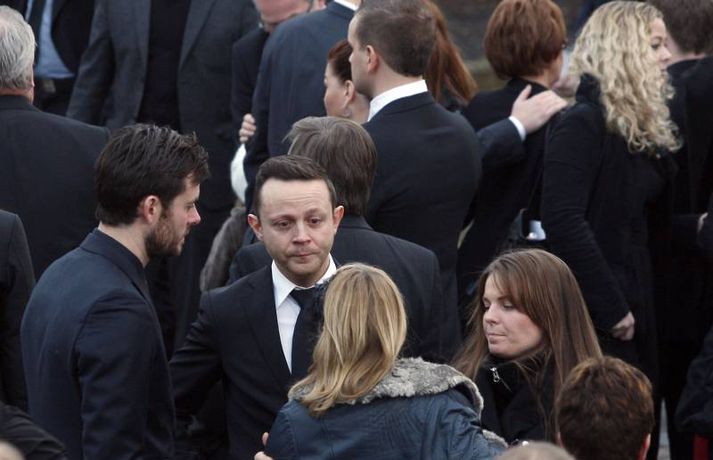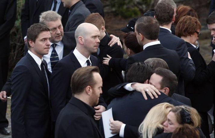 Útför tónlistarmannsins Sigurjóns Brink sem varð bráðkvaddur á heimili sínu þann sautjánda janúar síðastliðinn, var gerð frá Grafarvogskirkju í dag. Fjölmenni var við hjartnæma útförina í dag en það var séra Jóna Hrönn Bolladóttir sem jarðsöng Sigurjón. Vinir Sigurjóns spiluðu við athöfnina en fjöldinn allur af lögum var leikinn. Mörg af lögum Sigurjóns voru flutt, og mátti heyra hann sjálfan flytja sum þeirra af upptöku. Sigurjón lætur eftir sig eiginkonuna Þórunni Ernu Clausen og fjögur börn. Börn Sigurjóns höfðu skreytt kistuna með myndum og orðum líkt og sjá má á þessum myndum. En fjölskylda og nánustu vinir hans hafa stofnað hvatningarsjóðurinn Áfram, tileinkaðan þeim. Sjóðurinn hefur það markmið að hvetja og styðja börnin í því sem þau kunna að taka sér fyrir hendur í framtíðinni. Við lok athafnarinnar var lagið Aftur heim, leikið, en lagið samdi Sigurjón við texta eiginkonu sinnar og hugðist flytja það í undankeppni Eurovison sem nú stendur yfir. Vinir hans hafa ákveðið að flytja lagið næstkomandi laugardag, honum til heiðurs.