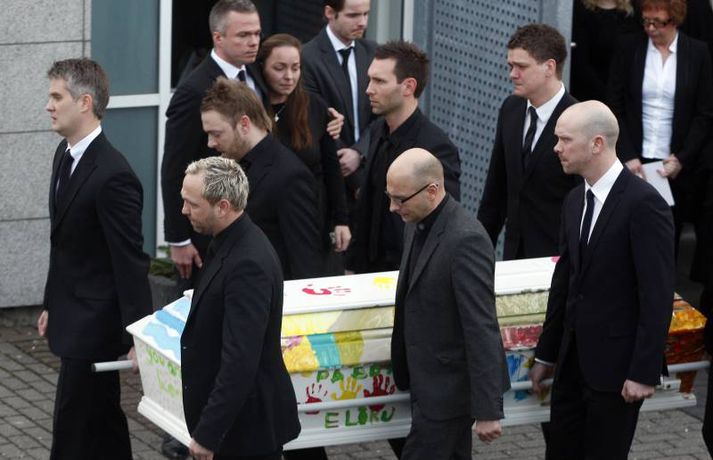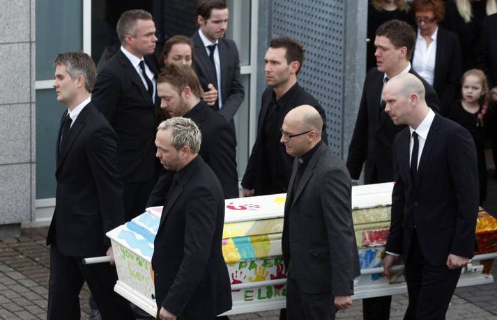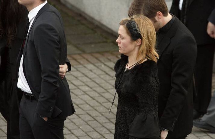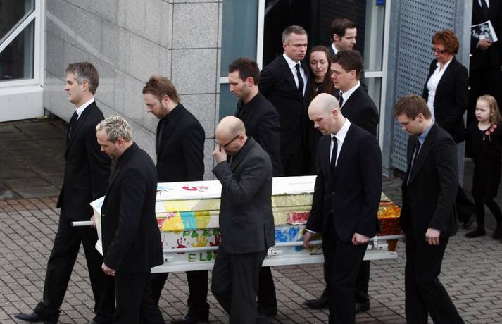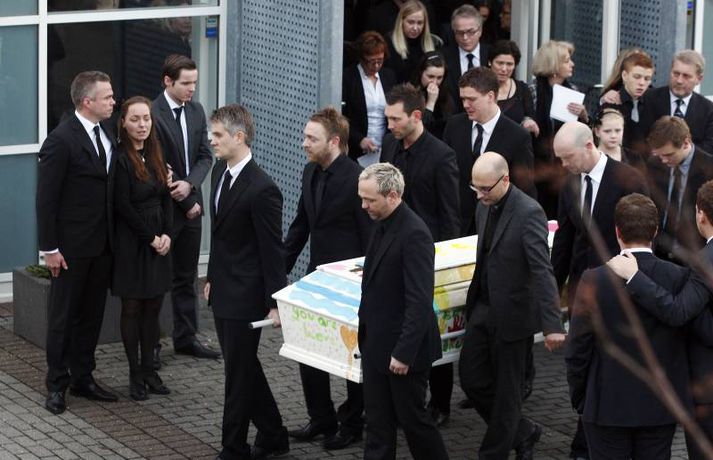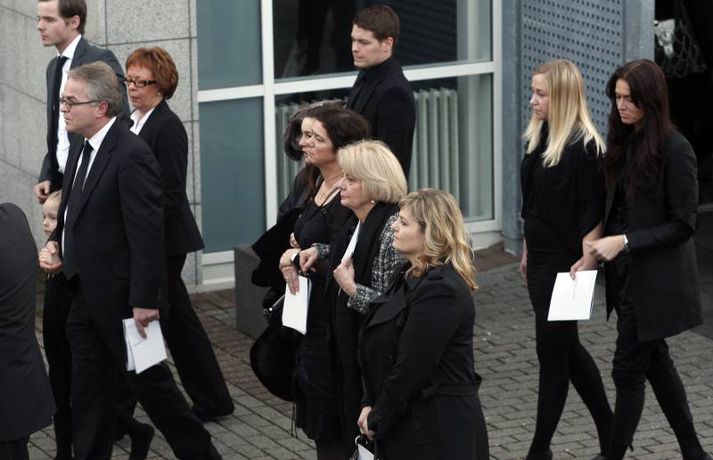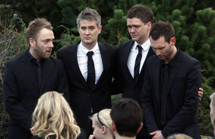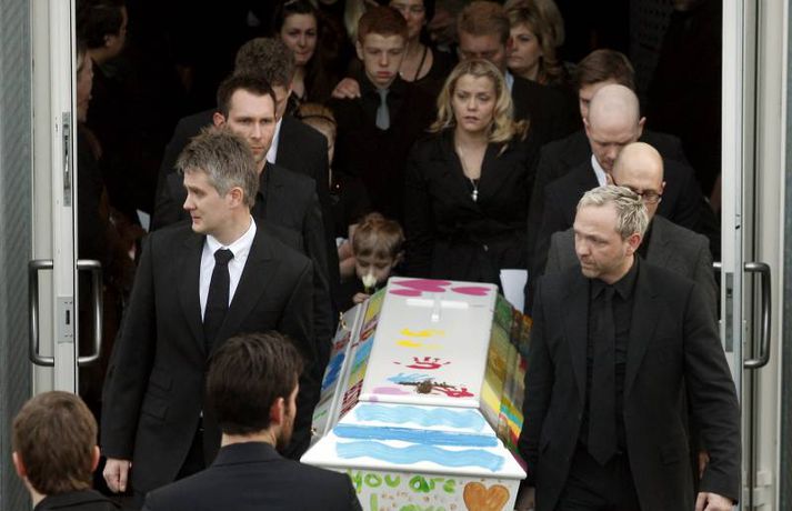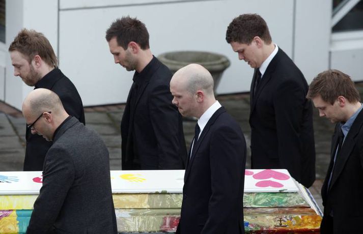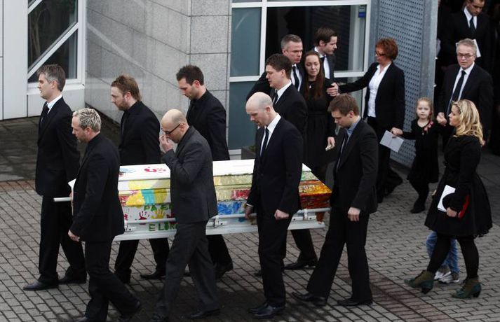 Börnin skreyttu kistu Sigurjóns 27. janúar 2011 19:33 Útför tónlistarmannsins Sigurjóns Brink sem varð bráðkvaddur á heimili sínu þann sautjánda janúar síðastliðinn, var gerð frá Grafarvogskirkju í dag. Fjölmenni var við hjartnæma útförina í dag en það var séra Jóna Hrönn Bolladóttir sem jarðsöng Sigurjón. Vinir Sigurjóns spiluðu við athöfnina en fjöldinn allur af lögum var leikinn. Mörg af lögum Sigurjóns voru flutt, og mátti heyra hann sjálfan flytja sum þeirra af upptöku. Sigurjón lætur eftir sig eiginkonuna Þórunni Ernu Clausen og fjögur börn. Börn Sigurjóns höfðu skreytt kistuna með myndum og orðum líkt og sjá má á þessum myndum. En fjölskylda og nánustu vinir hans hafa stofnað hvatningarsjóðurinn Áfram, tileinkaðan þeim. Sjóðurinn hefur það markmið að hvetja og styðja börnin í því sem þau kunna að taka sér fyrir hendur í framtíðinni. Við lok athafnarinnar var lagið Aftur heim, leikið, en lagið samdi Sigurjón við texta eiginkonu sinnar og hugðist flytja það í undankeppni Eurovison sem nú stendur yfir. Vinir hans hafa ákveðið að flytja lagið næstkomandi laugardag, honum til heiðurs. Mest lesið Lögreglan innsiglaði Flóka Innlent Ætlar ekki að láta „óða“ Demókrata kúga sig Erlent Tveir reyndir lögreglumenn ákærðir fyrir brot í starfi Innlent Ódæðin í Súdan mögulega glæpir gegn mannkyninu Erlent „Við vorum komin með súrefniskúta heim“ Innlent Málar myndir með vinstri hendi eftir heilablóðfall Innlent Miðflokkurinn nálgast Sjálfstæðisflokkinn óðfluga Innlent Nokkrar milljónir horfnar á örfáum vikum Innlent Handtekin fyrir að leka myndbandi af misþyrmingu á fanga Erlent Stíga ekki inn í Intra-málið í bili Innlent Fleiri fréttir Lögreglan innsiglaði Flóka Málar myndir með vinstri hendi eftir heilablóðfall „Við vorum komin með súrefniskúta heim“ Tveir reyndir lögreglumenn ákærðir fyrir brot í starfi Lögreglumenn ákærðir fyrir uppflettingar og hlerun Sækja slasaðan sjómann djúpt austur af landinu Miðflokkurinn nálgast Sjálfstæðisflokkinn óðfluga Óvænt stólaskipti skyggðu ekki á Bandaríkjareisuna Ákærður fyrir að birta fjölda nektarmynda af fyrrverandi Ekki meiðyrði hjá RÚV að lýsa yfirlýsingum Elds Smára réttilega Georgíumaður hafi kvænst Letta til þess að fá dvalarleyfi Eldur í bíl á Hellisheiði Líklegra að það gjósi nær áramótum Stíga ekki inn í Intra-málið í bili Vélfag kvartar til ESA og ræður kanónu „Væri fínt ef fullorðna fólkið myndi girða sig og setja reglur fyrir sig sjálft“ Álftin fæli bændur frá kornrækt Íslenskir unglingar veðja næst mest í Evrópu Húsnæðismálin í brennidepli og Alvotech lækkar á mörkuðum Aðalmeðferð í Súlunesmálinu frestað Viðreisn stillir upp á lista í Mosfellsbæ Styrktarfélag lamaðra og fatlaðra tekur upp nýtt nafn Foreldrar langveikra barna einangruð og endi jafnvel sem öryrkjar Vilja rýmri reglur um veiðar fjögurra fuglategunda Tvö pör handtekin og afskipti höfð af tvímenningum Grunaður um að nauðga konu þrisvar sömu nóttina „Aldrei fyrirgefanlegt þegar það er farið svona með opinbert fé“ Hjóluðu 1300 kílómetra meðfram Dóná með börnum sínum „Gætir verið pirrandi við matarborðið en það er þess virði“ Kynlífsverkafólk í Norræna húsinu og tölvuspilandi eldri borgarar Sjá meira
