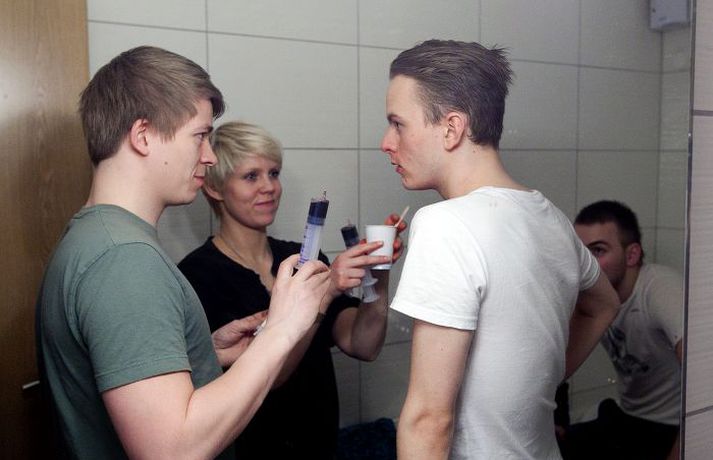 Blóðugt myndband Diktu 22. desember 2011 11:00 Alexander Briem sannfærandi í hlutverki fórnarlambs. Ýmislegt gekk á við tökurnar á myndbandinu og blóðið þurfti að vera á sínum stað. Popp/Vilhelm Hljómsveitin Dikta vinnur nú að gerð myndbands við lagið Cycles. Helgi Jóhannsson leikstýrir myndbandinu, sem er ansi blóðugt, bardagakapparnir Sigurjón Viðar Svavarsson og Bjarni Kristjánsson úr Mjölni sjá um að lemja leikarana Alexander Briem og Kjartan Darra Kristjánsson. Félagi þeirra hjá Mjölni, Jón Viðar Arnþórsson, samdi bardagaatriðin. Leikarinn Gunnar Hansson og bandaríski bardagakappinn Dean Lister koma einnig við sögu í myndbandinu, sem verður frumsýnt á næsta ári. Harmageddon Mest lesið Kóngalífi fagnað í fríríkinu Kristjaníu um helgina Harmageddon Sannleikurinn: Íslenska landsliðið bauð kókaín fyrir vændi Harmageddon Reykjavíkurdætur fjölbreyttur hópur með fjölbreyttar skoðanir Harmageddon Segir fjármagnsöflin stjórna landinu Harmageddon Sannleikurinn: Engar konur í byrjunarliðinu gegn Króatíu Harmageddon Ofbeldið bein afleiðing af þáttum eins og 70 mínútum og Jackass Harmageddon Sannleikurinn: "En á björtu nótunum þá hefst 30 ára afmælisdagskrá Rásar 2 á morgun“ Harmageddon Hversu slæmur er fótur forsætisráðherrans? Harmageddon Ein grófasta kvikmyndastikla sögunnar sett á vefinn Harmageddon Segir þingmenn misnota þinghlé vegna sveitarstjórnarkosninga Harmageddon
