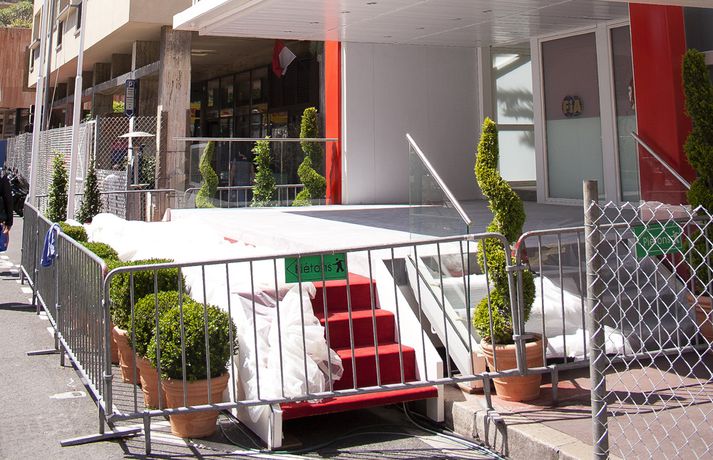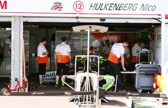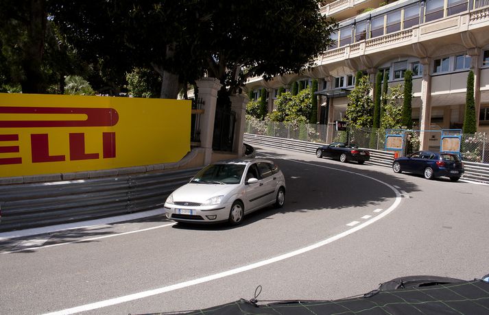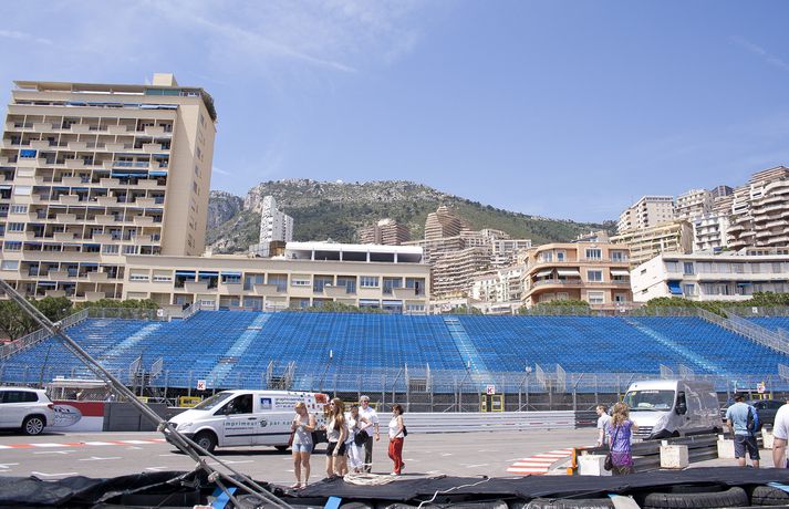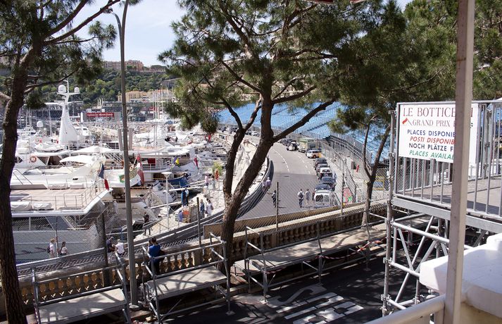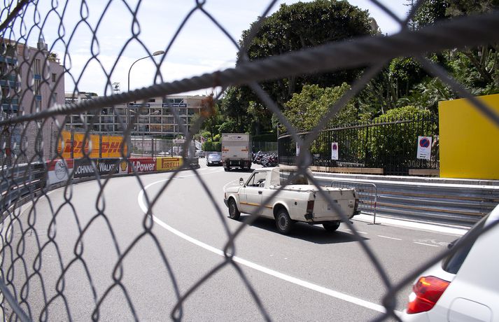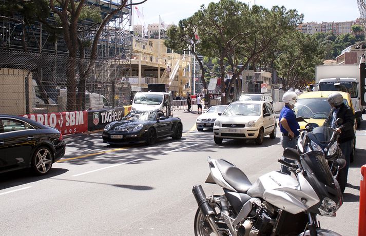 Um helgina fór kappaksturinn í Mónakó fram og fagnaði Mark Webber sigri þegar hann ók Red Bull-bíl sínum yfir endalínuna. Það er þó ekki einfalt að skella upp kappakstursbraut í einu minnsta landi í Evrópu. Kappakstursbrautin liggur á helstu götum borgarinnar. Það er þó ekki hægt að loka götunum fyrir almenna umferð heila viku fyrir kappaksturinn. Blaðamaður Vísis var á ferðinni í Mónakó og tók meðfylgjandi myndir af undirbúninginum fyrir helgi.Liðsmenn Force India-liðsins voru í óða önn að púsla bíl Nico Hulkenberg saman og gera kláran fyrir æfingar fimmtudagsins.mynd/biggiKonunglega stúkan í Mónakó var komin upp og búið að teppaleggja stigana. Albert Prins hefur örugglega skemmt sér vel í ár enda með glæsilegt útsýni yfir ráslínuna.mynd/biggiNiður við sundlaugina var búið að skella upp stúkum og verið að reisa vegriðin umhverfis brautina. Hér má einnig sjá hvernig borgin er byggð upp í fjöllin.mynd/biggiHorft frá Mirabeau niður að Loews beygjunni, þeirri þrengstu í Formúlu 1, frá Mirabeau. Þarna er þung umferð á háannatíma á miðvikudegi fyrir mót.mynd/biggiMirabeau-beygjan er nefnd eftir hótelinu sem við hana stendur (fyrir aftan ljósmyndara). Brekkan niður að henni er mun brattari en hún virðist vera í sjónvarpinu.mynd/biggiÞegar horft var yfir höfnina úr Beau Rivage-brekkunni blöstu við snekkjur í tugatali í höfninni. Einnig mátti heyra spænskar raddir verkamanna sem börðust við að koma fyrir risaskjáum, dekkjaveggjum og vegriðum í tæka tíð.mynd/biggiGöturnar eru mjög þröngar í Mónakó. Þær eru jafnvel enn þrengri þegar fólk er búið að leggja bílum sínum að evrópskum sið. Hér má sjá útsýnið af VIP svölunum í Beau Rivage-brekkunni yfir Tabac-beygjuna og höfnina.mynd/biggiFyrsta beygja í brautinni í Mónakó er kölluð Ste Devote eftir þessari kirkju sem stendur nokkrum metrum frá.mynd/biggiEins og allt annað í Mónakó þá er útkoman út af viðgerðarsvæðinu þröng. Þó búið sé að setja upp vegrið og undirbúa borgina fyrir kappakstur er umferð hleypt um göturnar eins og um venjulegan dag væri að ræða í furstadæminu.mynd/biggiAugu allra eru á þessum ljósum í upphafi hvers móts.mynd/biggi