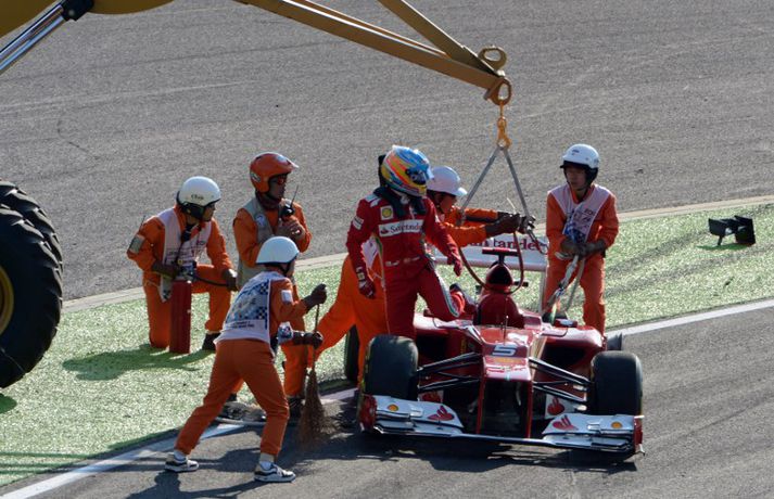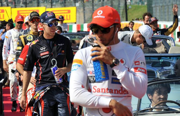 Sebastian Vettel stýrði Red Bull-bíl sínum örugglega í mark í japanska kappakstrinum á Suzuka-brautinni. Vettel ræsti af ráspól og var í forystu allan tímann. Vettel er nú aðeins fjórum stigum á eftir Fernando Alonso í heimsmeistarakeppni ökuþóra. Alonso féll úr leik í fyrstu beygju eftir samstuð við Lotus-bíl Kimi Raikkönen. Það var því ljóst frá byrjun að kappaksturinn myndi breyta stöðunni í heimsmeistarakeppninni mikið. Liðsfélagi Alonso hjá Ferrari, Felipe Massa, lauk mótinu í öðru sæti eftir að hafa ekið frábærlega. Miðað við árangur Massa er aldrei að vita hversu vel Alonso hefði gengið að verja sjálfan sig í titilbaráttunni. Þetta er jafnframt í fyrsta sinn í nærri tvö ár sem Massa stendur á verðlaunapalli. Heimamaðurinn Kamui Kobayashi stal hins vegar senunni og lauk mótinu í síðasta verðlaunasætinu. Það ætlaði allt um koll að keyra í Japan þegar Kobayashi steig upp úr bílnum svo ánægðir voru Japanir með árangur síns manns. Þetta er í fyrsta sinn síðan 1990 sem Japani stendur á verðlaunapalli í japanska kappakstrinum. Það var Aguri Suzuki gerði það síðast. Verðlaunasætið var ekki auðvelt fyrir Kobayashi að verja því Jenson Button á McLaren-bíl gerði harða atlögu á síðustu hringjunum. Button varð þó að láta sér fjórða sætið nægja. Hinn McLaren-ökuþórinn, Lewis Hamilton, varð fimmti eftir að hafa verið í vandræðum með uppstillingu bílsins. Þrátt fyrir samstuðið við Alonso fyrir fyrstu beygju skilað Kimi Raikkönen Lotus-bíl sínum heim í sjötta sæti á undan Nico Hulkenberg á Force India og Pastor Maldonado á Williams. Mark Webber ók frábærlega til að tryggja sér næst síðasta stigasætið. Hann féll niður í síðasta sætið eftir fyrstu beygju því Romain Grosjean var enn og aftur í ruglinu í ræsingunni og ók á Webber. Grosjean fékk þyngstu refsingu sem í boði er: 10 sekúnta refsingu á viðgerðarsvæðinu. Toro Rosso-ökumaðurinn Daniel Ricciardo frá Ástralíu varð tíundi og hlaut eitt stig fyrir. Michael Schumacher reyndi þó að hrifsa sætið af Ricciardo undir lokin en náði ekki. Fernando Alonso á nú mjög erfitt verkefni fyrir höndum enda er ljóst að Ferrari-bíllinn er ekki sá besti á ráslínunni, sannarlega ekki jafn góður og Red Bull-bíll Vettels. Næsti kappakstur fer fram í Kóreu eftir viku. Yeongam brautin á að henta Ferrari bílnum nokkuð vel og það verður forvitnilegt að sjá hvernig ítalska liðið bregst við. Úrslit mótsins NRÖkumaðurLið / vélHringirTímiBil1Sebastian VettelRed Bull/Renault531:28'56.2422Felipe MassaFerrari533Kamui KobayashiSauber/Ferrari534Jenson ButtonMcLaren/Mercedes535Lewis HamiltonMcLaren/Mercedes536Kimi RäikkönenLotus/Renault537Nico HülkenbergForce India/Mercedes538Pastor MaldonadoWilliams/Renault539Mark WebberRed Bull/Renault5310Daniel RicciardoToro Rosso/Ferrari5311M.SchumacherMercedes5312Paul Di RestaForce India/Mercedes5313Jean-Eric VergneToro Rosso/Ferrari5314Bruno SennaWilliams/Renault5315H.KovalainenCaterham/Renault521 hringur16Timo GlockMarussia/Cosworth521 hringur17Vitaly PetrovCaterham/Renault521 hringur18Pedro de la RosaHRT/Cosworth521 hringur19Romain GrosjeanLotus/Renault51Lauk ekkiCharles PicMarussia/Cosworth37HættiN.KarthikeyanHRT/Cosworth32HættiSergio PérezSauber/Ferrari18SnarsnéristFernando AlonsoFerrari0ÁreksturNico RosbergMercedes0Árekstur Staðan i heimsmeistarakeppni ökuþóraNRÖkumaðurStig1Fernando Alonso1942Sebastian Vettel1903Kimi Räikkönen1574Lewis Hamilton1525Mark Webber1346Jenson Button1317Nico Rosberg938Romain Grosjean829Felipe Massa6910Sergio Pérez6611Kamui Kobayashi5012Paul Di Resta4413M.Schumacher4314Nico Hülkenberg3715Pastor Maldonado3316Bruno Senna2517Jean-Eric Vergne818Daniel Ricciardo719Timo Glock020H.Kovalainen021Vitaly Petrov022J.D'Ambrosio023Charles Pic024N.Karthikeyan025Pedro de la Rosa0 Staðan í heimsmeistarakeppni bílasmiða NRÖkumaðurStig1Red Bull/Renault3242McLaren/Mercedes2833Ferrari2634Lotus/Renault2395Mercedes1366Sauber/Ferrari1167Force India/Mercedes818Williams/Renault589Toro Rosso/Ferrari1510Marussia/Cosworth011Caterham/Renault012HRT/Cosworth0