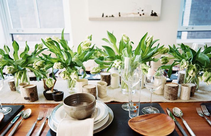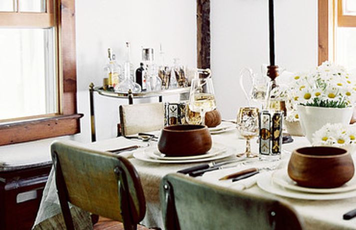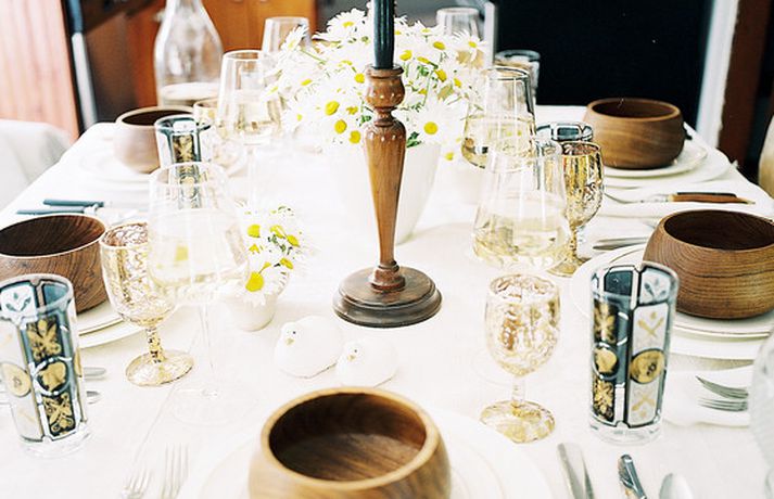 Aðventan er gengin í garð með tilheyrandi jólaboðum og gleði. Fyrir þá sem eru í því að bjóða vinum og vandamönnum heim í glögg og hlaðborð getur verið gaman að skoða fallegar myndir af ólíkum veisluborðum og fá svolítinn innblástur. Afar vinsælt er að nota hráefni úr náttúrunni um þessar mundir sem og að blanda miklu og mörgum stílum saman. Leyðu hugmyndarfluginu að njóta sín.Merktu sæti gestanna með frumlegum og skemmtilegum hætti.Þessar grófu viðarskálar brjóta skemmtilega upp hátíðarborðið.