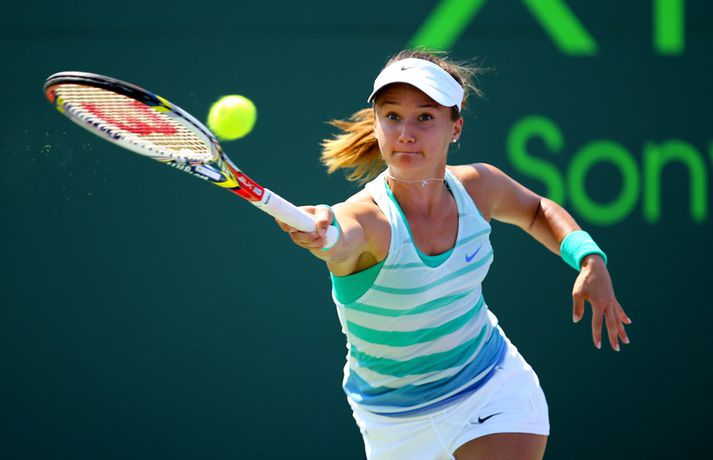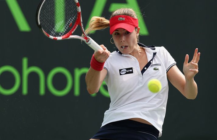 Franska tenniskonan Alize Cornet vann þá bandarísku Lauren Davis á Opna Sony tennismótinu í Miami í nótt sem vakti kannski ekki sérstaka eftirtekt nema fyrir það að báðar þurftu hjólastól til að yfirgefa völlinn. Alize Cornet vann Lauren Davis 2-6, 6-3 og 6-2 en leikurinn tók tvo tíma og 23 mínútur. Lauren Davis byrjaði mjög vel en hafði síðan ekki kraft í að landa sigrinum. Það var ekki aðeins lengd leiksins sem olli því að þær voru báðar illa fyrir kallaðar eftir leikinn því hitinn hafði stór áhrif. Alize Cornet fékk hitaslag en Lauren Davis var algjörlega örmagna. Alize Cornet er því komin í átta manna úrslit á mótinu ásamt þeim Sara Errani (Ítalía), Ana Ivanovic (Serbía), Roberta Vinci (Ítalía), Maria Sharapova (Rússland), Klara Zakopalova (Tékkland), Sorana Cirstea (Rúmenía) og Jelena Jankovic (Serbía).
