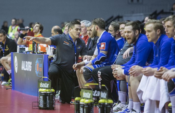 Aron: Klúðruðum fimm hundrað prósent færum í seinni hálfleik Íslenska landsliðið tapaði með fimm marka mun á móti heimsmeisturum Spánverja í lokaleik sínum í B-riðli á EM í handbolta í Danmörku. Landsliðsþjálfarinn Aron Kristjánsson talaði eftir leikinn um dauðafærin sem fóru forgörðum í seinni hálfleiknum. 16. janúar 2014 18:55