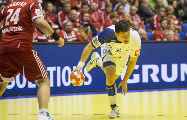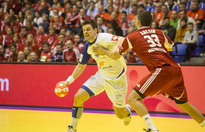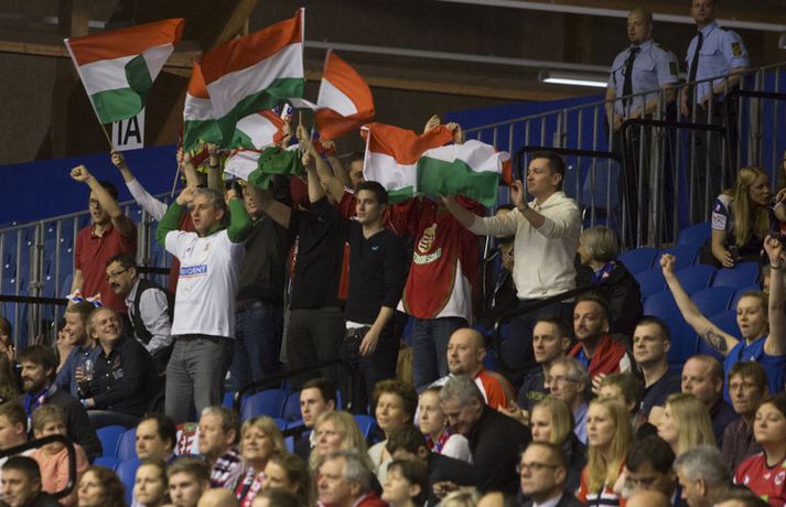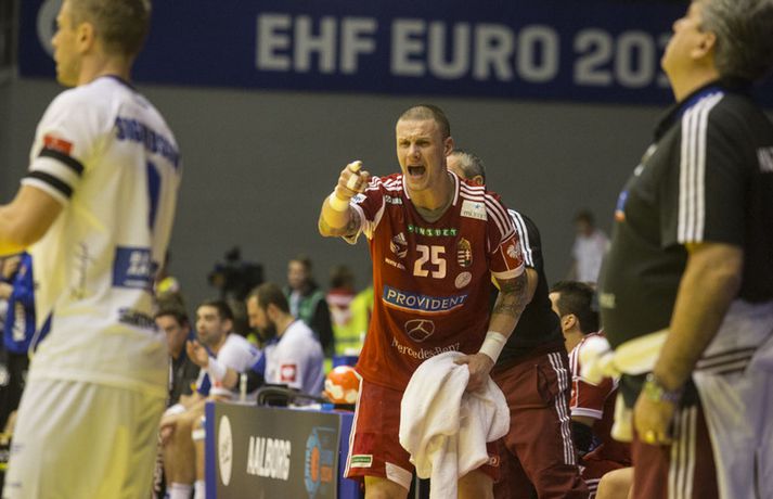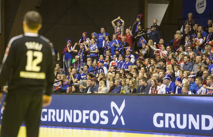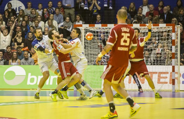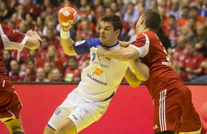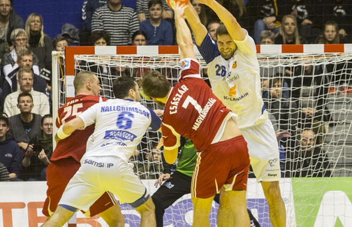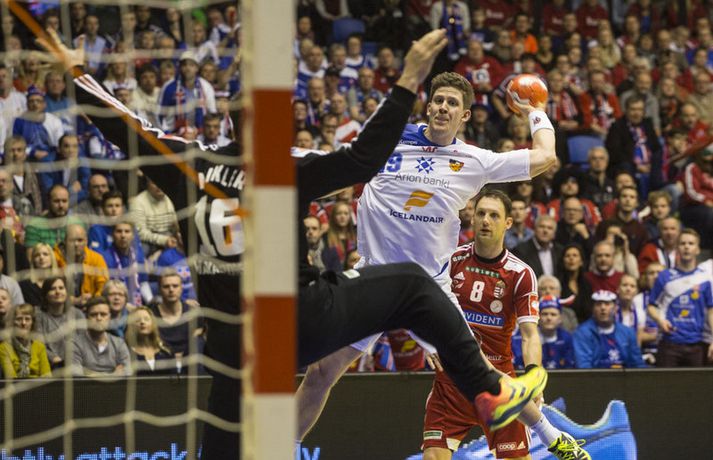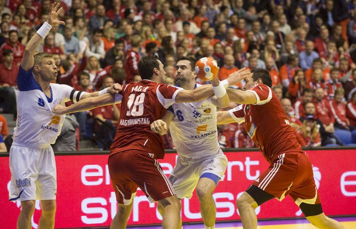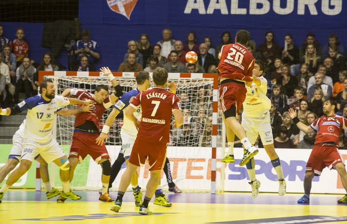 Íslenska handboltalandsliðinu tókst ekki að hefna fyrir tapið á Ólympíuleikunum í kvöld þegar liðið gerði 27-27 jafntefli við Ungverjaland í 2. umferð B-riðils á EM í handbolta í Danmörku. Þetta voru sömu úrslit á ÓL í London en þá unnu Ungverjar í framlengingu og fóru síðan alla leið í úrslitaleikinn eins og íslenska landsliðið gerði fjórum árum fyrr. Íslenska liðið var einu marki yfir þegar fimmtán sekúndur voru eftir að leiknum en Ungverjum tókst að jafna leikinn og stoppa síðan íslenska liðið í lokasókninni. Jafntefli þýðir hinsvegar að Ísland er komið áfram í milliriðil og fer þangað með að minnsta kosti eitt stig. Daníel Rúnarsson, ljósmyndari Vísis og Fréttablaðsins, var í höllinni í Álaborg í kvöld og náði þessum skemmtilegu myndum hér fyrir ofan og neðan.Mynd/DaníelMynd/DaníelMynd/DaníelMynd/DaníelMynd/DaníelMynd/DaníelMynd/Daníel