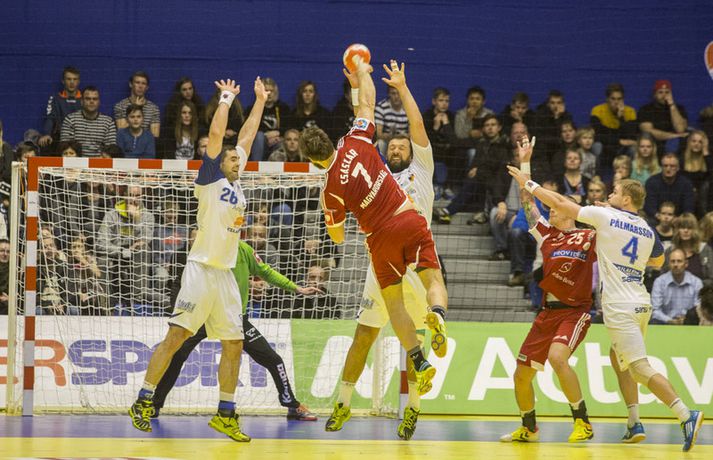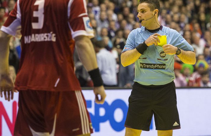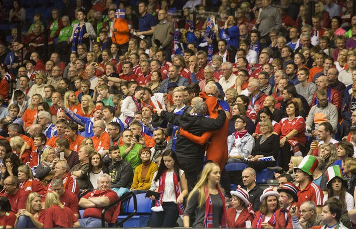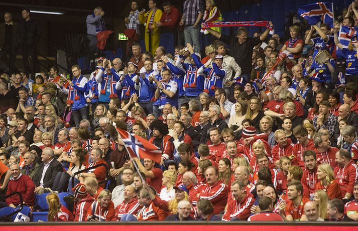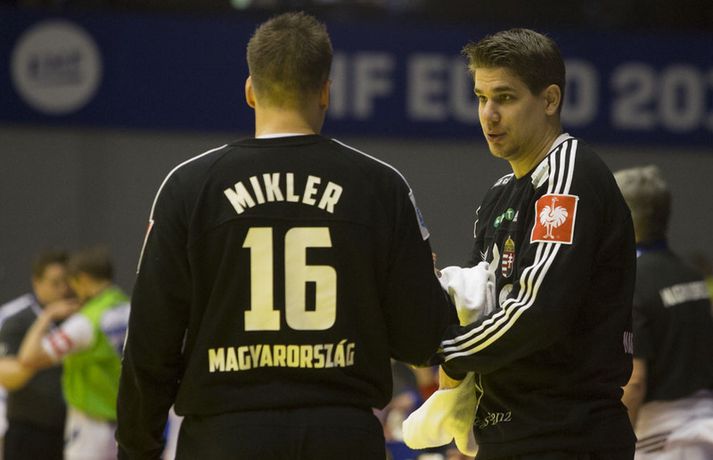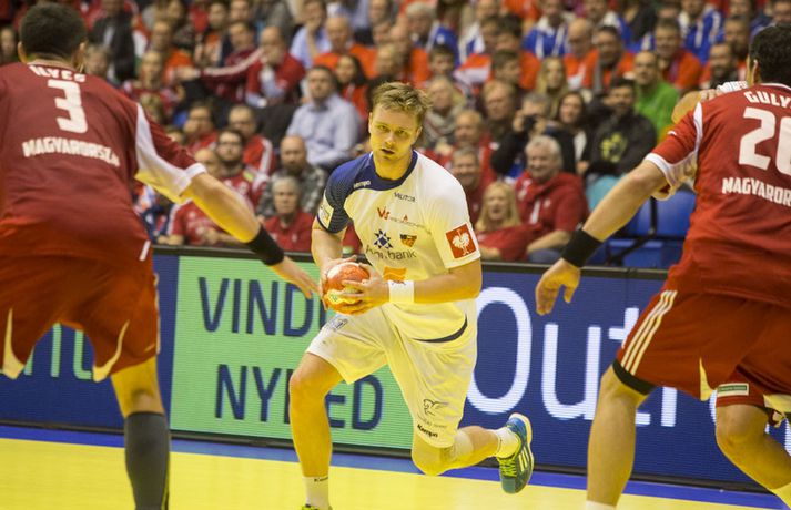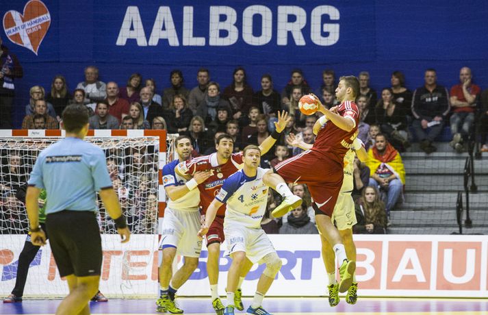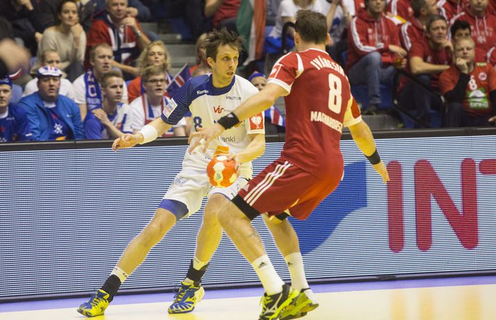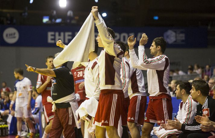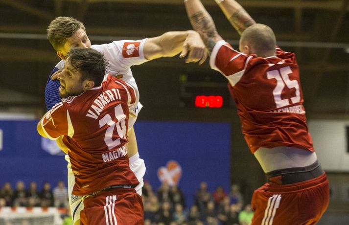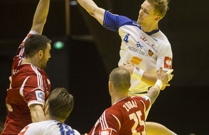 Íslenska handboltalandsliðinu tókst ekki að hefna fyrir tapið á Ólympíuleikunum í kvöld þegar liðið gerði 27-27 jafntefli við Ungverjaland í 2. umferð B-riðils á EM í handbolta í Danmörku. Þetta voru sömu úrslit á ÓL í London en þá unnu Ungverjar í framlengingu og fóru síðan alla leið í úrslitaleikinn eins og íslenska landsliðið gerði fjórum árum fyrr. Íslenska liðið var einu marki yfir þegar fimmtán sekúndur voru eftir að leiknum en Ungverjum tókst að jafna leikinn og stoppa síðan íslenska liðið í lokasókninni. Jafntefli þýðir hinsvegar að Ísland er komið áfram í milliriðil og fer þangað með að minnsta kosti eitt stig. Daníel Rúnarsson, ljósmyndari Vísis og Fréttablaðsins, var í höllinni í Álaborg í kvöld og náði þessum skemmtilegu myndum hér fyrir ofan og neðan.Mynd/DaníelMynd/DaníelMynd/DaníelMynd/DaníelMynd/DaníelMynd/DaníelMynd/Daníel