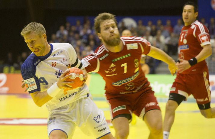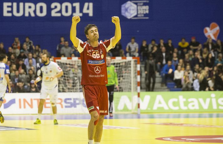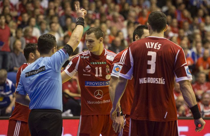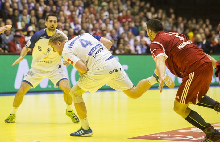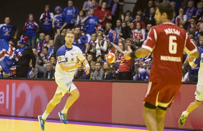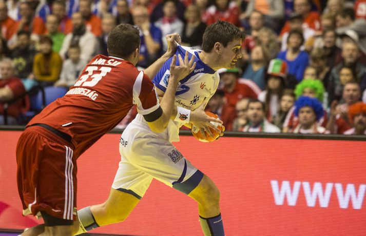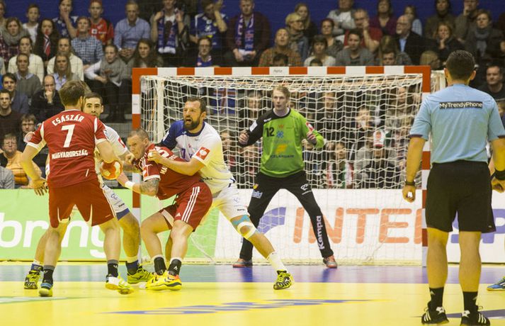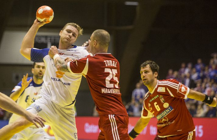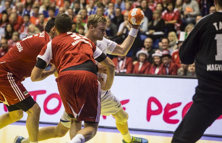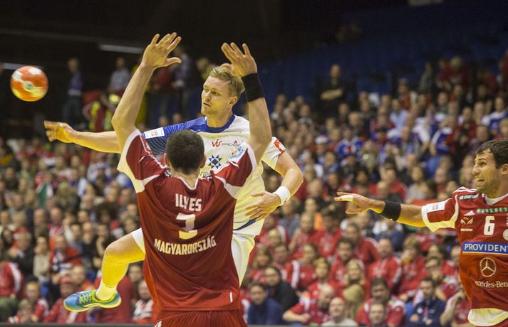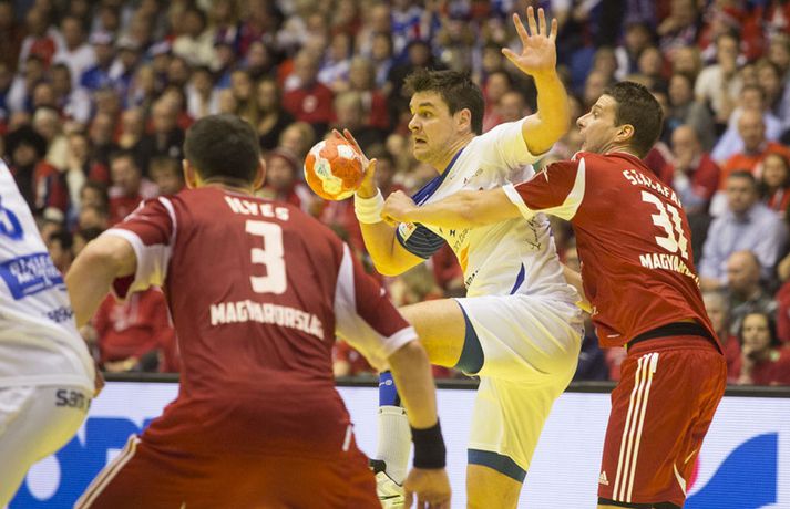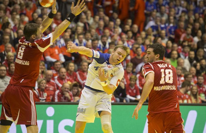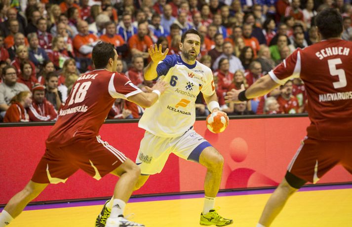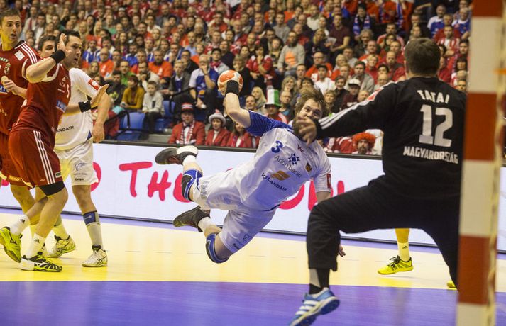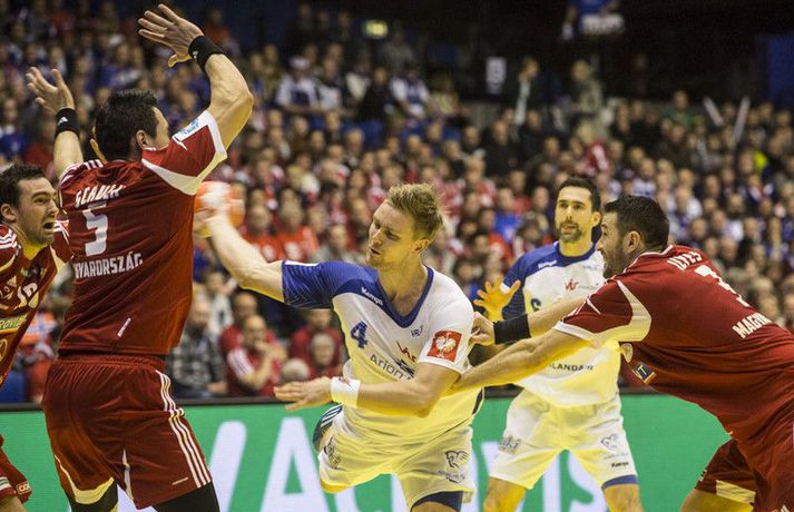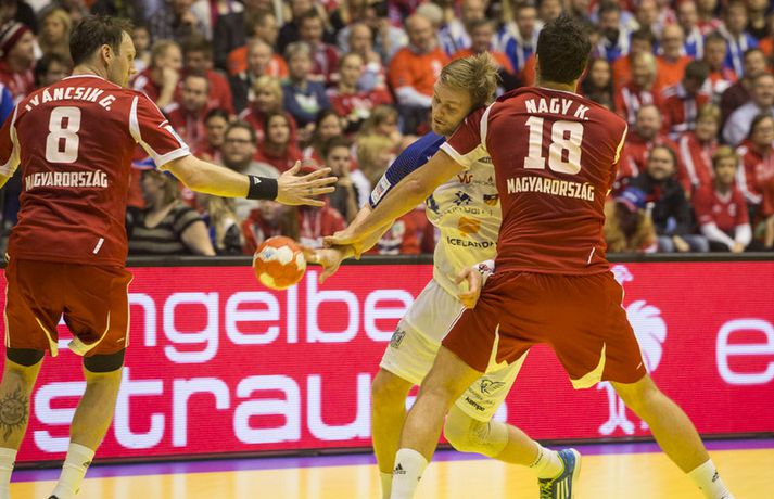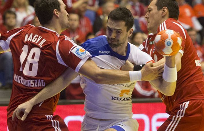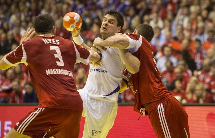 Umfjöllun: Ísland - Ungverjaland 27-27 | Svekkjandi jafntefli gegn Ungverjum Ísland varð að sætta sig við jafntefli gegn Ungverjum á EM í handbolta og náði þar með ekki að hefna fyrir tapið sára á Ólympíuleikunum í London. Ísland er þó öruggt áfram í milliriðlakeppnina. 14. janúar 2014 14:14