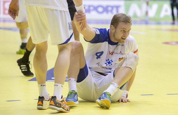 Aron: Var brjálaður í leikslok Aron Pálmarsson fór strax í kælingu eftir leikinn í kvöld og var með kælingu á hné og niður er blaðamaður ræddi við hann. Hann sagðist vera í lagi þó svo hann finndi fyrir verkjum. 14. janúar 2014 20:57