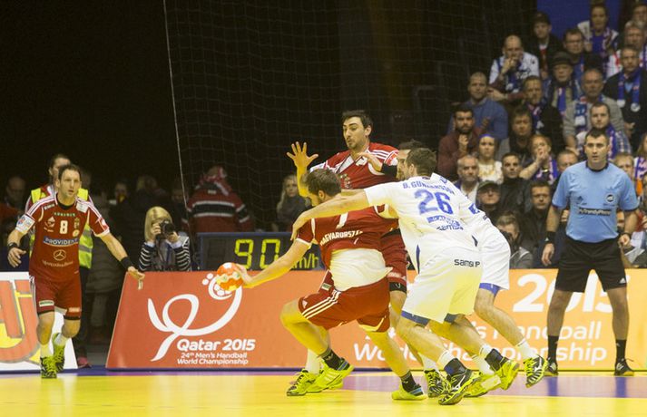 EM 2014 karla Tengdar fréttir Aron: Svekktur að hafa ekki unnið leikinn "Þetta var gríðarlega erfiður leikur. Við byrjuðum illa og vorum allt of passífir í vörninni," sagði Aron Kristjánsson landsliðsþjálfari eftir spennuleikinn mikla gegn Ungverjum. 14. janúar 2014 20:40 Arnór: Eigum að vinna þetta lið Strákarnir okkar voru þungir á brún eftir leikinn gegn Ungverjum. Þeir eru komnir áfram í milliriðil en vildu sigur og ekkert annað í kvöld. 14. janúar 2014 19:40 Kári: Verðum að hafa þor til þess að sækja á markið "Getum við ekki bara verið sáttir með þetta? Einn punktur í leik þar sem þetta var orðið svolítið erfitt hjá okkur,“ sagði Fenrísúlfurinn Kári Kristján Kristjánsson eftir jafnteflið gegn Ungverjum. 14. janúar 2014 19:47 Umfjöllun: Ísland - Ungverjaland 27-27 | Svekkjandi jafntefli gegn Ungverjum Ísland varð að sætta sig við jafntefli gegn Ungverjum á EM í handbolta og náði þar með ekki að hefna fyrir tapið sára á Ólympíuleikunum í London. Ísland er þó öruggt áfram í milliriðlakeppnina. 14. janúar 2014 14:14 Aron: Var brjálaður í leikslok Aron Pálmarsson fór strax í kælingu eftir leikinn í kvöld og var með kælingu á hné og niður er blaðamaður ræddi við hann. Hann sagðist vera í lagi þó svo hann finndi fyrir verkjum. 14. janúar 2014 20:57 Guðjón Valur: Lít á þetta sem tapað stig Guðjón Valur Sigurðsson, fyrirliði íslenska landsliðsins, var hundfúll eftir jafnteflið á móti Ungverjum í kvöld en íslenska landsliðið fékk á sig jöfnunarmark átta sekúndum fyrir leikslok og tókst síðan ekki að nýta síðustu sóknina sína. 14. janúar 2014 19:03 Guðjón: Hárrétt ákvörðun hjá Ásgeiri "Þetta var kaflaskiptur leikur. Margir hlutir gengu vel. Það sem gekk vel fór svo að ganga illa. Við áttum möguleika á sigri en gekk því miður ekki," sagði landsliðsfyrirliðinn Guðjón Valur Sigurðsson eftir jafnteflið gegn Ungverjum í kvöld. 14. janúar 2014 21:08 Aron: Þetta stig gæti orðið mjög dýrmætt í framhaldinu Íslenska handboltalandsliðið var grátlega nálægt því að vinna annan leik sinn í röð á EM í Danmörku þegar liðið gerði 27-27 jafntefli við Ungverja í Álaborg í kvöld. Aron Kristjánsson, landsliðsþjálfari sá þetta bæði sem unnið og tapað stig. 14. janúar 2014 18:56 Mest lesið Vonast til að komast í Kórinn: „Menn hafa aldrei séð annað eins“ Fótbolti Landsleiknum aflýst og framhaldið óljóst Fótbolti Fær þrjár milljónir á dag næstu sex árin fyrir að gera ekkert Sport Stöðufundur í Laugardal klukkan 10:30 Fótbolti Enska úrvalsdeildin í jólaköttinn Enski boltinn Elsta konan til klára Járnkarlinn Sport Landsliðskonur aðstoðuðu ökumenn í vanda Fótbolti Leikið á Þróttaravelli á miðvikudag Fótbolti Markvörður Inter banaði háöldruðum manni í hjólastól Sport Birnir frá Akureyri í Garðabæ Íslenski boltinn Fleiri fréttir Teitur inn í landsliðið Gísli bjó til meira en þriðjung markanna Haukur magnaður í sigri Löwen Blær skoraði þrjú og lagði upp jöfnunarmarkið KA/Þór sótti sigur gegn Fram og stigalausar Stjörnukonur Fram kjöldró HK og spenna í Eyjum Meistararnir unnu gegn ÍBV og ÍR hafði betur gegn Selfyssingum Donni og félagar björguðu stigi undir lokin Afturelding komst upp að hlið Hauka Seldu bleika búninginn hennar Herrem fyrir meira en milljón „Leið vel þegar ég fór inn úr færinu“ Uppgjörið FH - Haukar 27-26 | Birgir Már tryggði FH sigur eftir spennutrylli Bernard fór mikinn en Valsmenn sluppu með sigurinn Fyrsti sigur Þórsara síðan í byrjun september Ómar Ingi með fullkomnan leik í Meistaradeildinni Guðjón Valur og lærisveinar hársbreidd frá því að vinna Kiel Hlakka til að sjá Viktor Gísla aftur og senda honum skilaboð Neyddar í sömu stöðu og Ísland og límdu melónur á skóna Hatar hvítu stuttbuxurnar Fjölga stórmótum landsliða í handboltanum Allt jafnt í bikarslag íslensku stelpnanna Orri fagnaði í Íslendingaslag í Meistaradeildinni Hjartavandamál halda Reyni frá keppni Stórar breytingar á Evrópukeppnum í handbolta Framarar töpuðu aftur á heimavelli í Evrópudeildinni Magdeburg komst örugglega áfram í sextán liða úrslitin Íslensku strákarnir áberandi í Evrópudeildinni „Stærri og sterkari en liðin sem við þekkjum hérna heima“ Viktor til liðs við frænda sinn og bróður Uppgjörið: Portúgal - Ísland 26-25 | Annar eltingaleikur íslenska liðsins endar með öðru tapi Sjá meira