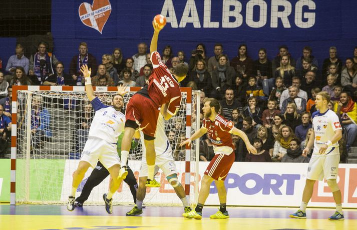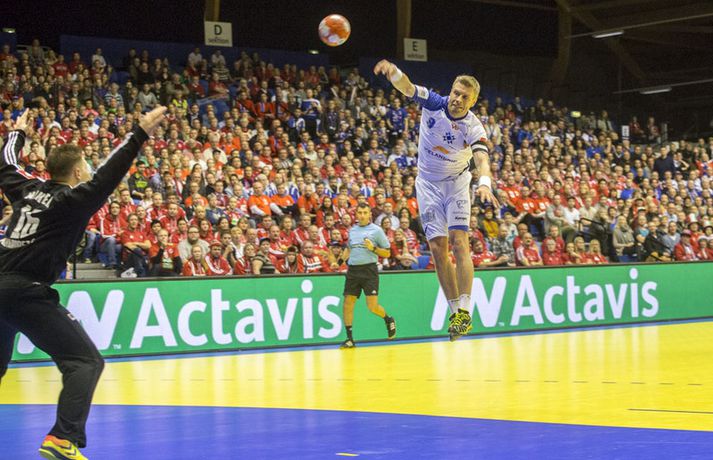 Hefndin þarf að bíða betri tíma - myndir 14. janúar 2014 22:33 Guðjón Valur Sigurðsson skorar hér í leiknum í kvöld. Mynd/Daníel Íslenska handboltalandsliðinu tókst ekki að hefna fyrir tapið á Ólympíuleikunum í kvöld þegar liðið gerði 27-27 jafntefli við Ungverjaland í 2. umferð B-riðils á EM í handbolta í Danmörku. Þetta voru sömu úrslit á ÓL í London en þá unnu Ungverjar í framlengingu og fóru síðan alla leið í úrslitaleikinn eins og íslenska landsliðið gerði fjórum árum fyrr. Íslenska liðið var einu marki yfir þegar fimmtán sekúndur voru eftir að leiknum en Ungverjum tókst að jafna leikinn og stoppa síðan íslenska liðið í lokasókninni. Jafntefli þýðir hinsvegar að Ísland er komið áfram í milliriðil og fer þangað með að minnsta kosti eitt stig. Daníel Rúnarsson, ljósmyndari Vísis og Fréttablaðsins, var í höllinni í Álaborg í kvöld og náði þessum skemmtilegu myndum hér fyrir ofan og neðan.Mynd/DaníelMynd/DaníelMynd/DaníelMynd/DaníelMynd/DaníelMynd/DaníelMynd/Daníel EM 2014 karla Tengdar fréttir Aron: Svekktur að hafa ekki unnið leikinn "Þetta var gríðarlega erfiður leikur. Við byrjuðum illa og vorum allt of passífir í vörninni," sagði Aron Kristjánsson landsliðsþjálfari eftir spennuleikinn mikla gegn Ungverjum. 14. janúar 2014 20:40 Arnór: Eigum að vinna þetta lið Strákarnir okkar voru þungir á brún eftir leikinn gegn Ungverjum. Þeir eru komnir áfram í milliriðil en vildu sigur og ekkert annað í kvöld. 14. janúar 2014 19:40 Kári: Verðum að hafa þor til þess að sækja á markið "Getum við ekki bara verið sáttir með þetta? Einn punktur í leik þar sem þetta var orðið svolítið erfitt hjá okkur,“ sagði Fenrísúlfurinn Kári Kristján Kristjánsson eftir jafnteflið gegn Ungverjum. 14. janúar 2014 19:47 Umfjöllun: Ísland - Ungverjaland 27-27 | Svekkjandi jafntefli gegn Ungverjum Ísland varð að sætta sig við jafntefli gegn Ungverjum á EM í handbolta og náði þar með ekki að hefna fyrir tapið sára á Ólympíuleikunum í London. Ísland er þó öruggt áfram í milliriðlakeppnina. 14. janúar 2014 14:14 Aron: Var brjálaður í leikslok Aron Pálmarsson fór strax í kælingu eftir leikinn í kvöld og var með kælingu á hné og niður er blaðamaður ræddi við hann. Hann sagðist vera í lagi þó svo hann finndi fyrir verkjum. 14. janúar 2014 20:57 Guðjón Valur: Lít á þetta sem tapað stig Guðjón Valur Sigurðsson, fyrirliði íslenska landsliðsins, var hundfúll eftir jafnteflið á móti Ungverjum í kvöld en íslenska landsliðið fékk á sig jöfnunarmark átta sekúndum fyrir leikslok og tókst síðan ekki að nýta síðustu sóknina sína. 14. janúar 2014 19:03 Guðjón: Hárrétt ákvörðun hjá Ásgeiri "Þetta var kaflaskiptur leikur. Margir hlutir gengu vel. Það sem gekk vel fór svo að ganga illa. Við áttum möguleika á sigri en gekk því miður ekki," sagði landsliðsfyrirliðinn Guðjón Valur Sigurðsson eftir jafnteflið gegn Ungverjum í kvöld. 14. janúar 2014 21:08 Aron: Þetta stig gæti orðið mjög dýrmætt í framhaldinu Íslenska handboltalandsliðið var grátlega nálægt því að vinna annan leik sinn í röð á EM í Danmörku þegar liðið gerði 27-27 jafntefli við Ungverja í Álaborg í kvöld. Aron Kristjánsson, landsliðsþjálfari sá þetta bæði sem unnið og tapað stig. 14. janúar 2014 18:56 Mest lesið Vonast til að komast í Kórinn: „Menn hafa aldrei séð annað eins“ Fótbolti Landsleiknum aflýst og framhaldið óljóst Fótbolti Fær þrjár milljónir á dag næstu sex árin fyrir að gera ekkert Sport Stöðufundur í Laugardal klukkan 10:30 Fótbolti Enska úrvalsdeildin í jólaköttinn Enski boltinn Elsta konan til klára Járnkarlinn Sport Landsliðskonur aðstoðuðu ökumenn í vanda Fótbolti Leikið á Þróttaravelli á miðvikudag Fótbolti Markvörður Inter banaði háöldruðum manni í hjólastól Sport Birnir frá Akureyri í Garðabæ Íslenski boltinn Fleiri fréttir Teitur inn í landsliðið Gísli bjó til meira en þriðjung markanna Haukur magnaður í sigri Löwen Blær skoraði þrjú og lagði upp jöfnunarmarkið KA/Þór sótti sigur gegn Fram og stigalausar Stjörnukonur Fram kjöldró HK og spenna í Eyjum Meistararnir unnu gegn ÍBV og ÍR hafði betur gegn Selfyssingum Donni og félagar björguðu stigi undir lokin Afturelding komst upp að hlið Hauka Seldu bleika búninginn hennar Herrem fyrir meira en milljón „Leið vel þegar ég fór inn úr færinu“ Uppgjörið FH - Haukar 27-26 | Birgir Már tryggði FH sigur eftir spennutrylli Bernard fór mikinn en Valsmenn sluppu með sigurinn Fyrsti sigur Þórsara síðan í byrjun september Ómar Ingi með fullkomnan leik í Meistaradeildinni Guðjón Valur og lærisveinar hársbreidd frá því að vinna Kiel Hlakka til að sjá Viktor Gísla aftur og senda honum skilaboð Neyddar í sömu stöðu og Ísland og límdu melónur á skóna Hatar hvítu stuttbuxurnar Fjölga stórmótum landsliða í handboltanum Allt jafnt í bikarslag íslensku stelpnanna Orri fagnaði í Íslendingaslag í Meistaradeildinni Hjartavandamál halda Reyni frá keppni Stórar breytingar á Evrópukeppnum í handbolta Framarar töpuðu aftur á heimavelli í Evrópudeildinni Magdeburg komst örugglega áfram í sextán liða úrslitin Íslensku strákarnir áberandi í Evrópudeildinni „Stærri og sterkari en liðin sem við þekkjum hérna heima“ Viktor til liðs við frænda sinn og bróður Uppgjörið: Portúgal - Ísland 26-25 | Annar eltingaleikur íslenska liðsins endar með öðru tapi Sjá meira