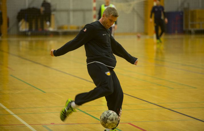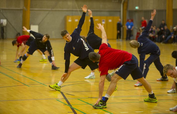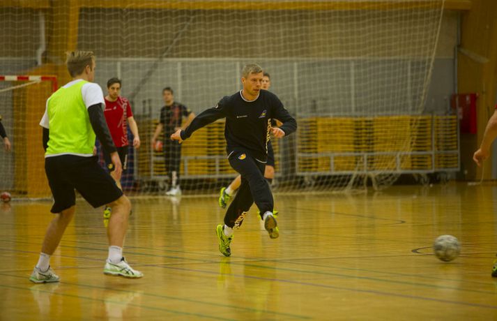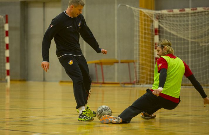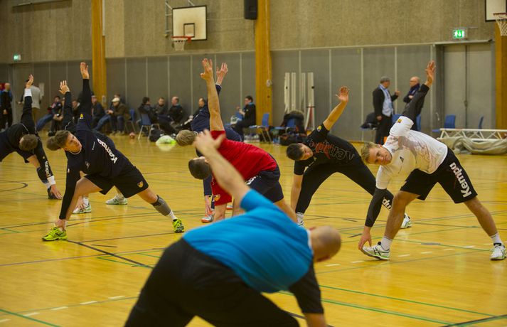 Þó svo aðstæður væru ekkert sérstaklega merkilegar í íþróttasalnum þá tóku leikmenn íslenska landsliðsins vel á því á æfingu dagsins. Eftir góðan fótbolta þá var farið yfir ýmsa hluti í bæði varnar- og sóknarleiknum. Þjálfarinn var nokkuð sáttur með æfinguna en hann mætti reyndar seint á staðinn en þjálfararnir lentu í smá umferðarteppu.Daníel Rúnarsson, ljósmyndari Fréttablaðsins og Vísis, smellti myndum af æfingunni og þær má sjá hér að ofan og nokkrar eru líka hér að neðan.mynd/daníelmynd/daníelmynd/daníelmynd/daníelmynd/daníelvísir/daníel