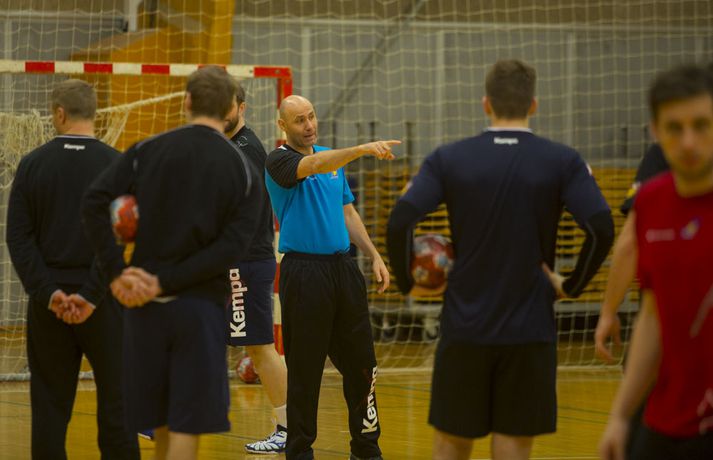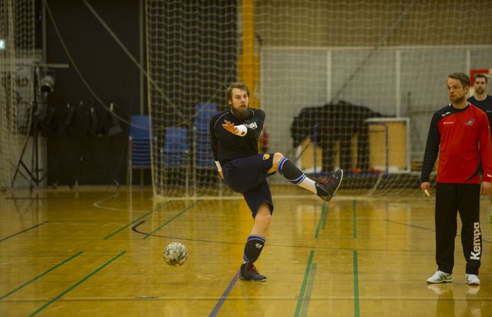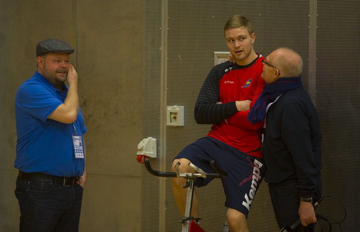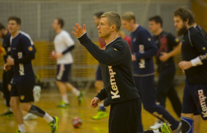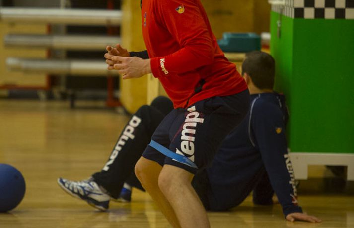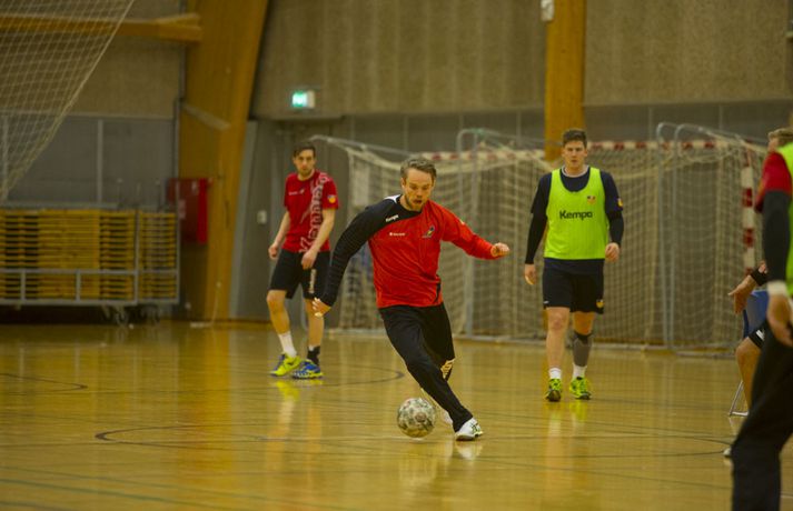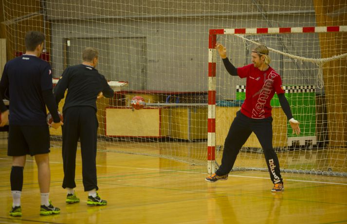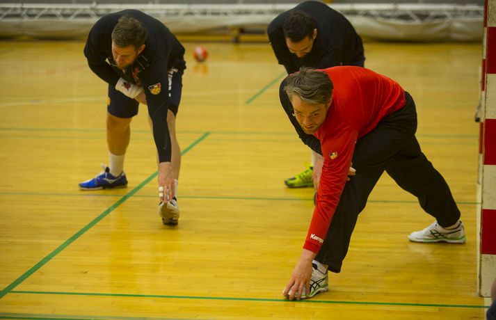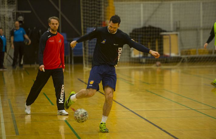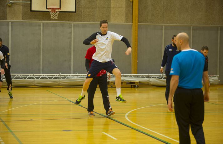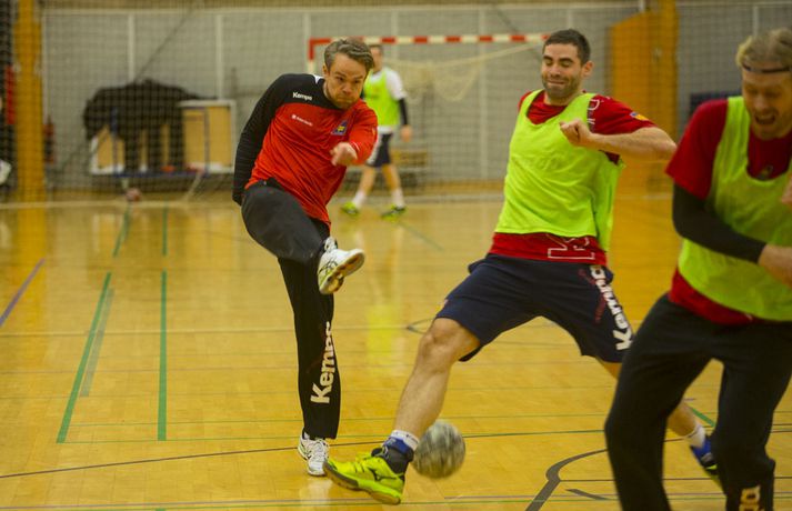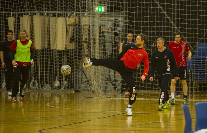Létt yfir mönnum á æfingu dagsins | Myndasyrpa 13. janúar 2014 17:31 Gömlu HK-ingarnir Bjarki Már og Gunnar Steinn taka á því. vísir/daníel Þó svo aðstæður væru ekkert sérstaklega merkilegar í íþróttasalnum þá tóku leikmenn íslenska landsliðsins vel á því á æfingu dagsins. Eftir góðan fótbolta þá var farið yfir ýmsa hluti í bæði varnar- og sóknarleiknum. Þjálfarinn var nokkuð sáttur með æfinguna en hann mætti reyndar seint á staðinn en þjálfararnir lentu í smá umferðarteppu.Daníel Rúnarsson, ljósmyndari Fréttablaðsins og Vísis, smellti myndum af æfingunni og þær má sjá hér að ofan og nokkrar eru líka hér að neðan.mynd/daníelmynd/daníelmynd/daníelmynd/daníelmynd/daníelvísir/daníel EM 2014 karla Mest lesið Vonast til að komast í Kórinn: „Menn hafa aldrei séð annað eins“ Fótbolti Landsleiknum aflýst og framhaldið óljóst Fótbolti Fær þrjár milljónir á dag næstu sex árin fyrir að gera ekkert Sport Stöðufundur í Laugardal klukkan 10:30 Fótbolti Enska úrvalsdeildin í jólaköttinn Enski boltinn Elsta konan til klára Járnkarlinn Sport Landsliðskonur aðstoðuðu ökumenn í vanda Fótbolti Leikið á Þróttaravelli á miðvikudag Fótbolti Markvörður Inter banaði háöldruðum manni í hjólastól Sport Birnir frá Akureyri í Garðabæ Íslenski boltinn Fleiri fréttir Teitur inn í landsliðið Gísli bjó til meira en þriðjung markanna Haukur magnaður í sigri Löwen Blær skoraði þrjú og lagði upp jöfnunarmarkið KA/Þór sótti sigur gegn Fram og stigalausar Stjörnukonur Fram kjöldró HK og spenna í Eyjum Meistararnir unnu gegn ÍBV og ÍR hafði betur gegn Selfyssingum Donni og félagar björguðu stigi undir lokin Afturelding komst upp að hlið Hauka Seldu bleika búninginn hennar Herrem fyrir meira en milljón „Leið vel þegar ég fór inn úr færinu“ Uppgjörið FH - Haukar 27-26 | Birgir Már tryggði FH sigur eftir spennutrylli Bernard fór mikinn en Valsmenn sluppu með sigurinn Fyrsti sigur Þórsara síðan í byrjun september Ómar Ingi með fullkomnan leik í Meistaradeildinni Guðjón Valur og lærisveinar hársbreidd frá því að vinna Kiel Hlakka til að sjá Viktor Gísla aftur og senda honum skilaboð Neyddar í sömu stöðu og Ísland og límdu melónur á skóna Hatar hvítu stuttbuxurnar Fjölga stórmótum landsliða í handboltanum Allt jafnt í bikarslag íslensku stelpnanna Orri fagnaði í Íslendingaslag í Meistaradeildinni Hjartavandamál halda Reyni frá keppni Stórar breytingar á Evrópukeppnum í handbolta Framarar töpuðu aftur á heimavelli í Evrópudeildinni Magdeburg komst örugglega áfram í sextán liða úrslitin Íslensku strákarnir áberandi í Evrópudeildinni „Stærri og sterkari en liðin sem við þekkjum hérna heima“ Viktor til liðs við frænda sinn og bróður Uppgjörið: Portúgal - Ísland 26-25 | Annar eltingaleikur íslenska liðsins endar með öðru tapi Sjá meira
