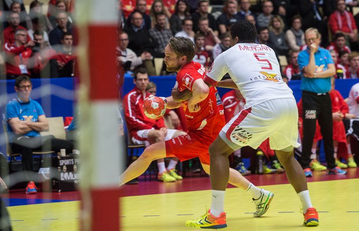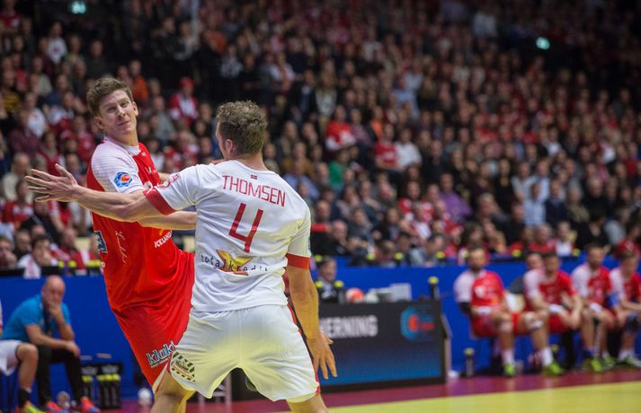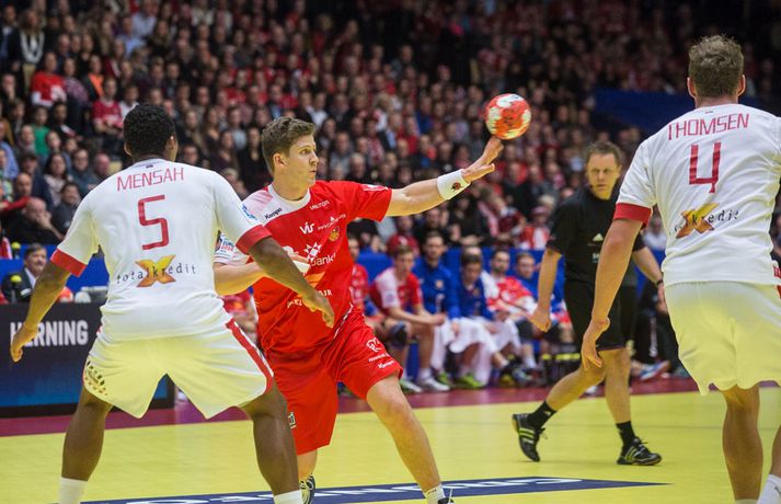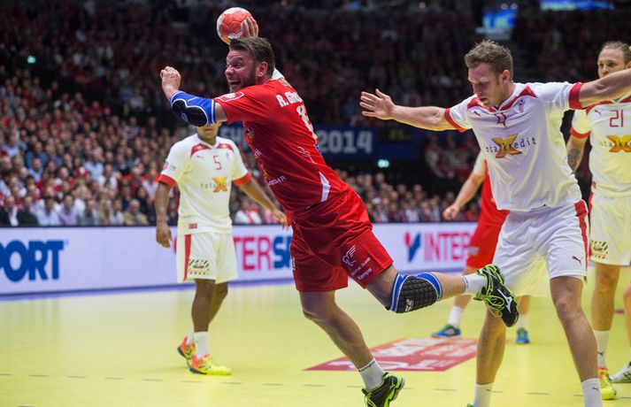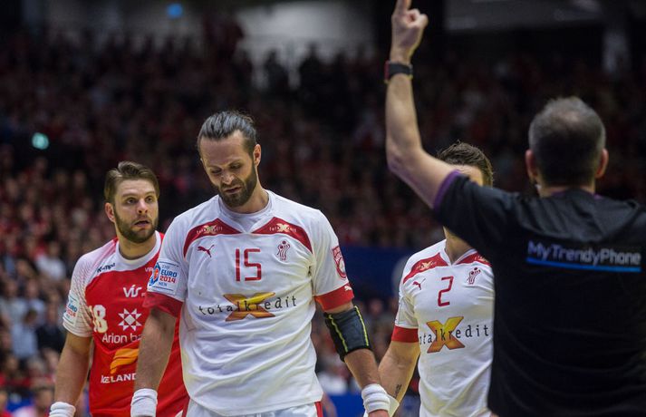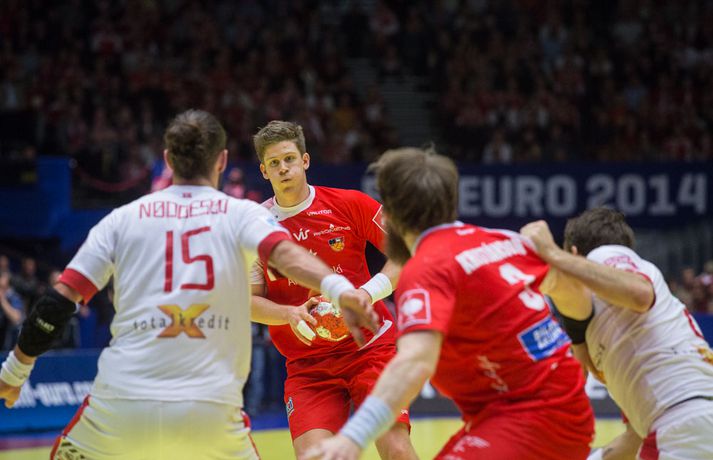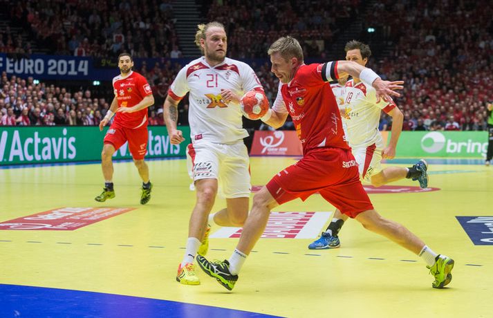 Sverre: Það þarf enginn að skammast sín "Þeir spiluðu mjög vel og það kom engum á óvart. Við vissum vel við hvaða lið við vorum að fara að spila. Það var því leiðinlegt að ná ekki að stöðva þá betur," sagði varnartröllið Sverre Andreas Jakobsson eftir tapið gegn Danmörku í kvöld. 22. janúar 2014 22:32