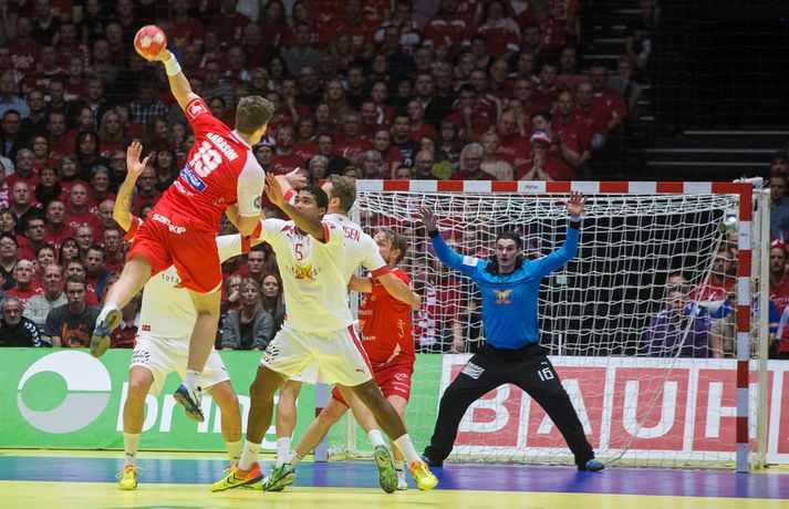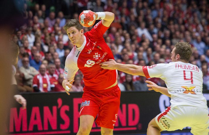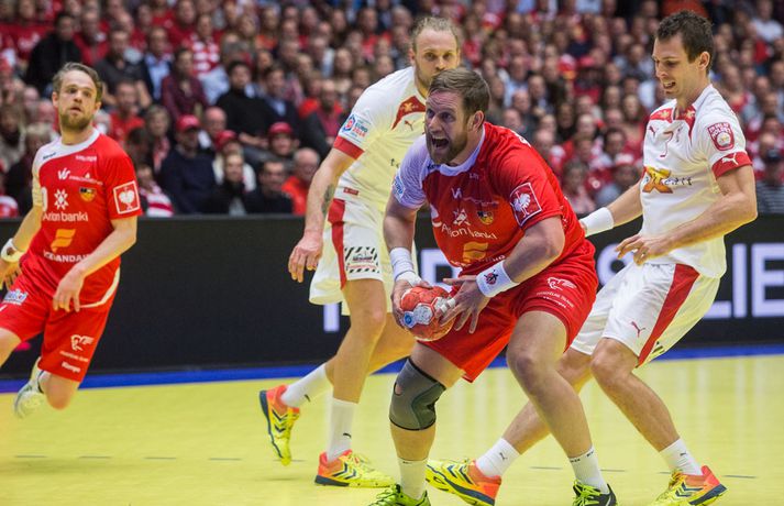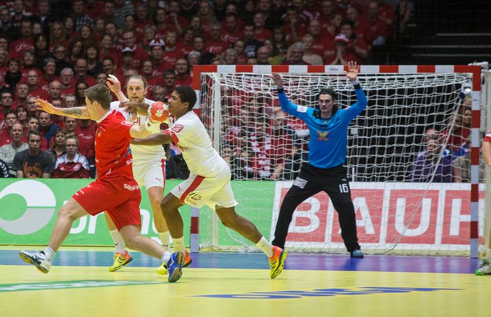 Allt var Dönum í hag | Myndir 22. janúar 2014 22:37 Vísir/Daníel Ísland tapaði fyrir Danmörku í lokaleik milliriðlakeppninnar á EM í handbolta, 32-23, þar sem heimamenn í Herning fóru á kostum fyrir troðfullri höll. Leikurinn hafði þó enga þýðingu fyrir liðin enda var ljóst fyrir leikinn að Danmörk myndi enda í efsta sæti riðilsins og Ísland því þriðja, óháð því hver niðurstaðan yrði í kvöld. Strákarnir eiga þó enn einn leik eftir á mótinu en það er gegn Póllandi á föstudaginn. Í húfi er fimmta sætið á EM sem væri frábær árangur hjá strákunum okkar.Daníel Rúnarsson, ljósmyndari Vísis og Fréttablaðsins, var í Herning í kvöld og tók þessar myndir.vísir/daníel EM 2014 karla Tengdar fréttir Guðjón Valur: Getum verið stoltir af þessum árangri "Þeir voru að hvíla lykilmenn hjá sér og við vorum líka að rúlla mikið. Við lentum bara í vandræðum og á vegg í síðari hálfleik," sagði landsliðsfyrirliðinn Guðjón Valur Sigurðsson eftir tapið gegn Dönum í Boxen í kvöld. 22. janúar 2014 22:05 Umfjöllun: Danmörk - Ísland 32-23 | Danir léku sér að strákunum okkar Danmörk vann stórsigur á Íslandi í lokaleik milliriðlakeppninnar á EM í handbolta. Strákarnir okkar voru einfaldlega númeri of litlir fyrir Evrópumeistarana. 22. janúar 2014 16:48 Rúnar: Leiðinlegt að geta ekki sýnt betri leik Leikurinn í kvöld reyndist hinum ungu og öflugu leikmönnum Íslands erfiður. Rúnar Kárason var einn þeirra sem náði sér ekki á strik í kvöld en það á reyndar við um flesta leikmenn liðsins. 22. janúar 2014 21:53 Björgvin: Eins og ömurleg dönsk bíómynd Björgvin Páll Gústavsson stóð oft uppi ráðalaus í kvöld er Danir fengu að valsa óáreittir upp að teignum og skjóta. 22. janúar 2014 22:14 Sverre: Það þarf enginn að skammast sín "Þeir spiluðu mjög vel og það kom engum á óvart. Við vissum vel við hvaða lið við vorum að fara að spila. Það var því leiðinlegt að ná ekki að stöðva þá betur," sagði varnartröllið Sverre Andreas Jakobsson eftir tapið gegn Danmörku í kvöld. 22. janúar 2014 22:32 Mest lesið Vonast til að komast í Kórinn: „Menn hafa aldrei séð annað eins“ Fótbolti Landsleiknum aflýst og framhaldið óljóst Fótbolti Fær þrjár milljónir á dag næstu sex árin fyrir að gera ekkert Sport Stöðufundur í Laugardal klukkan 10:30 Fótbolti Enska úrvalsdeildin í jólaköttinn Enski boltinn Elsta konan til klára Járnkarlinn Sport Landsliðskonur aðstoðuðu ökumenn í vanda Fótbolti Markvörður Inter banaði háöldruðum manni í hjólastól Sport Birnir frá Akureyri í Garðabæ Íslenski boltinn Segir að Slot verði að taka tvo leikmenn út úr Liverpool-liðinu Enski boltinn Fleiri fréttir Teitur inn í landsliðið Gísli bjó til meira en þriðjung markanna Haukur magnaður í sigri Löwen Blær skoraði þrjú og lagði upp jöfnunarmarkið KA/Þór sótti sigur gegn Fram og stigalausar Stjörnukonur Fram kjöldró HK og spenna í Eyjum Meistararnir unnu gegn ÍBV og ÍR hafði betur gegn Selfyssingum Donni og félagar björguðu stigi undir lokin Afturelding komst upp að hlið Hauka Seldu bleika búninginn hennar Herrem fyrir meira en milljón „Leið vel þegar ég fór inn úr færinu“ Uppgjörið FH - Haukar 27-26 | Birgir Már tryggði FH sigur eftir spennutrylli Bernard fór mikinn en Valsmenn sluppu með sigurinn Fyrsti sigur Þórsara síðan í byrjun september Ómar Ingi með fullkomnan leik í Meistaradeildinni Guðjón Valur og lærisveinar hársbreidd frá því að vinna Kiel Hlakka til að sjá Viktor Gísla aftur og senda honum skilaboð Neyddar í sömu stöðu og Ísland og límdu melónur á skóna Hatar hvítu stuttbuxurnar Fjölga stórmótum landsliða í handboltanum Allt jafnt í bikarslag íslensku stelpnanna Orri fagnaði í Íslendingaslag í Meistaradeildinni Hjartavandamál halda Reyni frá keppni Stórar breytingar á Evrópukeppnum í handbolta Framarar töpuðu aftur á heimavelli í Evrópudeildinni Magdeburg komst örugglega áfram í sextán liða úrslitin Íslensku strákarnir áberandi í Evrópudeildinni „Stærri og sterkari en liðin sem við þekkjum hérna heima“ Viktor til liðs við frænda sinn og bróður Uppgjörið: Portúgal - Ísland 26-25 | Annar eltingaleikur íslenska liðsins endar með öðru tapi Sjá meira