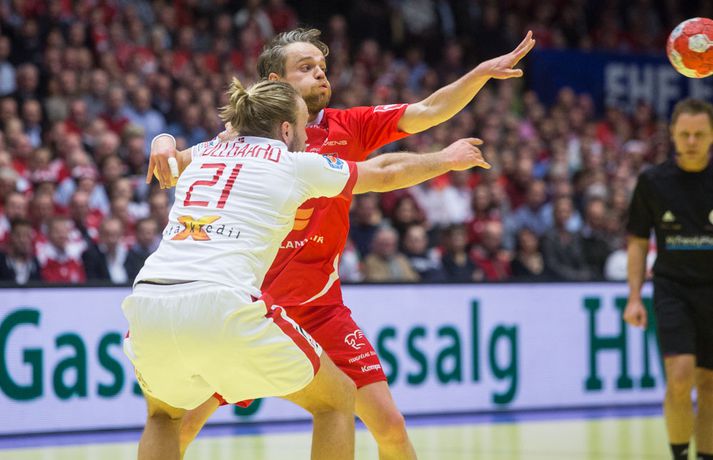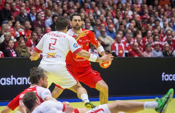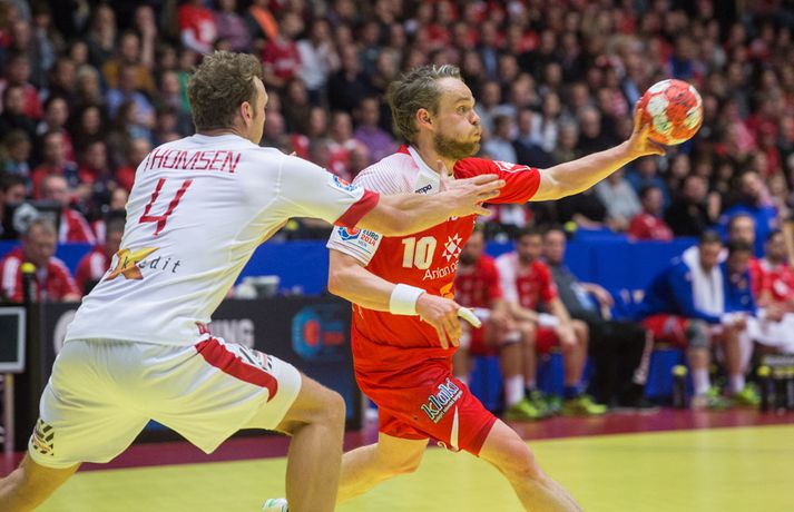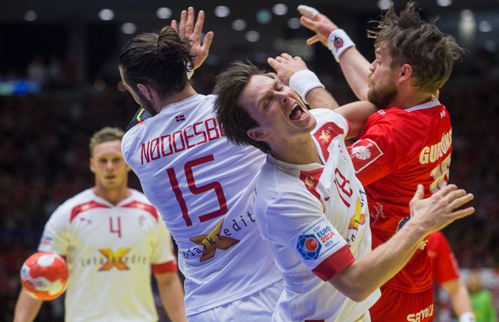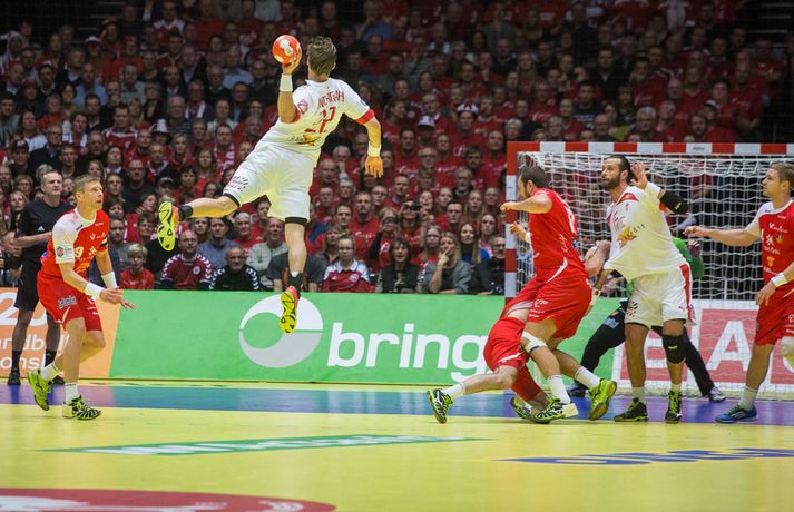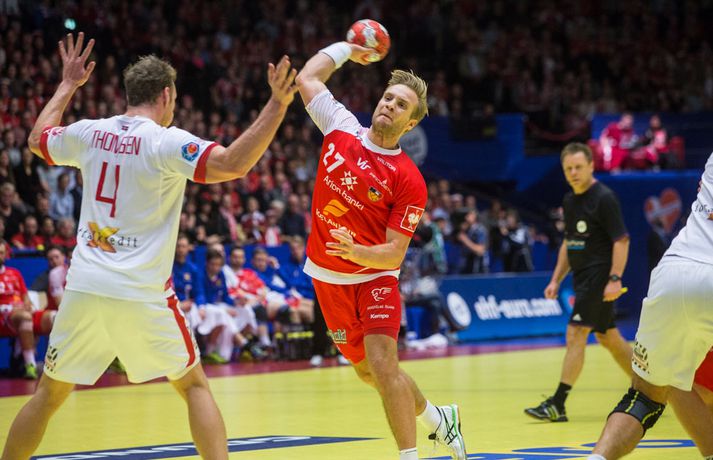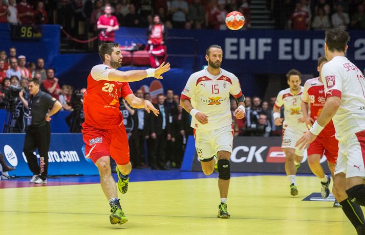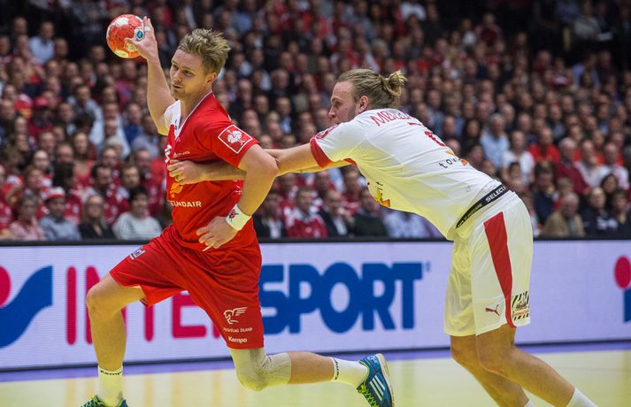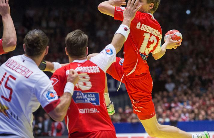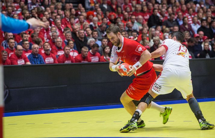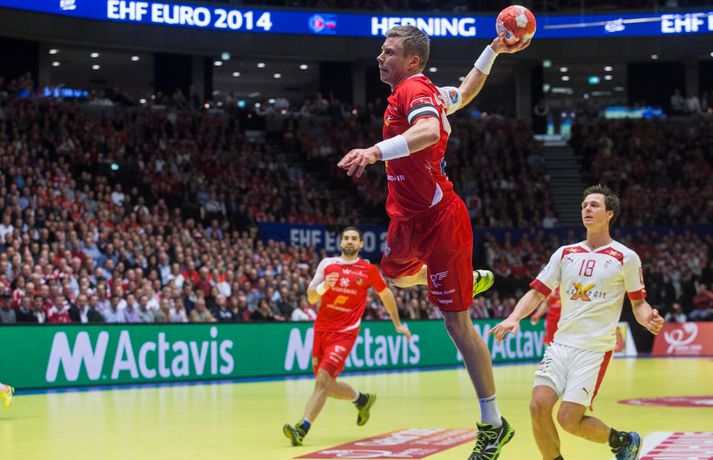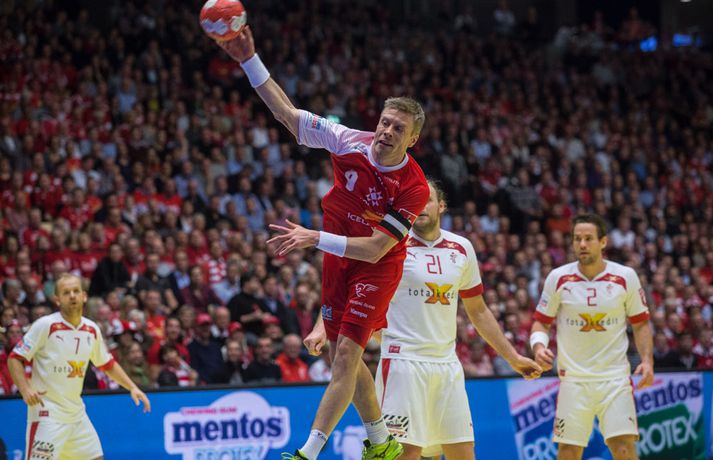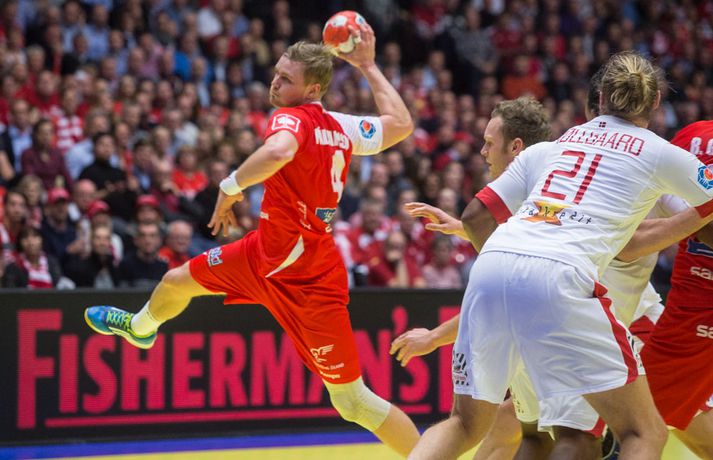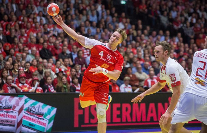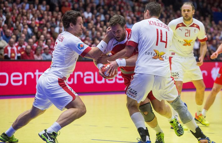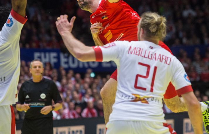 Ísland tapaði fyrir Danmörku í lokaleik milliriðlakeppninnar á EM í handbolta, 32-23, þar sem heimamenn í Herning fóru á kostum fyrir troðfullri höll. Leikurinn hafði þó enga þýðingu fyrir liðin enda var ljóst fyrir leikinn að Danmörk myndi enda í efsta sæti riðilsins og Ísland því þriðja, óháð því hver niðurstaðan yrði í kvöld. Strákarnir eiga þó enn einn leik eftir á mótinu en það er gegn Póllandi á föstudaginn. Í húfi er fimmta sætið á EM sem væri frábær árangur hjá strákunum okkar.Daníel Rúnarsson, ljósmyndari Vísis og Fréttablaðsins, var í Herning í kvöld og tók þessar myndir.vísir/daníel