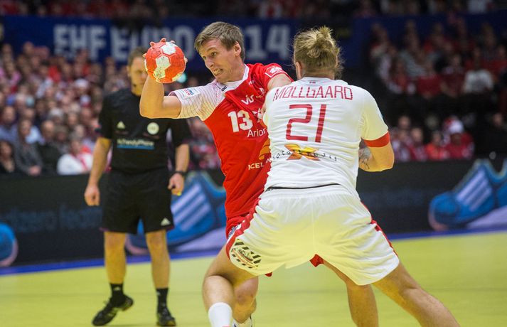 Umfjöllun: Danmörk - Ísland 32-23 | Danir léku sér að strákunum okkar Danmörk vann stórsigur á Íslandi í lokaleik milliriðlakeppninnar á EM í handbolta. Strákarnir okkar voru einfaldlega númeri of litlir fyrir Evrópumeistarana. 22. janúar 2014 16:48