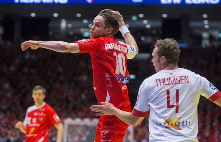 Guðjón Valur: Getum verið stoltir af þessum árangri "Þeir voru að hvíla lykilmenn hjá sér og við vorum líka að rúlla mikið. Við lentum bara í vandræðum og á vegg í síðari hálfleik," sagði landsliðsfyrirliðinn Guðjón Valur Sigurðsson eftir tapið gegn Dönum í Boxen í kvöld. 22. janúar 2014 22:05