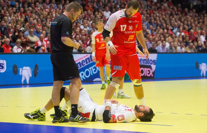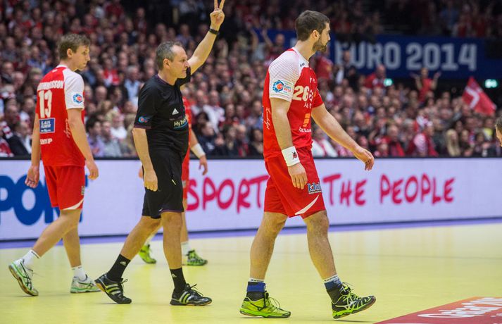 EM 2014 karla Tengdar fréttir Guðjón Valur: Getum verið stoltir af þessum árangri "Þeir voru að hvíla lykilmenn hjá sér og við vorum líka að rúlla mikið. Við lentum bara í vandræðum og á vegg í síðari hálfleik," sagði landsliðsfyrirliðinn Guðjón Valur Sigurðsson eftir tapið gegn Dönum í Boxen í kvöld. 22. janúar 2014 22:05 Umfjöllun: Danmörk - Ísland 32-23 | Danir léku sér að strákunum okkar Danmörk vann stórsigur á Íslandi í lokaleik milliriðlakeppninnar á EM í handbolta. Strákarnir okkar voru einfaldlega númeri of litlir fyrir Evrópumeistarana. 22. janúar 2014 16:48 Rúnar: Leiðinlegt að geta ekki sýnt betri leik Leikurinn í kvöld reyndist hinum ungu og öflugu leikmönnum Íslands erfiður. Rúnar Kárason var einn þeirra sem náði sér ekki á strik í kvöld en það á reyndar við um flesta leikmenn liðsins. 22. janúar 2014 21:53 Björgvin: Eins og ömurleg dönsk bíómynd Björgvin Páll Gústavsson stóð oft uppi ráðalaus í kvöld er Danir fengu að valsa óáreittir upp að teignum og skjóta. 22. janúar 2014 22:14 Sverre: Það þarf enginn að skammast sín "Þeir spiluðu mjög vel og það kom engum á óvart. Við vissum vel við hvaða lið við vorum að fara að spila. Það var því leiðinlegt að ná ekki að stöðva þá betur," sagði varnartröllið Sverre Andreas Jakobsson eftir tapið gegn Danmörku í kvöld. 22. janúar 2014 22:32 Mest lesið Vonast til að komast í Kórinn: „Menn hafa aldrei séð annað eins“ Fótbolti Landsleiknum aflýst og framhaldið óljóst Fótbolti Fær þrjár milljónir á dag næstu sex árin fyrir að gera ekkert Sport Stöðufundur í Laugardal klukkan 10:30 Fótbolti Enska úrvalsdeildin í jólaköttinn Enski boltinn Elsta konan til klára Járnkarlinn Sport Landsliðskonur aðstoðuðu ökumenn í vanda Fótbolti Markvörður Inter banaði háöldruðum manni í hjólastól Sport Birnir frá Akureyri í Garðabæ Íslenski boltinn Segir að Slot verði að taka tvo leikmenn út úr Liverpool-liðinu Enski boltinn Fleiri fréttir Teitur inn í landsliðið Gísli bjó til meira en þriðjung markanna Haukur magnaður í sigri Löwen Blær skoraði þrjú og lagði upp jöfnunarmarkið KA/Þór sótti sigur gegn Fram og stigalausar Stjörnukonur Fram kjöldró HK og spenna í Eyjum Meistararnir unnu gegn ÍBV og ÍR hafði betur gegn Selfyssingum Donni og félagar björguðu stigi undir lokin Afturelding komst upp að hlið Hauka Seldu bleika búninginn hennar Herrem fyrir meira en milljón „Leið vel þegar ég fór inn úr færinu“ Uppgjörið FH - Haukar 27-26 | Birgir Már tryggði FH sigur eftir spennutrylli Bernard fór mikinn en Valsmenn sluppu með sigurinn Fyrsti sigur Þórsara síðan í byrjun september Ómar Ingi með fullkomnan leik í Meistaradeildinni Guðjón Valur og lærisveinar hársbreidd frá því að vinna Kiel Hlakka til að sjá Viktor Gísla aftur og senda honum skilaboð Neyddar í sömu stöðu og Ísland og límdu melónur á skóna Hatar hvítu stuttbuxurnar Fjölga stórmótum landsliða í handboltanum Allt jafnt í bikarslag íslensku stelpnanna Orri fagnaði í Íslendingaslag í Meistaradeildinni Hjartavandamál halda Reyni frá keppni Stórar breytingar á Evrópukeppnum í handbolta Framarar töpuðu aftur á heimavelli í Evrópudeildinni Magdeburg komst örugglega áfram í sextán liða úrslitin Íslensku strákarnir áberandi í Evrópudeildinni „Stærri og sterkari en liðin sem við þekkjum hérna heima“ Viktor til liðs við frænda sinn og bróður Uppgjörið: Portúgal - Ísland 26-25 | Annar eltingaleikur íslenska liðsins endar með öðru tapi Sjá meira