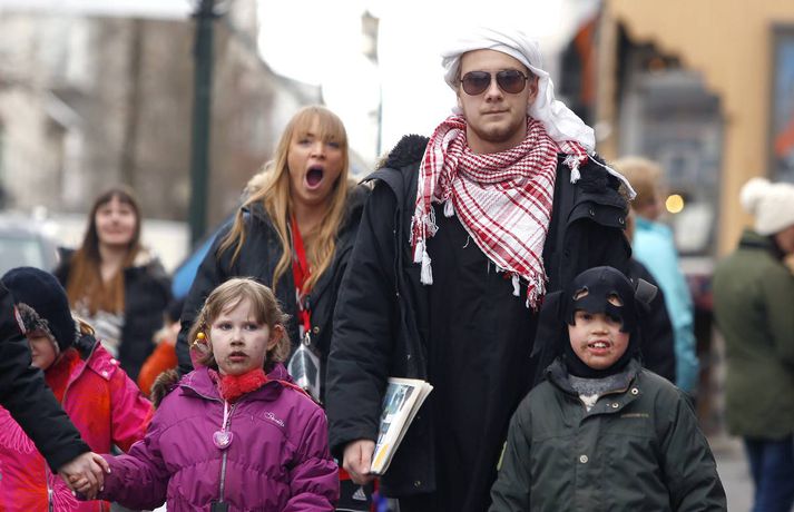 Syngjandi furðuverur um allt land Sunna Karen Sigurþórsdóttir skrifar 5. mars 2014 10:10 Kötturinn sleginn úr tunnunni. VÍSIR/STEFÁN Öskudagurinn er genginn í garð og bendir allt til þess að syngjandi furðuverur, ofurhetjur, prinsessur og skrímsli verði á vegi flestra Íslendinga í dag. Vísir hefur mikinn áhuga á að fylgjast með furðuverum landsins. Við biðjum lesendur, hvort sem það eru einstaklingar eða fyrirtæki, að senda okkur myndir af flottum öskudagsbúningum á netfangið ritstjorn@visir.is. Einnig biðjum við þá sem vilja miðla myndum eða athugasemdum til Vísis í gegnum Instagram eða Twitter að merkja færslurnar með #visir. Ljósmyndirnar hér að ofan eru myndir sem okkur eru sendar ásamt ljósmyndum frá ljósmyndara Fréttablaðsins og Vísis, Valgarði Gíslasyni sem fór á stúfana fyrr í dag. Þessi klæddi sig upp sem Sölmundur úr teiknimyndinni Skrímsli hf. . Þessir kátu krakkar klæddu sig upp eins og meðlimir hljómsveitarinnar KISS. . Post by iStore Íslandi. Öskudagurinn tekinn alla leið. Meira í kvöldfréttum Stöðvar 2 #st2frettir pic.twitter.com/tB3nv6LMD2— Þórhildur Þorkels. (@ththorkels) March 5, 2014 Öskudagur Mest lesið Ástæða fyrir því að genaumræðan hafi ekki náð mikilli útbreiðslu Innlent Hálka á höfuðborgarsvæðinu og Hellisheiði Innlent Veðurvaktin: Biðja fólk að halda sig heima í kvöld Veður Hlýni á föstudag og snjórinn geti horfið í næstu viku Veður Karlmaður lést í Bláa lóninu Innlent Ráðgjafinn ráðinn tveimur dögum eftir að grennslast var fyrir um málið Innlent Færeyingar marka leið fyrir risastór neðansjávargöng Erlent Íslensk stúlka í klóm 764 hvött til sjálfsskaða og ofbeldis Innlent Stærsti fellibylur í sögu Jamaíka Erlent „Alvöru“ jólasveinn gisti á Hótel Rangá Innlent Fleiri fréttir Íslensk stúlka í klóm 764 hvött til sjálfsskaða og ofbeldis Hálka á höfuðborgarsvæðinu og Hellisheiði Ástæða fyrir því að genaumræðan hafi ekki náð mikilli útbreiðslu Ráðgjafinn ráðinn tveimur dögum eftir að grennslast var fyrir um málið „Alvöru“ jólasveinn gisti á Hótel Rangá Vesturbæjarlaug opnuð enn eina ferðina eftir viðgerðir Verklagi ábótavant og krefur ríkislögreglustjóra skýringa Mæla með því að farþegar reiði sig ekki á tímaáætlanir Snjókoman mikla, ábótavant verklag ríkislögreglustjóra og jólasveinamót Karlmaður lést í Bláa lóninu Biðu í fjóra tíma úti á braut og aðra fjóra við farangursbeltin Kærðu umdeildar framkvæmdir allt of seint Skellt í lás í sundlaugum borgarinnar vegna veðurs Reglur brotnar og þjónusta sem bjóða ætti út Þarf að borga bætur þrátt fyrir breytingar á hlaupahjólinu Hvatt til varúðar vegna snjóflóðahættu á suðvesturhorninu Meiri kvika en í síðasta gosi Eldur í blokk við Ljósheima Flugmaðurinn sem fórst millilenti oft í Reykjavík Halla leiðir krabbameinsráð ráðherra Snjókomumet og umferðaröngþveiti Segir sameiginlegum gildum Norðurlanda ógnað Fjölmargir farþegar fastir í flugvélum á Keflavíkurflugvelli Ungur Miðflokksmaður gengst við rasisma og segir af sér Sturlað ástand og United vettlingar prjónaðir í bílnum Mesta snjódýpt í Reykjavík sem mælst hefur í október Viðbragðsaðilar í mikilli hættu vegna bíla á sumardekkjum Bílar út af veginum á Reykjanesbraut Vill heimila Samkeppniseftirlitinu að ráðast í húsleitir Snjókoman rétt að byrja Sjá meira