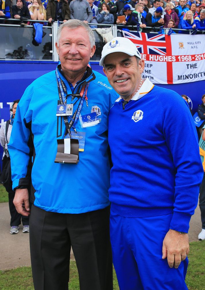 Paul McGinley, fyrirliði Evrópuliðsins, sem tryggði sér sigur í Ryderbikarnum í Skotlandi í gær hefur fengið mikið lof fyrir framgöngu sína en hann sjálfur talaði sérstaklega um mikilvæga heimsókn fyrir keppnina. „Ég reyndi að gera þetta að skemmtilegri upplifun fyrir strákana í liðinu. Lykilatriðið var að vera með sömu stöðugu skilboðin alla vikuna," sagði Paul McGinley í morgunviðtali á BBC. McGinley segir heimsókn Sir Alex Ferguson, fyrrum knattspyrnustjóra Manchester United og eins allra sigursælasta knattspyrnustjóra sögunnar, hafa haft góð áhrif á evrópska liðið. „Heimsókn Sir Alex Ferguson var mjög mikilvæg fyrir liðið. Hann kom með sterk skilaboð til minna manna og setti þau í fótbolta-samhengi sem gerði þau enn áhrifaríkari," sagði McGinley sem er fyrsti Írinn sem tekur að sér fyrirliðastarfið. . „Það var fullkomið samræmi í því sem við gerðum. Við vorum með plan og sem betur fer gekk það upp," sagði McGinley. Evrópska liðið vann það bandaríska með 16,5 vinningum á móti 11,5 og varði þar með titilinn.Vísir/GettyVísir/GettyVísir/Getty