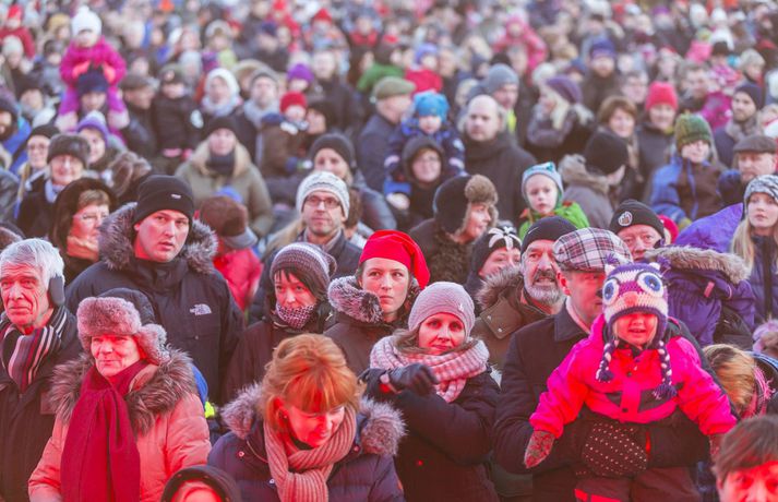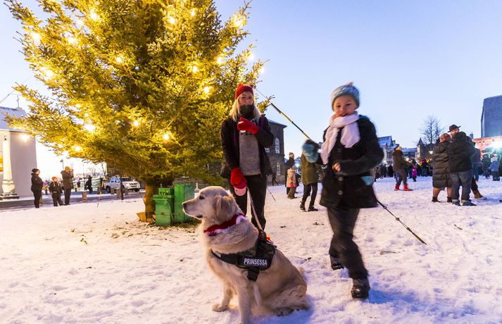 Ljósin á jólatrénu á Austurvelli voru tendruð klukkan fjögur í dag við hátíðlega athöfn. Hefð er fyrir því að aðventan hefjist með formlegum hætti með tendrun jólaljósanna en fresta þurfti athöfninni í síðustu viku vegna veðurs. Jólatréð var upphaflega fengið frá Osló samkvæmt venju en það brotnaði í óveðrinu í síðustu viku svo sækja þurfti nýtt í Heiðmörk. Vilhelm Gunnarsson, ljósmyndari Vísis, var á staðnum og náði þessum glæsilegu myndum.