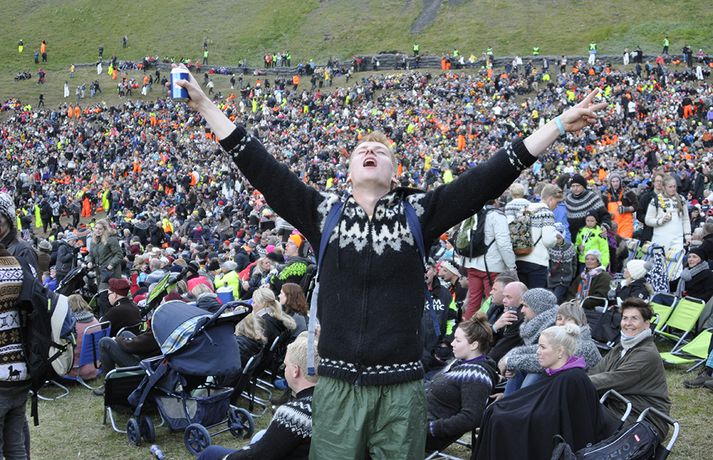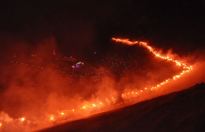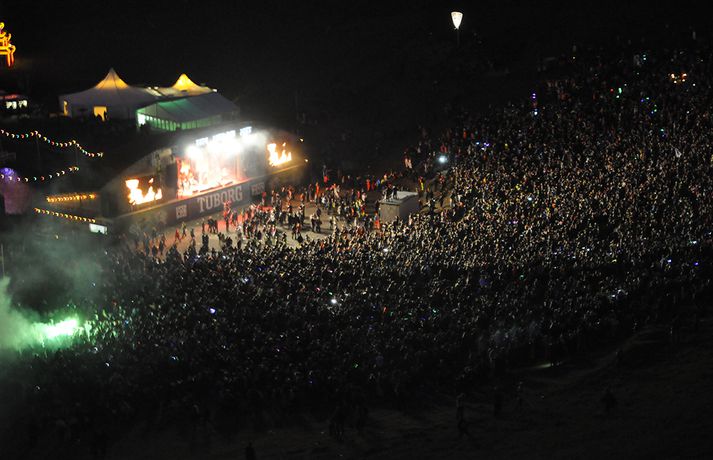 Þjóðhátíð í Vestmannaeyjum lauk í gær með brekkusöng og flugeldasýningu. Talið er að tæplega fimmtán þúsund manns hafi verið komin saman í Herjólfsdal til að skemmta sér. Ingólfur Þórarinsson leiddi sönginn og bauð aðeins upp á íslenskar dægurlagaperlur. Er hann hafði lokið sér af birtist maðurinn sem fann upp brekkusönginn, Árni Johnsen, og fór fyrir þjóðsöngnum. Að endingu söng Sverrir Bergmann Þjóðhátíðarlagið frá árinu 2012 en það heitir Þar sem hjartað slær. Um leið var kveikt á blysunum. Brekkusöngurinn var í beinni útsendingu á Stöð 2, Bylgjunni, FM957 og hér á Vísi. Viljirðu endurupplifa kvöldið geturðu horft á sönginn hér í heild sinni. Að auki fylgir með myndaveisla frá Óskari Friðrikssyni sem var í brekkunni og smellti myndum af fólki.