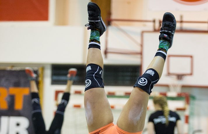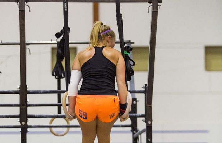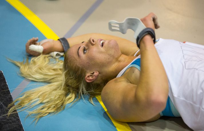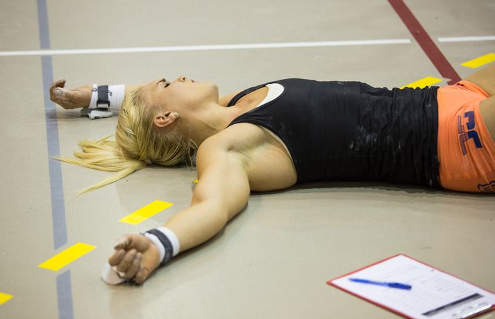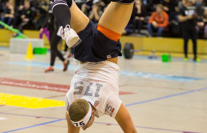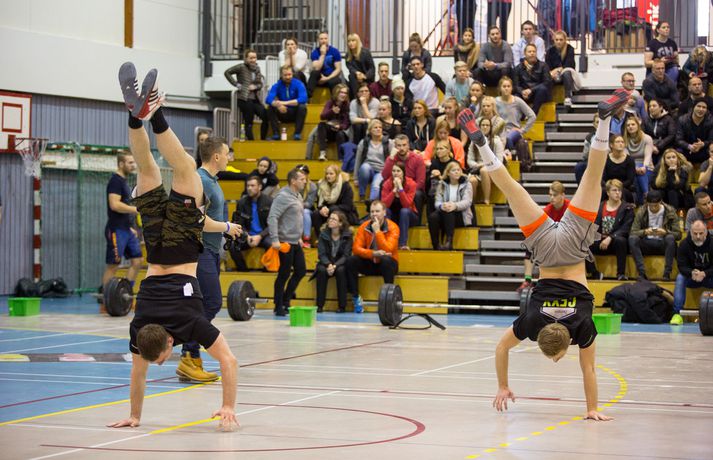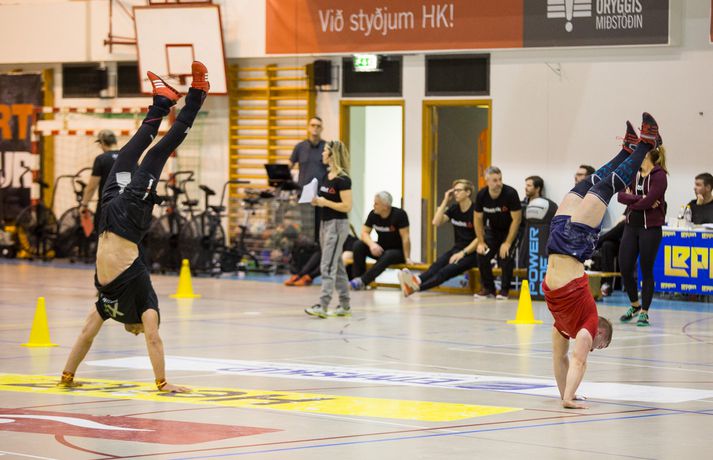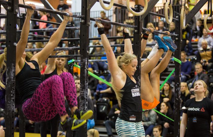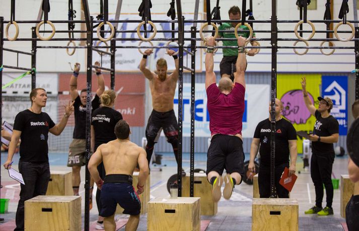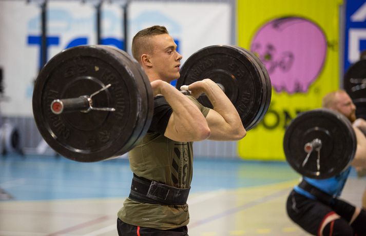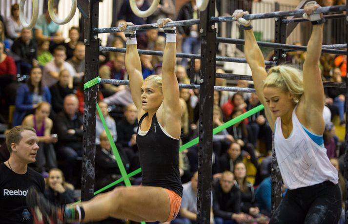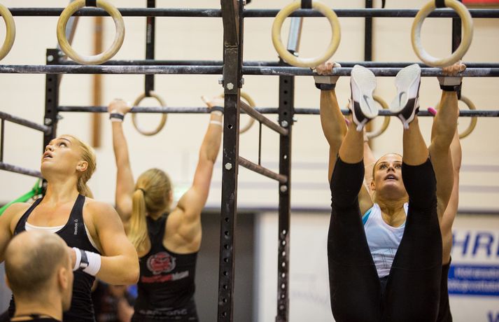 Mikil spenna er fyrir lokadaginn á Íslandsmótinu í Crossfit, Reebok Throwdown 2015, en fyrstu tveir dagarnir hafa verið fjörugir. Björgvin Karl Guðmundsson leiðir karlamegin, en hjá konunum er heimsmeistarinn Katrín Tanja Davíðsdóttir.Daníel Rúnarsson, ljósmyndari, skellti sér í Digranesið og tók þessar myndir sem má sjá hér að neðan. Björgvin Karl Guðmundsson, úr Crossfit Hengli, er efstur með 472 stig. Hann er með tólf stiga forskot á Jakob Daníel Magnússon, Crossfit Hafnarfirði, sem er í öðru sætinu með 460 stig. Í þriðja sætinu er Sigurður Þrastarson með 413 stig. Björgvin Karl sló rækilega í gegn á síðustu heimsmeistaraleikunum, en þar lenti hann meðal annars í þriðja sæti. Hann hefur góða forystu fyrir síðasta daginn, en fimm greinar eru á dagskrá á morgun. Í kvennaflokki er heimsmeistarinn Katrín Tanja Davíðsdóttir, Reebok Crossfit Reykjavík, efst með 522 stig. Hún er með forystu á Íslandsmeistarann frá því í fyrra, Þuríði Erlu Helgadóttur úr Crossfit Sport, sem er með 504 stig. Í þriðja sæti kemur svo Ragnheiður Sara Sigmundsdóttir með 494 stig, en hún lenti í þriðja sæti á síðustu heimsleikum. Keppt er í opnum flokkum karla og kvenna en einnig eru aldursskiptir flokkar 35 ára og eldri. Öll nánari úrslit má finna hér.Vísir/Daníel