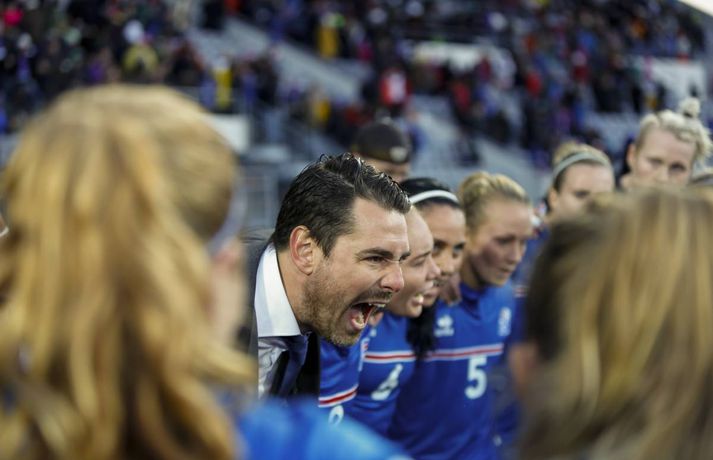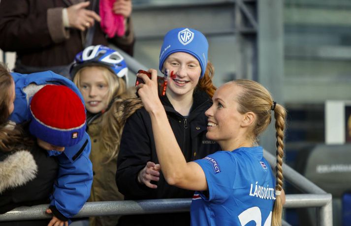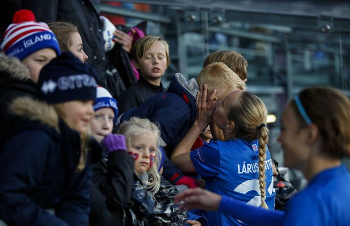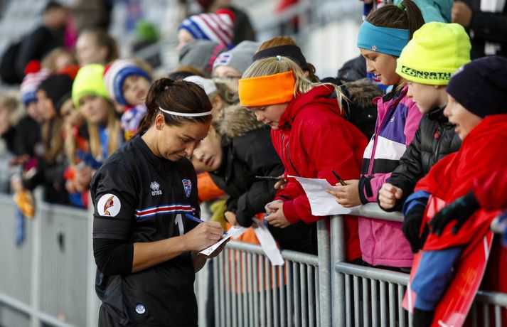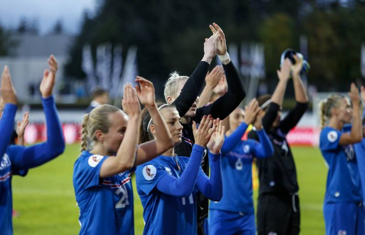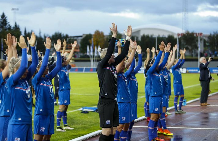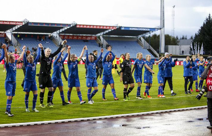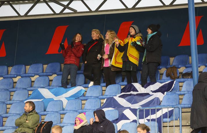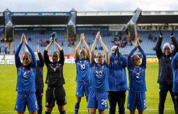 Umfjöllun og myndir: Ísland - Skotland 1-2 | Toppsætið þrátt fyrir tap Anton Ingi Leifsson á Laugardalsvelli skrifar 20. september 2016 20:15 Stelpurnar þakka fyrir sig eftir leik. vísir/ernir Ísland tapaði fyrir Skotlandi, 2-1, í lokaleik kvennalandsliðið í riðlinum fyrir undankeppni EM í Hollandi næsta sumar, en Ísland hafði þegar tryggt sig inn á mótið. Þrátt fyrir tapið í dag hélt Ísland toppsætinu, en liðið tapaði einungis einum leik í riðlinum og það var leikurinn í kvöld. Ísland, sem hafði haldið hreinu í öllum níu leikjunum í undankeppninni fyrir þennan, fékk á sig fyrsta markið á 25. mínútu leiksins, en Fanndís Friðriksdóttir jafnaði fyrir hlé. Jane Ross skoraði sigurmarkið af vítapunktinum á 56. mínútu. Ein breyting var gerð á íslenska liðinu frá 4-0 sigrinum á Slóveníu á föstudaginn, en Elín Metta Jensen kom inn á hægri kantinn í stað Hólmfríðar Magnúsdóttur sem fékk sér sæti á bekknum. Skotarnir byrjuðu mikið betur en íslenska liðið og réðu algjölega ferðinni. Ísland náði lítið sem ekkert að halda boltanum og þegar Ísland fékk loksins boltann gáfu þær boltann rakleiðis útaf. Gestirnir höfðu ógnað með frábærum fyrirgjöfum og það kom ekki mikið á óvart þegar Skotland komst yfir með marki eftir eina slíka. Emma Mitchell gaf þá frábæra fyrirgjöf fyrir markið og Jane Ross skallaði boltann í netið og var þar af leiðandi fyrst til að skora á Ísland í undankeppninni. Frammistaða Íslands var langt frá því að vera sannfærandi í fyrri hálfleik, en liðinu gekk afar illa að halda boltanum. Það var því dálítið gegn gangi leiksins þegar Fanndís Friðriksdóttir jafnaði metin með laglegri vippu yfir markvörð Skota, en Fanndís fékk góða sendingu inn fyrir frá Berglindi Björgu. Staðan 1-1 þegar liðin gengu til búningsherbergja og gat íslenska liðið prísað sig sæla að vera með jafna stöðu í hálfleik enda voru Skotar með tögl og haldir á fyrri hálfleik, fyrir utan síðustu fimm mínúturnar í fyrri hálfleik, en Ísland með svona gott sóknarlið getur alltaf refsað fyrir mistök og það gerði Fanndís. Allt annað var að fylgjast með íslenska liðinu í síðari hálfleik. Boltinn gekk hraðar, sóknirnar voru beinskeyttari, hreyfaleikinn var meiri, en Skotarnir áttu þó bestu tilraunina í upphafi síðari hálfleiks þegar Caroline Weir þrumaði boltanum í stöngina af löngu færi. Það voru hins vegar Skotarnir sem náðu aftur forystunni þegar Jane Ross skoraði annað mark sitt og Skota, en hún skoraði af vítapunktinum eftir að Sara Björk Gunnarsdóttir braut á Lisu Evans innan teigs. Fljótlega eftir markið gerðu þeir Freyr Alexandersson og Ásmundur Haraldsson, þjálfarar Íslands, tvöfalda breytingu og með Gunnhildi kom mikið líf inn á miðsvæðið, en hún var afar dugleg og færði íslenska liðinu mikin kraft. Dagný Brynjarsdóttir fékk gott tækifæri til að jafna metin, en brást bogalistinn. Okkar stúlkum gekk ekki alveg nægilega vel að skapa sér afgerandi marktækifæri, en tækifærin til þess að búa til góð færi voru sannarlega til staðar. Lokatölur urðu 2-1 sigur Skotland og fyrsta tapið og fyrstu mörkin sem Ísland fær á sig riðlinum staðreynd í lokaleiknum. Þrátt fyrir tapið varð Ísland efst í riðlinum, en stelpurnar voru með betri markatölu en Skotland sem lenti í öðru sætinu. Spilamennskan var ekki góð í dag, þá sérstaklega í fyrri hálfleik, en jafntefli hefði ekki verið ósanngjörn úrslit. Staðreyndin er samt sú að Ísland er á leið á EM í þriðja skiptið í röð næsta sumar og nú hefst undirbúningur fyrir lokamótið með tilheyrandi æfingarleikjum og slíku. Stelpurnar hafa staðið sig vel í riðlinum og eru vel að þessu komnar, þrátt fyrir tapið í kvöld. vísir/ernirvísir/ernir EM 2017 í Hollandi Mest lesið Einkunnir Íslands: Þrjár heitastar í frostinu Fótbolti Vísar slúðrinu til föðurhúsanna Enski boltinn Albert og Mikael Egill í vondum málum á Ítalíu Fótbolti Ísak Bergmann lagði upp gegn Bayern Fótbolti „Við tókum bara þá ákvörðun að fara í Svanavatnið“ Fótbolti Uppgjörið: Njarðvík - Grindavík 85-84| Njarðvík fyrstar til að leggja Grindavík af velli Körfubolti Palace neitar að sleppa takinu á Liverpool Enski boltinn „Eitthvað sem ég mun aldrei gleyma“ Fótbolti Dagskráin í dag: Íslenskur körfubolti og margt fleira Sport Uppgjörið: Ísland - Norður-Írland 3-0 | Áfram hluti af elítunni Íslenski boltinn Fleiri fréttir Vísar slúðrinu til föðurhúsanna Ísak Bergmann lagði upp gegn Bayern „Við tókum bara þá ákvörðun að fara í Svanavatnið“ Albert og Mikael Egill í vondum málum á Ítalíu Palace neitar að sleppa takinu á Liverpool „Eitthvað sem ég mun aldrei gleyma“ Einkunnir Íslands: Þrjár heitastar í frostinu Viktor Bjarki skoraði og lagði upp í fyrsta byrjunarliðsleiknum Uppgjörið: Ísland - Norður-Írland 3-0 | Áfram hluti af elítunni Pedri gæti verið frá keppni til langs tíma Arteta fyrstur stjóranna á fætur Þorsteinn breytir engu á milli leikja Snjóbræðslukerfi Þróttar kom KSÍ til bjargar Tölur úr Bestu 2025: Klúðraði langflestum dauðafærum í sumar Segja spurningar vakna um stöðu Elísabetar Litu á hann sem risaeðlu en sjáið hvað er í tísku núna Formaðurinn hjálpaði til við að moka völlinn Formenn sambandanna hjálpuðu við að moka völlinn Real Madrid mun ekki refsa Vinícius Júnior Fluttu fréttir af snjónum í Reykjavík Sýknaður í alvarlegu ofbeldismáli Búið að finna leiðina til að pirra og vinna Liverpool Sú leikjahæsta leggur skóna á hilluna og klárar læknanámið Stuðningsmaður RB Leipzig lést á bikarleiknum í gærkvöldi Arteta óttast ekki að keppinautarnir steli undrabarninu frá honum FH bíð