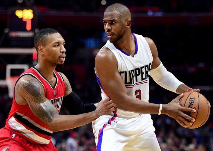 Paul og Griffin í góðum gír í sigri LA Clippers | Myndbönd Ingvi Þór Sæmundsson skrifar 13. desember 2016 07:15 Chris Paul og Damian Lillard, leikstjórnendur LA Clippers og Portland, eigast hér við. vísir/afp Sjö leikir fóru fram í NBA-deildinni í körfubolta í nótt. Los Angeles Clippers virðist vera komið aftur á beinu brautina en í nótt lagði liðið Portland Trail Blazers að velli, 121-120. Blake Griffin og Chris Paul voru í góðum gír í liði Clippers í leiknum. Griffin skoraði 26 stig og tók 12 fráköst og Paul skoraði 21 stig og gaf 14 stoðsendingar. Hjá Portland var C.J. McCollum stigahæstur með 25 stig. Damian Lillard kom næstur með 24 stig en hann gaf einnig átta stoðsendingar. Portland er búið að tapa fjórum leikjum í röð. James Harden fór mikinn þegar Houston Rockets vann Brooklyn Nets á heimavelli, 122-118. Harden skoraði 36 stig, tók átta fráköst og gaf 11 stoðsendingar í sjöunda sigri Houston í röð. Liðið er í 4. sæti Vesturdeildarinnar. Brook Lopez skoraði mest fyrir Brooklyn, eða 26 stig. Miðherjinn tók hins vegar aðeins eitt frákast á þeim 32 mínútum sem hann spilaði. DeMar DeRozan skoraði 30 stig þegar Toronto Raptos vann Milwaukee Bucks, 122-100. DeRozan hitti úr sjö af 11 skotum sínum utan af velli og setti öll 15 vítin sín niður. Terrence Ross bætti 25 stigum við fyrir Toronto sem er í 2. sæti í Austurdeildinni. Giannis Antetokounmpo skoraði 30 stig og tók átta fráköst í liði Milwaukee sem er búið að tapa þremur leikjum í röð.Úrslitin í nótt: LA Clippers 121-120 Portland Houston 122-118 Brooklyn Toronto 122-100 Milwaukee Indiana 110-94 Charlotte Miami 112-101 Washington Dallas 112-92 Denver Sacramento 116-92 LA Lakers NBA Mest lesið Sakaður um svindl á HM í pílukasti Sport Bunting dró orð sín til baka með tárin í augunum: „Ég er ekki meistari fólksins“ Sport Áhorfendur ærðust eftir mögulega mark mótsins í fyrsta leik Fótbolti Óskar Hrafn um komu Arnórs Ingva: „Gífurlega dýrmætt fyrir KR“ Íslenski boltinn Ótrúleg tíðindi á HM í pílukasti: „Mikið sjokk“ Sport Hleður Kjartan lofi eftir frábæra frumraun með Aberdeen Fótbolti Óttast að Isak hafi fótbrotnað Enski boltinn Sjáðu geggjaðan snúning Alberts áður en hann skoraði frábært mark Fótbolti Klappstýrur Björgvins Karls slógu í gegn Sport Í bann fyrir að kasta flösku í barn Körfubolti Fleiri fréttir ÍR-ingar bæta við sig reyndum og hittnum Króata Í bann fyrir að kasta flösku í barn Hjalti Þór ráðinn aðalþjálfari Álftaness Kolbrún María kom við sögu í endurkomu Hannover Næstframlagshæstur í grátlegu tapi Fékk næstum 4,5 milljóna króna sekt fyrir að sýna dómara fingurinn „Komum eins og aumingjar inn í þennan leik“ „Jólasteikin mun bragðast betur í ljósi þessa sigurs“ Stjarnan - Álftanes 108-104 | Unnu grannaslaginn naumlega Uppgjörið: Ármann - ÍA 102-83 | Ármann náði í gríðarlega mikilvæg stig í fallbaráttunni með sigri gegn Skagamönnum Jokic tók NBA-met af Abdul-Jabbar í nótt KR á frábærum stað en getur ekki unnið titilinn Útilokar ekki breytingar: „Er klárlega að líta í kringum mig“ Uppgjörið: Keflavík - Njarðvík 93-83 | Enn taplausir í Sláturhúsinu „Ánægður að spila ekki betur en þetta en vinna samt“ „Svo lengi sem það er ekki jákvæð og góð umfjöllun um okkur erum við sáttir“ „Hefðum þurft að hafa heppnina með okkur í liði“ ÍR - Valur 82-85 | Baráttusigur í Breiðholti „Sáttur að geta farið heim, borðað vel og fengið mér nokkra kalda“ Tindastóll - KR 130-117 | Kláruðu gestina í seinni hálfleik Þór Þ. - Grindavík 94-106 | Baráttusigur gegn löskuðu liði Þórs Liðsfélagar Guðbjargar ekki fæddir þegar hún spilaði fyrsta leikinn Þola þeir ekki gott umtal? „Helmingur minna leikmanna skilur ekki íslensku“ „Ef við hefðum ekki verið að setja þessi skot þá hefðum við skíttapað“ KR á toppinn Uppgjörið: Grindavík - Haukar 92-93 | Fullkomin jólagjöf Spilaði 13 mínútur en var stigahæstur Rýndu í gamlar myndir: „Svakalega ertu kringlóttur í framan“ Guðbjörg fyrsta konan í fjögur hundruð leikina Stjarnan og Grindavík mætast í bikarnum Sjá meira