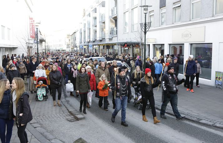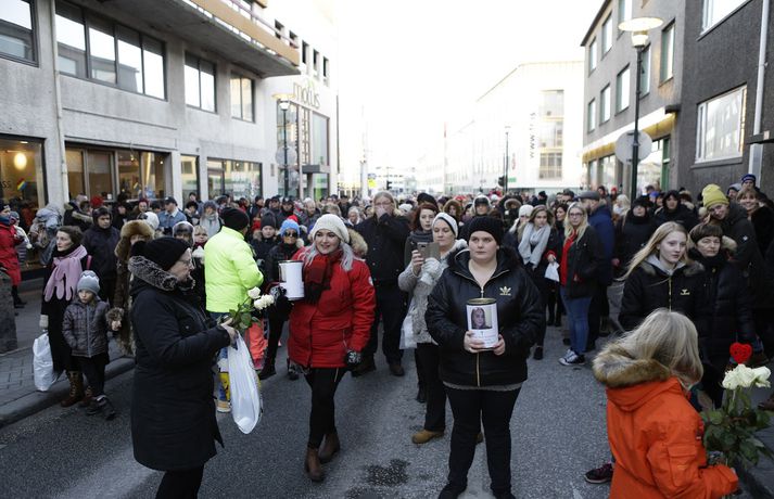 Fjölmenni í minningargöngu Birnu Sunna Karen Sigurþórsdóttir skrifar 28. janúar 2017 16:21 Fjölmargir eru samankomnir í miðbænum. vísir/ernir Fjölmargir eru samankomnir í miðbæ Reykjavíkur til að minnast Birnu Brjánsdóttur, sem fannst látin síðastliðinn sunnudag eftir rúmlega viku leit. Minningargangan hefst klukkan hálf fimm og verður nokkrum götum í miðborginni lokað fyrir umferð á meðan göngunni stendur. Lagt verður af stað klukkan hálf fimm frá Hlemmi. Gengið verður niður Laugaveg að Ingólfsstræti og þaðan út á Arnarhól. Þá verður einnig haldin minningarstund um Birnu við sendiráð Íslands í Kaupmannahöfn og hafa hátt í átta hundrað manns boðað komu sína. vísir/jóhann kvísir/ernirvísir/ernirvísir/ernir Birna Brjánsdóttir Tengdar fréttir Minnast Birnu í Kaupmannahöfn Minningarathöfn til minningar um Birnu Brjánsdóttur verður haldin fyrir utan sendiráð Íslands í Kaupmannahöfn á morgun. 27. janúar 2017 23:08 Óraunverulegt að kveðja Birnu Þrátt fyrir að þjóðin hafi tekið hvarf og andlát Birnu Brjánsdóttur sérstaklega nærri sér í liðinni viku þá er upplifunin mjög ólík því sem hennar nánustu upplifa. Bestu vinkonur Birnu, þær María og Matthildur, segjast vilja minnast hennar fyrir lífsglöðu og afslöppuðu stelpunnar sem hún var en ekki þess sem síðar kom fyrir hana. Í dag verður gengið niður Laugaveginn til minningar um Birnu og blóm lögð að Laugavegi 31, þaðan sem hún hvarf. 28. janúar 2017 07:00 Mest lesið „Þetta verður allt saman stórvarasamt í fyrramálið“ Veður Spyr hvort ökumenn myndu keyra á gangandi á götunni Innlent Myndskeiðið segi ekki alla söguna Innlent „Auðvitað slær þetta mig ekki vel“ Innlent Ein hinna reknu segir konunum kastað fyrir ljónin Innlent Svipt barnabótunum vegna flugmiðakaupa Erlent Útlit fyrir nauman sigur frjálslyndra og fyrsta samkynheigða forsætisráðherra landsins Erlent „Fyrstu þrjú árin sem ég var veik voru algjört helvíti“ Innlent Reynsluboltum sagt upp í skugga ráðgjafabruðls Innlent Séra Flosi Magnússon fallinn frá Innlent Fleiri fréttir Flughálka í kortunum, breytingar hjá bönkunum og formaður Pírata Reyna að lokka íslenska lækna heim Óvenjulegir smáskjálftar reyndust sprengingar Ein hinna reknu segir konunum kastað fyrir ljónin Fylgjast með smáskjálftum við Bláa lónið Kirkjuþing skorar á stjórnvöld að hækka sóknargjald Ósammála ráðherra um að atkvæðajafnvægi sé mannréttindamál Ungir innflytjendur á Íslandi ekki jafn jaðarsettir og í Svíþjóð Leita til UNESCO vegna Vonarskarðs og kæra kynjahalla Aukin verðbólga áhyggjuefni og asahláka í kortunum Spyr hvort ökumenn myndu keyra á gangandi á götunni Séra Flosi Magnússon fallinn frá Að jafnaði tilkynnt um tólf kynferðisbrot í hverri viku Var ofurölvi þegar hann hljóp yfir Reykjanesbraut „Auðvitað slær þetta mig ekki vel“ Fundi slitið án árangurs og nýr ekki boðaður „Fyrstu þrjú árin sem ég var veik voru algjört helvíti“ Vill sjá byggingakrana í Úlfarsárdal á næsta ári Reikna með flughálum vegum Fagnar aðgerðum en telur húsnæðispakkann „fremur rýran“ Úrskurðarnefnd klofin en framkvæmdaleyfi stendur Engar uppsagnir í farvatninu Þrír handteknir á stolnum bíl og dýnur teknar ófrjálsri hendi Létu sleðaveðrið ekki fram hjá sér fara Séreignarleiðin gerð varanleg og nýtist til tíu ára Myndskeiðið segi ekki alla söguna Vinstri grænir í Reykjavík gagnrýna leikskólaplan borgarinnar Reynsluboltum sagt upp í skugga ráðgjafabruðls Þúsundir nýrra íbúða og óvissu eytt: „Verið að einfalda og hagræða“ „Alveg brjálaður yfir því að hann sé að hjóla á götunni“ Sjá meira