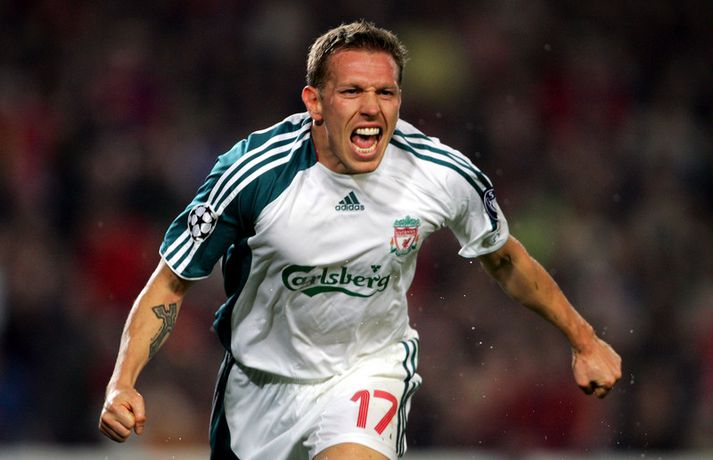 Golfkylfufagnið á Nývangi á tíu ára afmæli í dag | Myndband Óskar Ófeigur Jónsson skrifar 21. febrúar 2017 15:45 Bellamy tekur hið ógleymanlega golfkylfufagn. Vísir/Getty Liverpool hefur í dag rifjað upp einn af stærstu og eftirminnilegustu sigrum félagsins á síðustu árum. Í dag eru nefnilega liðin tíu ár frá því að Liverpool vann 2-1 sigur á Barcelona á Nývangi í fyrri leik liðanna í sextán liða úrslitum Meistaradeildarinnar. Þessi sigur átti eftir að fleyta Liverpool-liðinu áfram í átta liða úrslit því það dugði ekki Barcelona að Eiður Smári Guðjohnsen tryggði liðinu 1-0 sigur í seinni leiknum á Anfield. Leikurinn á Nývangi byrjaði þó ekki vel fyrir Liverpool því Deco kom Barcelona í 1-0 strax á 14. mínútu leiksins. Craig Bellamy jafnaði með skutluskalla rétt fyrir hálfleik og það var síðan Norðmaðurinn John Arne Riise sem skoraði sigurmarkið á 74. mínútu. John Arne Riise skoraði þá eftir sendingu frá Craig Bellamy og með hægri fæti sem gerðist ekki á hverjum degi. Það hefði gengið á ýmsu á milli þeirra Craig Bellamy og John Arne Riise fyrir leikinn en þeir náðu vel saman þetta febrúarkvöld. Bellamy tók líka hið ógleymanlega golfkylfufagn eftir að hann skoraði sitt mark. Nokkrum dögum áður réðst Bellamy að Norðmanninum með golfkylfu eftir að gleðistund Liverpool-mann fór úr böndunum. Liverpool sló hollenska félagið PSV Eindhoven út úr átta liða úrslitum og vann Chelsea í undanúrslitunum. Liverpool tapaði hinsvegar 2-1 fyrir AC Milan í úrslitaleiknum þar sem Filippo Inzaghi skoraði bæði mörk AC Milan.Hér fyrir neðan má sjá myndir og myndband frá þessum eftirminnilega leik á Nývanig 21. febrúar 2007. Enski boltinn Meistaradeild Evrópu Mest lesið Þessi tíu eru tilnefnd sem Íþróttamaður ársins 2025: 23 ára aldursmunur Sport Sagan ekki sönn: „Veit ekki hvaðan þetta á að hafa komið“ Íslenski boltinn Sakaður um niðurlægingu: „Við viljum ekki hafa hann sem þjálfara“ Handbolti Erfitt að vera í burtu þegar mamma greindist Fótbolti Slot mun sakna Isak í tvo mánuði eftir „glórulausa tæklingu“ Enski boltinn Kansas frá Kansas til Kansas Sport Einn leikmaður með samning og völlurinn ólöglegur Fótbolti Áfallið staðreynd og Isak búinn í aðgerð Enski boltinn Glódís framlengir samninginn við Bayern Fótbolti Missti alveg stjórn á skapinu en það skilaði sigri Körfubolti Fleiri fréttir Amanda hætt hjá Twente Jackson hóf Afríkumótið með látum Fullkrug leysir Origi af í Mílanó Versta tímabil Vinícius í mörg ár og samningaviðræður sigla í strand Kongóliðar byrja á sigri Glódís framlengir samninginn við Bayern Chelsea setur sig í samband við Semenyo Sagan ekki sönn: „Veit ekki hvaðan þetta á að hafa komið“ Hætt við að spila í Ástralíu en óvíst hvar leikurinn verður Neymar kominn á lappir og lofar að skora í úrslitaleik HM Jiménez jafnaði bestu vítaskyttu sögunnar Slot mun sakna Isak í tvo mánuði eftir „glórulausa tæklingu“ Sjáðu „auma“ vítið sem skilaði Fulham sigri Erfitt að vera í burtu þegar mamma greindist „Svona lítur frábær ákvörðun út“ Einn leikmaður með samning og völlurinn ólöglegur Salah færði Egyptum draumabyrjun Fulham skildi Forest eftir við fallsvæðið Áfallið staðreynd og Isak búinn í aðgerð Neres hetja Napoli í Sádi-Arabíu Aron Einar lagði upp dýrmætt sigurmark Afkáralegt fagn hjá hetju Sambíu Glódís Perla veik í jólafríið en enn taplaus Glódís og Hákon best í fótboltanum á árinu Frelsaði fjárfestirinn Dani Alves gefur sjálfum sér samning Fagnaði titli Liverpool sem óður maður um alla borg Mbappé breytti um fagn af góðu tilefni „Allir virðast elska hann“ Meira en 37 stöðugildi hjá Knattspyrnusambandi Íslands Táningur fær mikið hrós fyrir viðbrögð sín þegar mótherji missti meðvitund Sjá meira