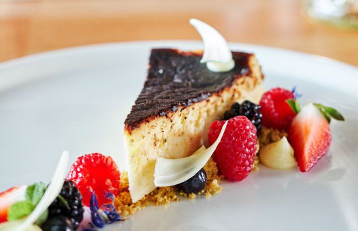 Góð kaka fengin að láni gefin áfram Gunnþóra Gunnarsdóttir skrifar 9. apríl 2017 09:00 Ljúffengur eftirréttur yfir páskahátíðina. Vísir/AntonBrink „Það er lítið mál að gera þessa ostaköku. Hún er hræðilega einföld og hrikalega góð. Svo er aukameðlæti með henni ef einhver vill spreyta sig, en takið eftir að það þarf að gera hvíta súkkulaðið daginn áður,“ segir Leifur Kolbeinsson matreiðslumeistari. Hann brást vel við þegar hann var beðinn um uppskrift að ljúffengum eftirrétti sem prýtt gæti páskaborð.Vigdís May Diem Vo, konditor.Vísir/Anton BrinkLeifur er nýbúinn að opna nýjan veitingastað, Marshall restaurant og bar á Grandagarði. Þar er Vigdís May Diem Vo konditor hans hægri hönd þegar kemur að kökum og það er hún sem á flest handtökin við kökuna sem hér birtist mynd af.Leifur Kolbeinsson kokkur í önnum í eldhúsinu. Vísir/GVASagan á bak við kökuna En Leifur lumar á lítilli sögu á bak við þessa köku. „Ég fékk þessa köku lánaða með góðum hætti á litlum veitingastað í San Sebastian á Spáni. Staðurinn heitir Lavina og á matseðlinum hjá mér skíri ég kökuna Ostakaka Lavína. Þetta er er lítill tapasbar og nánast það eina sem veitingamaðurinn gerir er að afgreiða þessa köku. Það er alltaf fullt þarna, alla daga og öll kvöld.“Ein fögur og ljúffeng.Vísir/Anton BrinkLeifur sýnir í raun ótrúlegt örlæti með því að gefa þjóðinni hlutdeild í þessu ævintýri. Hann útskýrir það svona. „Af því ég fékk kökuna lánaða svo fallega hjá Lavina þá gef ég hana áfram.“ Birtist í Fréttablaðinu Mest lesið Telur Sweeney hafa verið blekkta í kjólinn Tíska og hönnun Atli Steinn fann ástina á ný Lífið „Síðasta flugtak“ Play í Gamla bíói Lífið „Lélegur í að fela hvernig mér líður og bera harm minn í hljóði“ Tónlist Steingleymdi að taka niður sólgleraugun Lífið Már Gunnars genginn út Lífið Ískyggilega líkur ofurfyrirsætu: „Ég er með píku“ Lífið Vaktin: Sjónvarpsmenn verðlauna hver annan á ný Bíó og sjónvarp „Get ekki gengið óstudd og framundan er mikil endurhæfing“ Lífið Stjörnurnar skinu skært á sögulegum sjónvarpsverðlaunum Lífið Fleiri fréttir Hryllilega girnilegar hrekkjavökukræsingar Dúnmjúk skinkuhorn með æðislegri fyllingu Elegant eftirréttur sem hlýjar um hjartarætur Bragðgott quesadilla á einni plötu Smjörsteikt bleikja, smjörkennt hvítvín og „alkahólíseraður Texasbúi“ „Táknmynd ítalskrar matargerðar“ Silkimjúk espresso-kaka fyrir helgina „Forréttur sem ég býð öllum upp á“ Próteinríkt avókadó-salat að hætti Önnu Eiríks Sjá meira