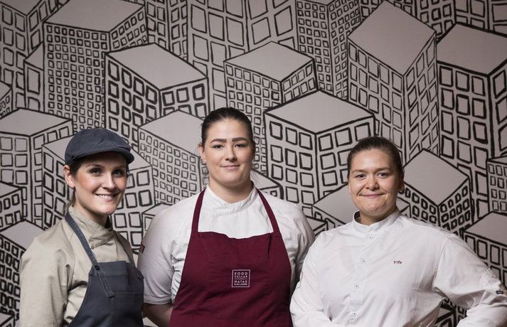 Ylfa Helgadóttir er yfirmatreiðslumeistari og eigandi Kopars, veitingastaðar við Gömlu höfnina í Reykjavík. Hún er í kokkalandsliðinu og hefur hlotið fjölda verðlauna og viðurkenninga. Iðunn Sigurðardóttir er yfirkokkur á Matarkjallaranum og hefur einnig hlotið fjölda viðurkenninga þrátt fyrir ungan starfsaldur. Margrét Bjarnadóttir er nýliði í bransanum, er kokkanemi á Geira Smart og á bakgrunn í næringar- og hjúkrunarfræði. Hrefnu Sætran matreiðslumeistara þekkja landsmenn flestir. Hún er eigandi tveggja veitingastaða, Fisk- og Grillmarkaðarins, og starfar á báðum stöðum. Hún var tíu ár í kokkalandsliðinu. Hrefna er stödd í Japan og tekur því þátt í spjalli um bransann í gegnum netið.Fékk bakþanka Hvernig lá leið ykkar í bransann? Hvar lærðuð þið?Ylfa: Ég kláraði stúdentsprófið áður. Og gerði það á þremur árum. Það var rétt áður en það bauðst að klára prófið á tveimur árum. Ef það hefði verið í boði, þá hefði ég gert það. Ég var að drífa mig svo í kokkinn. Þegar ég útskrifaðist var ég samt ekki lengur viss um að ég vildi leggja þetta fyrir mig. Það var lítið talað um þetta starf á þessum tíma, lítil umræða og það var töluvert minni markaður en er núna. Ég fór að vinna á bar í miðbænum sem lagði líka áherslu á veitingar og sótti um nám í hótelstjórnun í Bandaríkjunum. Yfirþjónn barsins ræddi við mig um framtíðaráætlanir mínar og spurði mig hvort ég vildi verða kokkur. Ég sagði já. En ég sæi ekki tækifærin hér heima. Hann sagði þá við mig: Heyrðu, það er verið að opna nýjan stað hérna hinum megin við götuna. Kíkjum á þá. Og það var Fiskmarkaðurinn. Þetta átti greinilega að verða.Hafði aldrei farið út að borðaIðunn: Ég var tvö ár í Fjölbrautaskóla Suðurlands og var staðráðin í því að verða kokkur. Ég ákvað það bara einn daginn að verða kokkur. Ég hafði ekki einu sinni farið út að borða, nema á American Style! Ég var svo ung að ég mátti ekki flytja að heiman. Ég var því send í Fjölbrautaskóla Suðurlands þar sem ég hreinlega beið eftir því að tíminn liði svo ég gæti byrjað í kokkanámi. Ég kom svo hingað til Reykjavíkur. Ég vissi ekkert um bransann þegar ég byrjaði og sótti um á fjölda veitingastaða. Það var slembilukka að ég komst að á Fiskfélaginu. Ég gekk þar fram hjá og hugsaði með mér: Þetta lítur út eins og veitingastaður. Ég fór þangað inn að sækja um starf, sem ég fékk.Hætti í hjúkrunarfræðiMargrét: Ég tók stúdentspróf frá FG, svo tók ég hálft ár í næringarfræði. Það var draumurinn fyrst. Það reyndist hins vegar alveg sjúklega leiðinlegt. Ég fór eftir það í hjúkrunarfræði og hætti þar á öðru ári. Enginn skildi hvað ég var að gera í þessu námi. Ekki ég heldur. Fólk fór að spyrja hvað ég ætlaði að gera eftir námið og þá sagðist ég ætla að vinna í eldhúsi. Ég hef nefnilega alltaf haft áhuga á matreiðslu og ætlaði alltaf í kokkinn. Mér fannst ég samt þurfa að hafa stúdentshúfuna og einhverja gráðu á blaði. Því það er normið. Þess vegna fór ég í hjúkrunarfræðinám sem átti engan veginn við mig. En sem betur fer áttaði ég mig, það er engin þörf á því að gera hlutina eins og næsti maður. Ég hætti á miðvikudegi í hjúkrun og var komin á samning hér á fimmtudegi.Fólk hættir vegna álags Förum aðeins yfir tölurnar: 194 konur hafa útskrifast frá upphafi úr matreiðslunámi á meðan karlmennirnir eru 1.406 talsins. 87 nemendur eru skráðir í matreiðslunám á vorönn 2018 í MK og VMA. Þar af eru 23 konur. Er eitthvað að í þessum bransa?Iðunn: Það hætta mjög margar konur eftir útskrift. Ég held að það sé af því að það er svo lítið í boði fyrir konur með börn. Sem vilja vinna með barneignum og kringum það. Ég á nokkrar vinkonur sem hafa lent í þessu.Margrét: Já, ég líka. En karlar hætta líka. Veit um nokkra sem hafa hætt en fundið sér annan vettvang tengdan mat og tóku sér pásu frá eldhúsinu. Vinnutíminn er auðvitað ófjölskylduvænn, því miður.Ylfa: Það sem mun ekki breytast er vinnutíminn. Veitingastaðir eru opnir á kvöldin. Mesta álagið er þegar leikskólarnir eru að loka. Auðvitað er hægt að setja upp alls konar formúlur þar sem einhver sem er með sérþarfir fær að fara heim til að sinna börnum. Hvort sem þú ert karl eða kona. En þegar allt kemur til alls þá þarftu að taka kvöldin. Þá gerist allt sem skiptir máli. Bæði karlar og konur hætta vegna þessa álags.Stimpill á konum vegna barneigna Var erfitt að fá samning? Hafið þið mætt hindrunum eða mætt mótstöðu?Hrefna: Já, það var aðallega þegar ég var að reyna að komast á samning sem ég fann fyrir því. Það var stimpill á konum í sambandi við barneignir. Það var víst algengt að þær sem byrjuðu að læra yrðu óléttar á þessum fjórum árum sem námið tekur og það er smá vesen að brúa það bil fyrir atvinnurekandann því nemaplássið er frátekið þó svo að manneskjan sé í leyfi og bara x mörg pláss á hverjum stað. Námið fer að miklu leyti fram á veitingastaðnum sem þú ert á samningi hjá. Það sem mér fannst fyndnast var að ég ætlaði ekkert að fara að eignast börn þarna nítján ára gömul. Hafði ekki einu sinni hugsað út í það og var ekki í föstu sambandi. Svo allt í einu voru allir að spyrja mig hvort ég ætlaði nokkuð að verða ólétt! Ég þurfti að ganga á milli margra staða, fá þessa spurningu í andlitið og svo neitun í kjölfarið. Svo fékk ég vinnu í eldhúsinu á Apótekinu gamla, sem var ekki með nemaleyfi. Ég ákvað samt að stökkva á það og yfirkokkurinn þar, Sigurður Ólafsson, mikill meistari og snillingur, só