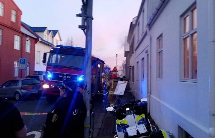 Bruni á Óðinsgötu: Einn handtekinn á vettvangi Birgir Olgeirsson og Jóhann K. Jóhannsson skrifa 21. apríl 2018 21:29 Allt tiltækt slökkvilið á höfuðborgarsvæðinu var kallað út að Óðinsgötu á tíunda tímanum í kvöld vegna tilkynningar um bruna. Eldurinn reyndist laus í húsi á Óðinsgötu en enginn hefur haft fasta búsetu í því í einhvern tíma vegna framkvæmda. Mikinn reyk lagði frá húsinu og ákváðu íbúar í næsta húsi að yfirgefa heimili sitt. Mikill viðbúnaður var á vettvangi og lokaði lögreglan svæðinu. Lögreglan handtók einn á vettvangi en vildi ekki staðfesta hvort að sú handtaka tengdist rannsókn á brunanum. Sagði lögreglan á vettvangi að tilkynningar væri að vænta vegna málsins. Frá handtöku mannsins á vettvangi við Óðinsgötu í kvöld.Vísir/Jóhann K. JóhannssonBirgir Finnsson, varaslökkviliðsstjóri á höfuðborgarsvæðinu, sagði í samtali við fréttastofu á vettvangi að mikill reykur hefði verið í húsinu þegar slökkvilið kom á vettvang. „Og eldur í kjallara þess. Við þurftum að fara inn, slökkva eldinn og leita af okkur allan grun þar sem húsið var stappfullt af reyk,“ sagði Birgir en húsið reyndis mannlaust. Hann sagði slökkvistarf hafa gengið mjög vel. Fljótt gekk að slökkva eldinn í kjallaranum og um leið og fleiri slökkviliðsmenn komu á vettvang hófu þeir leit í húsinu meðan verið var að slökkva eldinn. Slökkvistarf gekk því fljótt og skipulega fyrir sig. Hann sagði ekki hafa verið hættu á að eldurinn myndi breiðast út en aðkoman hefði ekki verið falleg við fyrstu sýn og þurfti því að vinna hratt og vel til að koma í veg fyrir að meira yrði úr þessum bruna. Fréttin var síðast uppfærð klukkan 22:39Húsið sem kviknaði í.Jóhann K. JóhannssonVísir/Jóhann K. JóhannssonVísir/Jóhann K. JóhannssonVísir/Jóhann K. JóhannssonVísir/Jóhann K Mest lesið Veðurvaktin: Snjókoman rétt að byrja og víða erfið færð Veður Ungur Miðflokksmaður gengst við rasisma og segir af sér Innlent Flugmaðurinn sem fórst millilenti oft í Reykjavík Innlent Snjókoman rétt að byrja Innlent Eldur í blokk við Ljósheima Innlent Karlmaður lést í Bláa lóninu Innlent Bílar út af veginum á Reykjanesbraut Innlent Hvatt til varúðar vegna snjóflóðahættu á suðvesturhorninu Innlent Ráðgjafinn ráðinn í tímabundið starf eftir dýra skreppitúra Innlent Biðu í fjóra tíma úti á braut og aðra fjóra við farangursbeltin Innlent Fleiri fréttir Snjókoman mikla, ábótavant verklag ríkislögreglustjóra og jólasveinamót Karlmaður lést í Bláa lóninu Biðu í fjóra tíma úti á braut og aðra fjóra við farangursbeltin Kærðu umdeildar framkvæmdir allt of seint Skellt í lás í sundlaugum borgarinnar vegna veðurs Reglur brotnar og þjónusta sem bjóða ætti út Þarf að borga bætur þrátt fyrir breytingar á hlaupahjólinu Hvatt til varúðar vegna snjóflóðahættu á suðvesturhorninu Meiri kvika en í síðasta gosi Eldur í blokk við Ljósheima Flugmaðurinn sem fórst millilenti oft í Reykjavík Halla leiðir krabbameinsráð ráðherra Snjókomumet og umferðaröngþveiti Segir sameiginlegum gildum Norðurlanda ógnað Fjölmargir farþegar fastir í flugvélum á Keflavíkurflugvelli Ungur Miðflokksmaður gengst við rasisma og segir af sér Sturlað ástand og United vettlingar prjónaðir í bílnum Mesta snjódýpt í Reykjavík sem mælst hefur í október Viðbragðsaðilar í mikilli hættu vegna bíla á sumardekkjum Bílar út af veginum á Reykjanesbraut Vill heimila Samkeppniseftirlitinu að ráðast í húsleitir Snjókoman rétt að byrja Píratar berjist gegn „rísandi bylgju lýðskrums og fasisma“ Skvísur geti virkað sem hálfgerðir þroskaþjófar Ráðgjafinn ráðinn í tímabundið starf eftir dýra skreppitúra Misvægi atkvæða bitnar mest á Kraganum Heitavatnslaust á Suðurnesjum og rafmagnslaust víða um land Skreppiferðir í Jysk meðal þess sem ráðgjafi rukkaði fyrir „Ég tel ekki tilefni til að íhuga stöðu mína“ Áhyggjur af lánaframboði og ógnarlangar biðraðir Sjá meira