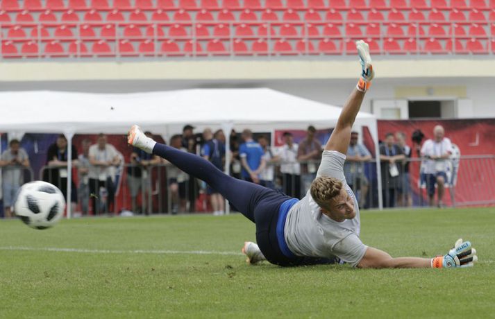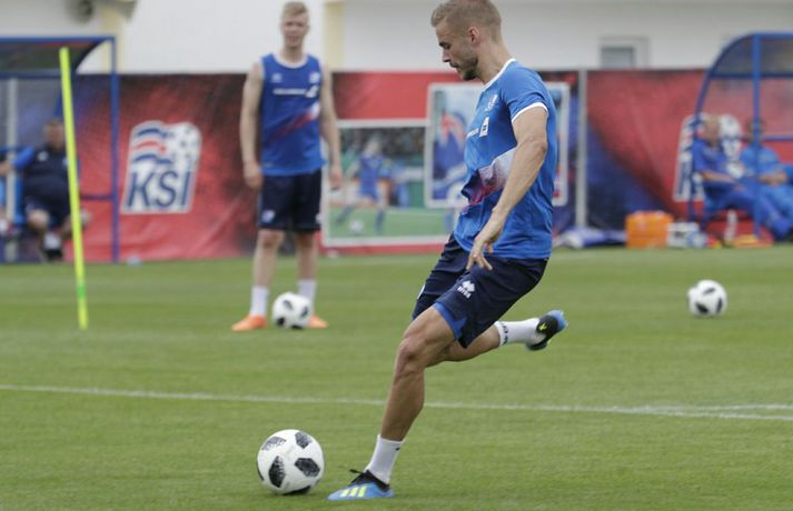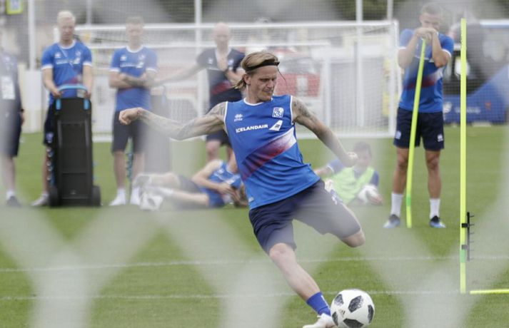 Strákarnir okkar voru mættir til æfinga í Kabardinka niðri við Svartahaf í morgun klukkan 11. Reyndar allir nema þrír. Alfreð Finnbogason, Gylfi Þór Sigurðsson og Jóhann Berg Guðmundsson urðu eftir á hótelinu og fór Jóhann Berg raunar í myndatöku á sjúkrahúsi til að fá nánari upplýsingar um meiðsli hans á kálfa. Leiknum í Moskvu í gær lauk klukkan sex að staðartíma. Um tveimur tímum síðar héldu þeir frá leikvanginum, út á flugvöll þaðan sem flogið var beinustu leið í suður, til Gelendzhik við Svartahaf. Þaðan er tíu mínútna akstur á fimm stjörnu hótel strákanna í Kabardinka þangað sem þeir voru komnir um hálf tólf að staðartíma. Leikmenn fegnu meðhöndlun í fluginu, þeirra á meðal Emil Hallfreðsson sem var í góðum höndum Friðriks Ellerts Jónssonar sjúkraþjálfara. Rúnar Vífill Arnarson í landsliðsnefnd KSÍ sagði leikmenn hafa verið þreytta þegar þeir komu á hótelið undir miðnætti. Þeir leikmenn sem spiluðu leikinn í gær voru í teygjuæfingum og endurheimt á æfingunni í morgun á meðan hinir leikmennirnir, varamenn sem ekkert spiluðu auk Ara Frey Skúlasonar og Rúriks Gíslasonar, sem tóku þátt í æfingunni. Þar var boðið upp á töluvert tempó, fyrst spil og svo skotæfingu.Vilhelm Gunnarsson, ljósmyndari Vísis, myndaði æfinguna í bak og fyrir.Vísir er með öflugt teymi í Rússlandi sem verður með ítarlegan fréttaflutning af íslenska liðinu á HM. Fylgist með á samfélagsmiðlum okkar - á Facebook, Twitter og Instagram.