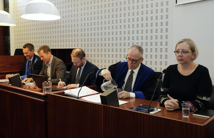 Fyrrum stjórnarmenn Kaupþings báru vitni um að lán sem eignarhaldsfélag Hreiðars Más Sigurðssonar, þáverandi bankastjóra, fékk í tengslum við hlutabréfakaup í bankanum hafi verið í samræmi við starfskjarastefnu og hafi ekki þurft sérstakt samþykki stjórnar. Aðalmeðferð í máli gegn bankastjóranum vegna lánveitingarinnar hófst í Héraðsdómi Reykjavíkur í dag. Héraðssaksóknari sakar Hreiðar Má um umboðssvik með því að hafa látið Kaupþing lána eignarhaldsfélagi sínu rúman hálfan milljarð króna í ágúst árið 2008. Hreiðar Már hafi gefið fyrirmæli um lánið sem hafi verið veitt án samþykkis stjórnar bankans og fullnægjandi trygginga. Með þessu hafi Hreiðar Már stefnt fé bankans í verulega hættu. Hann er einnig ákærður fyrir innherjasvik þegar hann seldi eignarhaldsfélaginu Heiðari Má Sigurðssyni ehf. hlutabréf í Kaupþingi á markaðsvirði eftir að hann hafði keypt þau persónulega á lægra kaupréttargengi.Lánið hafi verið hluti af kjörum Hreiðar Már skýrði frá því í morgun að lánið hafi hann fengið vegna þess að hann nýtti sér kauprétt á hlutabréfum í bankanum í ágúst 2008. Lánið hafi verið tvíþætt en það átti einnig að fjármagna skattkröfur sem höfðu orðið til vegna kaupréttarins. Þetta hafi verið hluti af ráðningarsamningi hans og starfskjörum. Við meðferð málsins í héraðsdómi í dag var mikið fjallað um starfskjarastefnu sem stjórn Kaupþings samþykktu árið 2005. Samkvæmt henni var ákveðið að bankinn skyldi fjármagna kauprétt æðstu stjórnenda á hlutabréfum í bankanum og jafnframt skattkröfur sem gætu komið til þegar þeir nýttu sér kaupréttinn. Stjórnin heimilaði æðstu stjórnendunum jafnframt að geyma hlutabréfin í sérstökum eignarhaldsfélögum. Um þetta báru nokkrir stjórnarmenn og stjórnendur bankans á þessum tíma, þar á meðal Sigurður Einarsson, þáverandi stjórnarformaður Kaupþings. Hann nýtti sér sambærilegan kauprétt og Hreiðar Már til að eignast hlutabréf í bankanum.Hreiðar Már í héraðsdómi í morgun. Hann lýsti ákærunni á hendur sér sem ömurlegri og taldi sig staddan í einhvers konar fáránleika.Vísir/VilhelmEkki þörf á sérstöku samþykki eftir að starfskjaraáætlun var samþykkt Framburður Sigurðar og Lýðs Guðmundssonar, þáverandi varaformanns stjórnar Kaupþings, gróf undan fullyrðingum saksóknara að lánið til Hreiðars Más hefði verið veitt án samþykkis stjórnar. Báðir báru þeir vitni um að eftir að stjórn bankans samþykkti starfskjarastefnuna árið 2005 hafi hún í kjölfarið ekki þurft að samþykkja lánveitingar vegna kaupréttar æðstu stjórnenda sérstaklega. Innri endurskoðandi bankans hafi hins vegar upplýst stjórnina um slíkar lánveitingar reglulega. Sigurður sagðist ekki minnast þess að stjórnin hafi nokkru sinni gert athugasemdir við lánveitingar til hans eða Hreiðars Más eða hugmyndir hafi komið upp um að krefja þá um frekari tryggingar eftir að sumir aðrir stjórnendur bankans voru farnir að standa höllum fæti fjárhagslega á árinu 2008. Lýður sagði að stjórnin hafi vitað af lánveitingunni til Hreiðars Más þegar hún kom saman til fundar síðla septembermánaðar árið 2008 þar sem innri endurskoðandi kynnti upplýsingar um hana. „Já, eins og held ég að öll stjórnin hafi vitað af því. Ef menn eru að standa sína plikt þá er það augljóst,“ sagði Lýður en tilkynnt hafði verið um kaup Hreiðars Más á hlutabréfunum mánuðinum áður. Lýsti hann sama skilningi og Sigurður á því að stjórnin hafi ekki þurft að samþykkja lánið til Hreiðars Más fyrir fram þar sem hún hefði fyrir löngu verið búin að samþykkja starfskjarastefnuna þar sem kveðið var á um slíkar lánveitingar.Helgi Sigurðsson var yfirlögfræðingur Kaupþings og kom meðal annars því þegar ákveðið var hvernig kauprétti stjórnenda og lánveitingum til þeirra ætti að hátta.rightEngin vafi um samþykki stjórnar Hörður Felix Harðarson, verjandi Hreiðars Más, spurði Ásgeir Thoroddsen, formann starfskjaranefndarinnar, hvort að stjórnin hefði samþykkt fyrirkomulag lánveitinga vegna kaupréttar æðstu stjórnenda og skattakrafna sem kæmu til vegna hans. „Alveg klárt. Engin spurning,“ sagði Ásgeir sem skrifaði undir lánasamninginn við eignarhaldsfélag Hreiðars Más. Hann neitaði þó að hafa átt þátt í að ákveða eða hafa afskipti af láninu sem ákært er fyrir. Helgi Sigurðsson, þáverandi framkvæmdastjóri lögfræðisviðs og ritari stjórnar Kaupþings, sagði að markmið kaupréttar æðstu stjórnenda hefði verið að samtvinna hagsmuni þeirra og bankans. Þegar ákvörðun var tekin um það hafi legið fyrir að það yrði ekki gert nema með því að gefa þeim hlutabréfin eða að lána þeim fyrir þeim. Hluthafafundur bankans hafi alltaf staðið við þá afstöðu að starfsmönnunum þyrfti að vera tryggt skaðleysi af viðskiptunum. Þá hafi legið fyrir að bankinn þyrfti að fjármagna þær skattakröfur sem gætu skapast af kaupréttinum. Sagðist Helgi telja að eftir að kaupréttaráætlunin var samþykkt hafi legið fyrir að lánveitingar vegna hennar þyrftu ekki frekari umfjöllun lánanefndar eða stjórnar. Innri endurskoðandi hafi reglulega farið yfir stöðu þessara lána og fyrirkomulagið hafi legið fyrir. Finnur saksóknari spurði Helga hvers vegna stjórn bankans hefði samþykkt sérstaklega lán til Hreiðars Más og Sigurðar stjórnarformanns fyrir hlutabréfum árið 2006 ef skilningur hans væri að stjórnin hefði ekki þurft að samþykkja sérstaklega fjármögnun kaupréttar þeirra. Helgi sagðist ekki átta sig á því. Sigurður bar hins vegar síðar vitni um að bæði hann og Hreiðar Már hefðu á þessum tíma tekið þátt í útboði Kaupþ