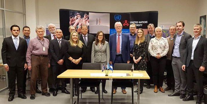 Utanríkisráðueytið eykur stuðning við jarðhitanám í Rómönsku Ameríku Heimsljós kynnir 6. maí 2019 14:00 Eftir undirritun samningana milli fulltrúa El Salvador og Íslands. Orkustofnun. Utanríkisráðuneytið hefur tekið við hlutverki Norræna þróunarsjóðsins (NDF) sem aðalstyrktaraðili jarðhitanáms á vegum LaGeo, jarðhitafyrirtækis í El Salvador. Námið er sniðið að Rómönsku Ameríku og fer fram á spænsku við Háskóla El Salvador. Jarðhitaskóli Háskóla Sameinuðu þjóðanna styrkir einnig námið og leggur til kennara líkt og undanfarin ár. Í síðustu viku var skrifað undir viljayfirlýsingu milli Jarðhitaskólans og LaGeo um áframhaldandi samstarf á sviði jarðhitaleitar og uppbyggingu jarðhitaþekkingar í þessum heimshluta og sérstakan samning til tveggja ára um fimm mánaða diplómanám við Háskóla El Salvador. Að sögn Lúðvíks S. Georgssonar forstöðumanns Jarðhitaskólans skiptir mikilvægi aukinnar nýtingar á endurnýjanlegum orkugjöfum sífellu meira máli við að draga úr losun á gróðurhúsaloftegundum. “Í baráttunni gegn hlýnun jarðar er ávinningurinn af minni notkun á jarðefnaeldsneyti mikils virði. Þessi aðstoð Íslands við uppbyggingu endurnýjanlegrar orku til framleiðslu rafmagns eða hitunar húsa með jarðvarma styður viðkomandi þjóðir efnahagslega og samfélagslega, en ekki hvað síst á sviði umhverfis- og loftlagsmála. Með verkefnum sem þessum getur Ísland lagt sitt af mörkum í samstarfi við aðrar þjóðir um að nýta endurnýjanlega orku og draga þannig úr notkun jarðefnaeldsneytis og losun gróðurhúsalofttegunda. Það gagnast öllum þjóðum, óháð landamærum, í baráttunni við hlýnun jarðar,” segir hann. Richardo Salvador Flores framkvæmdastjóri leiddi fjögurra manna sendinefnd frá LaGeo sem kom hingað til lands sérstaklega vegna samninganna við utanríkisráðuneytið og Jarðhitaskólann. Auk hans voru með í för tveir fyrrverandi nemendur Jarðhitaskólans, Rosa Escobar og Kevin Padiall, jarðhitasérfræðingar hjá LeGeo, og fjölmiðlafulltrúi. Lúðvík S. Georgsson forstöðumaður Jarðhitaskólans undirritaði samningana fyrir hönd skólans og María Erla Marelsdóttir sendiherra og skrifstofustjóri þróunarsamvinnuskrifstofu fyrir hönd utanríkisráðuneytisins. Jarðhiti er mjög mikilvægur fyrir El Salvador Árið 2016 komu 24% af framleiddri raforku í landinu frá tveimur jarðvarmavirkjunum, Ahuachapan og Berlín, sem hafa framleiðslugetu upp á 204 MWe. Þessi grein er hluti af samstarfi Vísis og utanríkisráðuneytisins um miðlun frétta af þróunarsamstarfi Íslands um allan heim. Fréttin birtist fyrst í Heimsljósi, upplýsingaveitu utanríkisráðuneytisins um þróunar- og mannúðarmál. Þróunarsamvinna Mest lesið „Ég hef aldrei upplifað annan eins harm“ Innlent Hrindir af stað söfnun fyrir móður stúlkunnar sem lést í Suður-Afríku Innlent Breiddi út faðminn fyrir rasista: „Þið þurfið ekki að biðjast afsökunar á að vera hvít lengur“ Erlent Gaf fingurinn á Miklubraut Innlent „Þetta hefur verið þungur tími“ Innlent Hundrað og fjörutíu milljarða bótakrafa á Samherja sé súrrealísk Innlent Sprengdu rússneskan hershöfðingja í loft upp í Moskvu Erlent Appelsínugular og gular viðvaranir á aðfangadag Veður Undirbúningur árásarinnar stóð yfir í marga mánuði Erlent Naut aðstoðar samskiptasérfræðinga vegna veiðigjaldamálsins Innlent