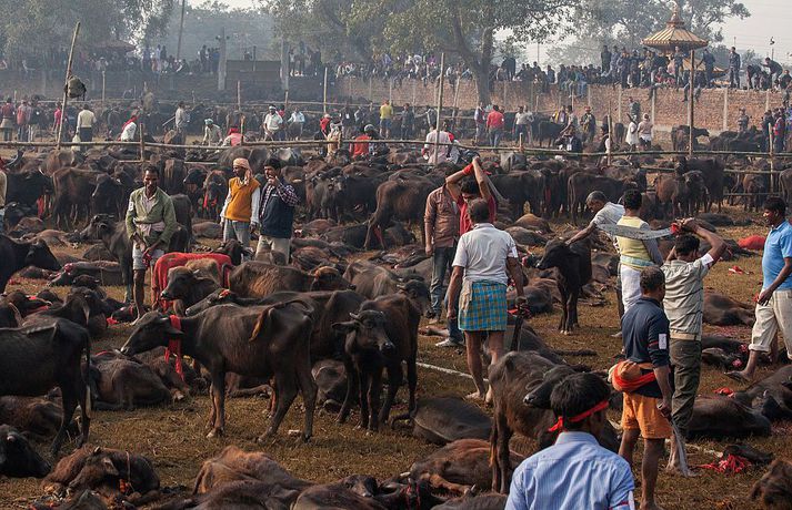 Gadhimai-hátíðin, ein mesta fjöldaslátrunarhátíð heims, hófst í Nepal í gær í skugga mikillar gagnrýni og baráttu fyrir því að hætta blóðbaðinu sem þar fer fram. Hátíðin hefur verið haldin á fimm ára fresti, stendur í tvo daga, en árið 2014 er áætlað að um 200 þúsund dýrum hafi verið slátrað. Hindúar standa fyrir hátíðinni þar sem dýrum er slátrað til heiðurs valdagyðjunni Gadhimai. Koma þar þúsundir hindúa frá Nepal og Indlandi saman við Gadhimai-hofið í Bariyarpur til að slátra kúm, vísundum, geitum, fuglum, rottum og fleiri dýrategundum. Dýraverndunarsinnar og hæstiréttur Nepals hafa lengi barist fyrir því að stöðva trúarlegar slátranir hátíðarinnar.GettyGettyGetty