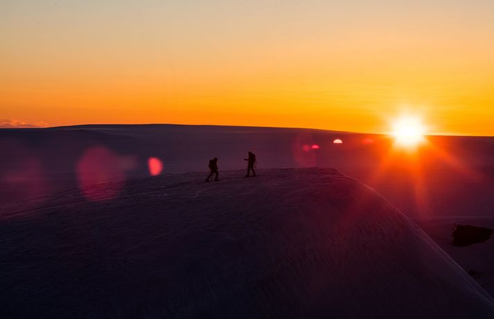 „Ég hef ferðast marga hringi í kringum landið og ég reyni að skoða sem mest. Stundum fer ég einn, stundum næ ég að plata einhvern með mér. Mér líður eiginlega best bara að fá að vera í gönguskónum mínum, með myndavélina á lofti og bara vera,“ segir Garpur Elísabetarson kvikmyndagerðarmaður en hann hefur starfað sem leiðsögumaður í nokkur ár. „Þó að ég hafi séð margt og skoðað marga fallega staði á landinu þá er bara einn staður sem kemur upp í huga mér þegar ég hugsa um minn uppáhaldsstað. Það er Aðalvík á Hornströndum. Ég fór þangað fyrst þriggja ára árið 1987 og síðan þá er alltaf planið öll sumur að fara þangað. Stundum kemst ég ekki, enda ferðalagið kannski ekki auðvelt né ódýrt. En alltaf þess virði þegar ég kemst.“ Garpur Elísabetarson, ferðalangur í eigin landi.Mynd/úr einkasafni Treystir slúðrinu Garpur á ættir að rekja til Aðalvíkur og amma hans bjó þar þangað til staðurinn fór í eði í kringum árið 1950. „Síðan þá hafa þau örfáu hús sem eru þar enn verið notuð af afkomendum sem sumarhús. Þar er ekkert rafmagn og ekkert símasamband, nema uppi á fjalli og á einum blett við prestshúsið skilst mér. Ég hef ekki fundið þennan blett sjálfur, en treysti slúðrinu. Það er ekki hægt að komast þangað öðruvísi en að sigla.“ Aðalvík, þar sem hvorki er rafmagn né símasamband.Mynd/Garpur Elísabetarson Hann segir að það sé líka mikill bónus að fá að heimsækja Ísafjörð í leiðinni. „Ég tengi þennan stað alltaf við pabba minn og tvíburabróður minn. Ef ég gæti valið, þá myndi ég planta pabba mínum á daginn út í Staðarvatn að veiða silung í matinn, þar líður honum best, leyfi ég mér að segja. Svo á kvöldin er planta ég honum á trédrumb við olíueldavélina að halda kofanum heitum og helst steikja silunginn sem hann veiddi handa mér og Jökli, tvíburanum mínum, á meðan við leggjum kapal og skiptumst á sögum.“ Feðgarnir saman í AðalvíkMynd/Garpur Elísabetarson Heimatilfinning Garpur segist vera ótrúlega þakklátur pabba sínum fyrir að hafa dröslað þeim bræðrum þangað á sumrin. „Fyrir að kenna okkur að vera til, láta okkur leiðast og finna okkur eitthvað að gera. Segja okkur sögur, búa til mikið úr litlu og veiða okkur til matar. Kynna okkur fyrir álfunum sem þurfti að biðja um leyfi til að veiða í vatninu, sem ég geri enn þann dag í dag. Ég held að maður kynnist engum jafn vel og að þegar maður þarf að láta sér leiðast saman og hafa ekkert fyrir stafni. Þá fara töfrarnir að gerast. Þegar ég sigli fyrir Ritinn, fjallið sem þarf að sigla fyrir á leið inn í Aðalvík, þá fæ ég heimatilfinningu sem ég fæ hvergi annars staðar. Ég kann best við mig út í náttúrunni, mér finnst allt bara svolítið ganga upp þar, og hvergi jafn mikið og sterkt og í Aðalvík.“ Fjaran í Aðalvík.Mynd/Garpur Elísabetarson Í seinni tíð hafa bræðurnir reynt að halda í þessar hefðir og búa til nýjar minningar með eigin börnum á þessum fallega stað. „Planið er svo í sumar, eins og öll sumur, að fara til Aðalvíkur. Setja úrin ofan í skúffu, borða þegar við erum svöng, sofa þegar við erum þreytt, týna bláber og kannski hlaupa upp á fjall.“ Í albúminu má finna nokkrar einstakar myndir sem Garpur hefur tekið í Aðalvík í gegnum árin. Kamilla í Aðalvík.Mynd/Garpur ElísabetarsonAðalvík.Mynd/Garpur ElísabetarsonAðalvík.Mynd/Garpur ElísabetarsonFrænkurnar Kamilla og Lillý í Aðalvík.Mynd/Garpur ElísabetarsonKamilla í Aðalvík.Mynd/Garpur ElísabetarsonFeðgarí AðalvíkMynd/Garpur ElísabetarsonEmbla Karen í Aðalvík.Mynd/Garpur ElísabetarsonKamilla í bátnum á leiðinni til Aðalvíkur.Mynd/Garpur ElísabetarsonAðalvíkMynd/Garpur ElísabetarsonJökull og börnin í Aðalvík.Mynd/Garpur ElísabetarsonAðalvíkMynd/Garpur ElísabetarsonVeiðikonan Embla í AðalvíkMynd/Garpur ElísabetarsonEmbla í AðalvíkMynd/Garpur ElísabetarsonEmbla í AðalvíkMynd/Garpur ElísabetarsonGarpur í AðalvíkMynd/Garpur ElísabetarsonIngi, faðir Garps, kindir kofann í AðalvíkMynd/Garpur Elísabetarson Hér fyrir neðan má svo finna stutt myndband sem Garpur tók af fegurðinni í Aðalvík. Klippa: Perlur Íslands: Aðalvík Hopp og skopp á hálendinu Garpur er náttúrubarn og mikill ferðalangur og ferðast mikið innanlands vegna vinnunnar og í sínum frítíma. „Sumarið er tíminn á Íslandi og þegar ég er að segja erlendum ferðamönnum sögur á veturna fæ ég mjög oft spurninguna „Af hverju í ósköpunum býrðu hérna?” Einfalda svarið er auðvitað „Því hér á ég heima.“ Þó að ég skilji auðvitað hvaðan þessi spurning kemur, þegar hver lægðin heimsækir landið, þá er mjög auðvelt að segja þessu sama fólki að sumrin á Íslandi séu einstök. Þar er engu logið. Það sést ótrúlega vel, til dæmis eftir þennan rosalega langa og þunga vetur, að þegar maí mætti með sólina, þá bara lifnaði yfir landi og þjóð.“ Í þessu myndaalbúmi má sjá nokkrar ævintýralegar myndir Garps frá fleiri perlum Íslands. HeinabergslónMynd/Garpur ElísabetarsonHesteyriMynd/Garpur ElísabetarsonSeljalandsfossMynd/Garpur ElísabetarsonFimmvörðuhálsMynd/Garpur ElísabetarsonKamilla og Embla á BreiðamerkurjökliMynd/Garpur ElísabetarsonDyrhólaeyMynd/Garpur ElísabetarsonSkógafossMynd/Garpur ElísabetarsonHigh five uppi á HvannadalshnjúkMynd/Garpur ElísabetarsonToppurinn á Íslandi - Hvannadalshnjúkur í miðri nætursólinni.Mynd/Garpur ElísabetarsonReynisfjaraMynd/Garpur ElísabetarsonSnæfellsjökullMynd/Garpur ElísabetarsonHnappavellirMynd/Garpur ElísabetarsonGræni hryggurMynd/Garpur ElísabetarsonGarpur í gljúfriMynd/Garpur ElísabetarsonLandmannalaugarMynd/Garpur ElísabetarsonReynisfjall og Reynisdr