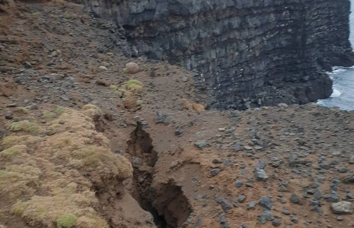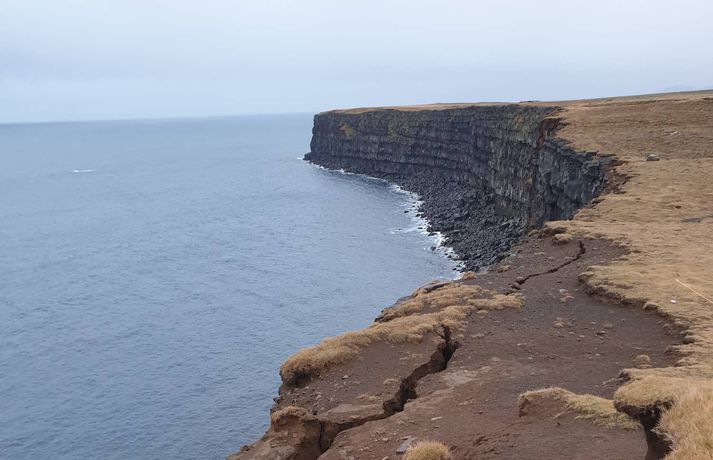 Nýjar sprungur í Krýsuvíkurbjargi eftir jarðskjálftann stóra Kjartan Kjartansson skrifar 22. október 2020 14:00 Sprunga í brún Krýsuvíkurbjargs eftir jarðskjálftann. Sævar Óskarsson landvörður tók myndina miðvikudaginn 21. október. Viðvörunarlínum var bætt við til að halda fólki frá brúninni í gær. Óskar Sævarsson Berg hrundi úr Krýsuvíkurbjargi og nýjar sprungur mynduðust í það í jarðskjálftanum stóra sem átti upptök sín skammt frá Krýsuvík á þriðjudag. Landvörður segir að þegar hafi verið gripið til ráðstafana til að bæta öryggi við bjargið. Jarðfræðingur telur að næsta stóra óveður eigi eftir að hreinsa út laust efni úr bjarginu. Stóri jarðskjálftinn á þriðjudag mældist 5,6 að stærð og var sá stærsti sem mælst hefur á Reykjanesskaga frá árinu 2003. Upptök hans voru um 6,8 kílómetra vestan við Kleifarvatn. Fjöldi eftirskjálfta hefur mælst síðan þá. Veðurstofan sagði á miðvikudag að vísbendingar væru um að sprungur við Krýsuvíkurbjarg hefðu gliðnað og nýjar myndast. Óskar Sævarsson, landvörður í Reykjanesfólkvangi, segir bergið í Krýsuvíkurbjargi sprungið eftir áralangar jarðhræringar á svæðinu. Síðast í ágúst hafi verið skjálfti upp á fjóra að stærð í Krýsuvík sem olli grjóthruni úr bjarginu. „Það sem er sýnilegt núna og nýtt er í þessum jarðvegi sem liggur ofan á berginu. Þar sést greinilega að það eru að myndast sprungur undir. Svo eru þarna fyrir náttúrulega gamlar sprungur sem hafa verið að gliðna núna á hverju ári síðustu tíu árin,“ segir Óskar í samtali við Vísi. Nýjar sprungur mynduðust og eldri gliðnuðu frekar í jarðskjálftanum sem reið yfir á þriðjudag.Dagur Jónsson Eftir jarðskjálftann í vikunni segist Óskar hafa séð hrúgur eftir berghrun á fjórum til fimm stöðum í fjörunni fyrir neðan bjargað. Það sé með því mesta sem hann hafi séð. Berghrunið til þessa hafi þó yfirleitt verið í minna lagi. Sumar nýju sprungnanna liggi talsvert inn fyrir bjargbrúnina sjálfa, allt að tugi metra inn í land. „Það sést best þar sem jarðvegsþekja er að rofna. Það má alveg sjá það núna að það hefur gliðnað og jafnvel opnast göt ofan í það. Þá erum við að tala um gríðarlega stór stykki úr bjarginu,“ segir hann. Óskar Sævarsson, landvörður í Reykjanesfólkvangi.Vísir/Stöð 2 Þarfnast frekari aðgerða Krýsuvíkurbjarg er á meðal þeirra staða í Reykjanesfólkvangi þar sem ferðamenn staldra við. Óskar segir nokkuð augljósa hættu á að bjargbrúnin geti gefið sig á sumum stöðum. Þrátt fyrir það hafi hann orðið vitni að því að ferðafólk sitji eða liggi hálft fram af brúninni. Stór viðvörunarskilti um hættu á brúninni eru við veginn sem liggur að bjarginu. Þá er um tvö hundruð metra langur kafli afmarkaður svo að fólk fari ekki fram á bjargbrúnina. Bjargbrúnin allt er þó í kringum sjö kílómetra löng. Ráðist var í aðgerðir til þess að bæta öryggi við Krýsuvíkurbjarg í kjölfar tíðra slysa í Reynisfjöru fyrir þremur árum. Óskar segir að sem betur fer hafi bjargið verið laust við manntjón og slys til þessa og þakkar það meðal annars skilmerkilegu viðvörunarskiltum. Óskar telur þó að atburðir vikunnar kalli á frekari aðgerðir. Þegar sé búið að framlengja viðvörunargirðingu við bjargbrúnina og gerðar voru ráðstafanir í gær til að tryggja að fólk færi ekki um nýju sprungurnar sem mynduðust. Ekki fara þó margir þar um þessa dagana, bæði vegna veðurs og hruns í ferðamannastraumi vegna kórónuveirufaraldursins. „Það er alveg ljóst að ef þetta heldur áfram og eins og staðan er núna þarf að bregðast við því með einhverjum hætti,“ segir hann og bendir á að Hafnarfjarðarbær vinni nú að deiliskipulagi fyrir bjargið sem áningar- og ferðamannastað. Óskar vonast til að þar verði lagðar til hugmyndir til að tryggja öryggi. Ármann Höskuldsson, jarðfræðingur.Vísir/Vilhelm Stefna sprungnanna skiptir máli Ármann Höskuldsson, jarðfræðingur hjá Háskóla Íslands, segir afar óæskilegt að fólk sé á ferð í bröttum hlíðum eða við bjargbrúnir eins og í Krýsuvík á meðan jarðskjálftahrina sem þessi gengur yfir. Hann hefur ekki komist sjálfur til að skoða svæðið eftir jarðskjálftann ennþá. „Við erum á mjög brothættu svæði. Að standa þar fram á björgum er ekki mjög æskilegt á meðan hrinan gengur yfir. Svo þyrftum við helst að fá eitt gott óveður inn í Krýsuvík, þá hreinsar aldan björgin sem eru orðin laus,“ segir hann. Bjargið er smám saman að hrynja út í sjó og segir Ármann sprungurnar veikja bjargið enn frekar. Stefna þeirra hefur áhrif á hættuna á frekara hruni úr bjarginu. „Ef þær eru beinar inn til lands þá hafa þær bara áhrif í bjargbrúninni sjálfri en ef þær sveigjast með bjargbrúninni er meiri hætta á að stórar spildur fari út í sjó. Þá er þetta náttúrulega orðið miklu hættulegra hvað varðar ferðamenn og fólk sem er í göngutúr,“ segir hann. Svipaðar aðstæður segir Ármann við Valahnúk á Reykjanesi. „Þar erum við með sveigsprungur eftir bjargbrúninni sem segja okkur það að fjallið allt er að fara niður. Það er náttúrulega óþægilegt að standa röngu megin við þannig sveigsprungu þegar það fer af stað því þá ferðu bara með,“ segir hann. Sprunga samhliða bjargbrúninni í Krýsuvíkurbjargi.DagurNýjar sprungur mynduðust og eldri gliðnuðu frekar í jarðskjálftanum sem reið yfir á þriðjudag.DagurSprunga við Krýsuvíkurbjarg.Dagur JónssonGrjóthrun úr Krýsuvíkurbjargi eftir jarðskjálfta 20. október 2020.Dagur JónssonSprunga við Krýsuvíkurbjarg eftir jarðskjálfta 20. október 2020.Dagur JónssonSprungur 