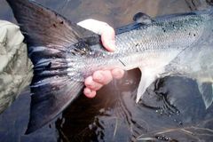 Laxinn sem um ræðir var 110 sm hrygna sem tók Svartan Frances og var flugunni kastað norðan meginn af Breiðunni sem er líklega einn þekktasti veiðistaður Blöndu. Veiðimaðurinn var Gísli Vilhjálmsson og honum til aðstoðar var Þorsteinn Hafþórsson. Eins og meðfylgjandi mynd ber með sér er þetta þykk og flott hrygna sem hefur greinilega verið í ánni í einhvern tíma því ekki er hún nýgengin eins og sjá má á útliti hrygnunar. Þetta er glæsilegur lax og Veiðivísir óskar veiðimanni til lukku með fenginn.