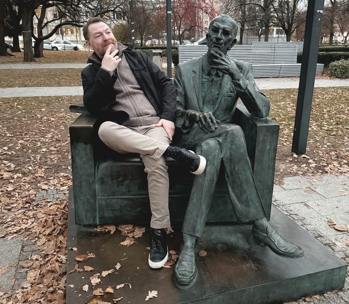 „Þarf ekkert að klífa Everest til að finnast ég einhvers virði“ Svava Marín Óskarsdóttir skrifar 2. október 2025 09:02 Sváfnir situr fyrir svörum í viðtalsliðnum Hin hliðin. Ljósmynd/Steinar Júlíusson „Þegar ég var yngri dáðist ég nánast skilyrðislaust að sumum tónlistarmönnum, einstaka rithöfundum eða leikurum. En ég er eiginlega alveg hættur því að dást svona skilyrðislaust af einhverjum nema kannski barnabörnunum,“ segir Sváfnir Sigurðsson, markaðsstjóri, tónlistarmaður og rithöfundur. Sváfnir er 56 ára margra hatta maður – en fyrst og fremst fjölskyldumaður. Hann kallar sjálfan sig ástríðukokk og barnabarnaspilla og segir brosandi að þrjú barnabörn vefja honum um fingur sér. Þar að auki segist hann vera þráhyggjukenndur áhugamaður um að koma sér upp matjurtagarði. „Að vakna snemma og vera duglegur. Ég lifði í þeim misskilningi lengi vel að til væri fólk með snilligáfu sem gæti hrist alla mögulega hluti fram úr erminni nánast án áreynslu. Nú veit ég að dugnaður og þolgæði eru frumkraftar í því að ná árangri,“ segir hann spurður hvaða heilræði hafi reynst honum best á lífsleiðinni. Hann hefur vakið athygli á undanförnum árum sem tónlistarmaður og gefið út nokkrar plötur undir eigin nafni og fjöldi laga hans ratað á vinsældarlista. Nú síðast samdi hann tónlist við gamanleikritið Eltum veðrið sem gengið hefur fyrir fullu húsi í rúmt ár í Þjóðleikhúsinu þar sem hann starfar sem markaðsfulltrúi. Sváfnir söðlar nú um og skrifar og myndskreytir ævintýri fyrir börn en hann gaf nýverið út sína fyrstu barnabók, Brandarabílinn. Sváfnir situr fyrir svörum í viðtalsliðnum Hin hliðin. Persónulegar staðreyndir Fullt nafn? Sváfnir Sigurðarson Aldur? 56 ára ... eða bíddu... Jú. Það er víst alveg rétt. Starf? Markaðsfulltrúi í Þjóðleikhúsinu, tónlistarmaður og nú að hasla sér völl sem rithöfundur. Fjölskylduhagir? Giftur Erlu minni, eigum þrjú börn og þrjú barnabörn og einn hund. Á dýptina Lýstu þér í þremur orðum: Alltaf að batna. Hvert er stærsta afrek þitt eða mesta gæfa sem hefur komið þér á óvart í lífinu? Að hafa komist heill á húfi í gegnum æsku- og unglingsár er ákveðið afrek. Hvaða reynsla eða manneskja hefur mótað þig mest í lífinu, og hvernig? Fólkið sem stendur mér næst hefur mótað mig mest. Þegar ég var yngri dáðist ég nánast skilyrðislaust að sumum tónlistarmönnum, einstaka rithöfundum eða leikurum. En ég er eiginlega alveg hættur því að dást svona skilyrðislaust af einhverjum nema kannski barnabörnunum! Er eitthvað sem þú óttast? Að sitja fastur í mannþröng og komast hvergi! Hvernig vilt þú að fólk muni eftir þér? Með hlýju. Besta heilræði sem þú hefur fengið? Að vakna snemma og vera duglegur. Ég lifði í þeim misskilningi lengi vel að til væri fólk með snilligáfu sem gæti hrist alla mögulega hluti fram úr erminni nánast án áreynslu. Nú veit ég að dugnaður og þolgæði eru frumkraftar í því að ná árangri. Hvar sérðu þig eftir tíu ár? Vonandi við góða heilsu. Örugglega að skrifa, semja tónlist og önnum kafinn við leitina að hinu fagra, góða og sanna. Henni lýkur aldrei. Létt og skemmtilegt Ein staðreynd um þig sem kemur fólki á óvart? Ég hef hvorki komið til Noregs né Svíþjóðar. Og nú spyr ég mig: Þarf ég þess nokkuð? Hvaða tungumál talarðu? En langar til? Fyrir utan okkar ástkæra ylhýra þá er ég alveg ágætur í dönsku og ensku. Reyndi að læra spænsku en ég hafði ekki þolinmæði. Það kemur kannski seinna. Kann ennþá nokkur orð í tungumáli sem við vinirnir reyndum að búa til á unglingsárunum. Ef þú hefðir einn ofurkraft, hver væri hann? Að standa meira á sama um hvað öðru fólki finnst og líða ekki eins og ég þurfi að geðjast því. Ef þú gætir ferðast aftur í tímann – hvaða augnablik eða tímabil í lífi þínu myndir þú velja? Ég myndi vilja hitta 12 ára Sváfni og segja honum að hafa aðeins meiri trú á sjálfum sér. Fyndið er skrítið atvik sem þú hefur lent í? Á hótelbar í Amsterdam árið 2015, eftir sigur íslenska landsliðsins á því hollenska, þrættu tveir íslenskir menn við mig og linntu ekki látum fyrr en ég viðurkenndi að ég væri Jónas Sig. Þeir tóku ekki annað í mál. Ég þurfti á endanum að gangast við því. Þeir þökkuðu mér innilega fyrir alla músíkina og hurfu ánægðir á braut. Fallegasti staður á Íslandi? Margir. Ásbyrgi alltaf í sérstöku uppáhaldi. Dettifoss kannski meira hrikalegur en fallegur. En ég held að Þórsmörk að hausti taki öllu fram. En úti í heimi? Bled í Slóveníu er líklega fallegasti staður sem ég hef komið á. Ertu með einhvern bucket-lista? Ómeðvitað kannski. Ekkert sem ég hef skrifað niður og reyni að manifesta. Snýst meira um að finna þörf hverju sinni og reyna að svala henni og mér finnst ég vera að því með því að skrifa og semja tónlist. Ég þarf ekkert að klífa Everest til að finnast ég einhvers virði. Hvað ertu að hámhorfa á núna? Er að bíða eftir tækifæri til þess að horfa á nýja seríu með Toni Colette. Wayward heitir hún. Hvaða lag kemur þér alltaf í gírinn? Það fer algerlega eftir því hvaða gír ég þarf hverju sinni. En Rock the Casbah með Clash og Stepping Out með Joe Jackson koma í hugann. Já og More than a feeling með Boston, og mögulega In a lifetime með Clannad og Bono og hugsanlega Both sides now með Joni Mitchell og svo ... já já, allskonar og ýmislegt. Hin hliðin er viðtalsliður á Lífinu á Vísi þar sem er rætt við fólk úr ýmsum áttum í samfélaginu. Endilega sendið ábendingar um einstaklinga sem gætu átt heima í Hinni hliðinni á svavam@syn.is. Hin hliðin Leikhús Bókaútgáfa Á