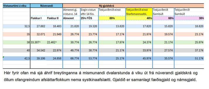 Þetta er á meðal tillagna sem stýrihópur um reglur í leikskólastarfi leggur til og lagðar voru fyrir borgarráð í dag. Hópurinn fékk það hlutverk að „skoða leiðir til að bæta mönnun og starfsaðstæður starfsfólks með það fyrir augum að draga verulega úr þörf fyrir fáliðunaraðgerðum í leikskólum borgarinnar og auka þar með fyrirsjáanleika í lífi barnafjölskyldna.“ Stytti mannaflaþörf á föstudögum Í grunninn er um tvær megintillögur að ræða. Sú fyrri snýr að fyrirsjáanleika í skráningu dvalartíma barna og í skipulagi á leikskólum. Þeir verða samkvæmt tillögunni áfram opnir frá 7:30 til 16:30 og gert ráð fyrir lágmarksdvalartíma upp á 30 klukkustundir en 42,5 klukkustunda hámarki. Þessi leikskólabörn í Garðabæ þurfa ekki að hafa sterkar skoðanir á breytingunum hjá nágrönnum sínum í Reykjavík.Vísir/Vilhelm Leikskólinn skal leitast við að skipuleggja helstu þætti skólanámskrár með fyrirsjáanlegum hætti innan tilgreindra fimm til sex klukkustunda á dag. Kynna þarf hana vel í leikskólasamfélaginu í upphafi starfsárs. Tillögunum er ætlað að tryggja hámarksmönnum á leikskólunum á milli klukkan 8 og 16 alla virka daga nema föstudaga sem verði með hámarksmönnum frá 8 til 14. Á öðrum tímum sé reiknað með minni mannaflaþörf. Verðlauna þá sem sleppa skráningardögum Áfram verður boðið upp á skráningardaga í leikskólunum alla daga milli jóla og nýárs, þrjá daga í dymbilviku og alla fimm daga í vetrarleyfum grunnskólanna, þrjá að hausti og tvo að vori. Sú breyting verður gerð að skráning fyrir alla skráningardaga mun fara fram í september ár hvert en ekki með mánaðarfyrirvara eins og nú er. Sérstakt gjald verður innheimt vegna hvers skráningardags sem nýttur er en sé enginn skráningardagur nýttur fellur niður námsgjald fyrir maímánuð. Þannig verði gert ráð fyrir minni mannaflaþörf á skráningardögum. Foreldrar og leikskólabörn í heimsókn í Ráðhúsi Reykjavíkur í verkfalli í fyrra.vísir/Anton Brink Breytingunum er ætlað að ná auknum fyrirsjáanleika í skipulagi og mannaflaþörf leikskólans. Skráningardögum og tímanum eftir klukkan 14 á föstudögum er ætlað að mæta breyttum vinnutíma starfsfólks. Með breytingunum eru væntingar um að ófyrirséðum fáliðunaraðgerðum, vegna öryggissjónarmiða, fækki til muna. Afsláttur fyrir styttri föstudaga Hin megintillagan snýr að breyttri gjaldskrá miðað við breytt skipulag leikskóladagsins. Útgangspunktur nýrrar gjaldskrár verður 38 stundir á viku. Tekið verður tillit til tekna foreldra undir ákveðnum tekjumörkum og sérstakt afsláttarkerfi innleitt fyrir þá. Þá verður veittur 25 prósenta afsláttur af námsgjöldum ef barn er ekki skráð eftir klukkan 14 á föstudögum. Fyrir hvern skráningardag verða rukkaðar fjögur þúsund krónur. Þá bætist við nýr afsláttarflokkur ef enginn daganna er nýttur og námsgjöld falla niður í maí eins og áður var nefnt. Námsgjald fyrir 38 stundir á viku eru 16 þúsund krónur og eru innleiddir fjárhagslegir hvatar fyrir foreldra til að nýta bara þær dvalarstundir sem börn þeirra þurfa. Námsgjald fyrir hvern hálftíma umfram 38 stundir á viku er fjögur þúsund krónur. Fæðisgjald helst óbreytt fyrir morgun-, síðdegishressingu og hádegismat. Ef dvalarstundir á viku eru undir 35 stundum fellur gjald fyrir síðdegishressingu út. Auknir afslættir í formi tekjuviðmiða eru teknir upp í nýrri gjaldskrá sem ætlað er að verja efnaminni foreldra og barnafjölskyldur og þau sem eru í viðkvæmri stöðu. Tekjuviðmið einstaklinga og sambúðarfólks munu miðast við heildartekjur á ári og miðað við skattframtal frá Ríkisskattstjóra. Hámarksafsláttur 80 prósent Lægra tekjuviðmið miðar við árstekjur undir 6,5 milljónum króna á ári og hærra tekjuviðmið miðar við árstekjur frá 6,5–9,5 milljónum króna. Lægra tekjuviðmið veitir 80% afslátt af námsgjaldi leikskóla og hærra tekjuviðmið 40% afslátt af námsgjaldi. Lægra tekjuviðmið miðar við árstekjur undir 9,5 milljónum króna á ári og hærra tekjuviðmið miðar við árstekjur frá 9,5–12 milljónum króna. Lægra tekjuviðmið veitir 60% afslátt af námsgjaldi leikskóla og hærra tekjuviðmið 30% afslátt af námsgjaldi. Þá fær starfsfólk leikskólanna 40 prósent afslátt af námsgjaldi. Með breytingunum eru væntingar um að ófyrirséðum fáliðunaraðgerðum, vegna öryggissjónarmiða, fækki til muna.Vísir/Anton Brink Hæsti afsláttur af námsgjaldi, sem er 80%, gildir fyrir ofangreint og afslættir leggjast ekki saman. Þá helst systkinaafsláttur óbreyttur eða 100% afsláttur af námsgjaldi fyrir eldra barn fyrir sama fjölda dvalarstunda og yngra barn. Veittur er 100% afsláttur af fæðisgjaldi fyrir fleiri en tvö börn. Afslátturinn gildir þvert á þjónustu leikskóla, grunnskóla og frístundaheimila. Gera á foreldrum auðvelt að reikna dæmið til enda með reiknivél á heimasíðu borgarinnar. Tillögunum er meðal annars ætlað að vinna gegn ófyrirséðum fáliðunaraðgerðum sem reynist foreldrum afar íþyngjandi og skapi þess í stað fyrirsjáanleika, samhliða því að standa vörð um faglegt starf leikskóla. Tillögurnar fara nú í samráðsferli og reiknað er með að breytingarnar taki gildi um áramót. Stýrihópinn skipa: Líf Magneudóttir, formaður Helga Þórðardóttir Skúli Þór Helgason Sabine Leskopf Árelía Eydís Guðmundsdóttir Marta Guðjónsdóttir Mikil óánægja í Kópavogi Sumar tillögur hópsins minna nokkuð á þær sem finna má í Kópavogsmódelinu svokallaða sem leggur upp með gjaldfrjálsan leikskóla í sex klukkustundir en foreldrar greiða hærra gjald en þekkist í öðrum sveitarfélögum fyrir fleiri klukkustundir. Niðurstöður nýrrar ranns