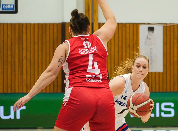 Tvíburasystir Söru, Bríet Sif, átti einnig góðan leik gegn Ármanni í gær og skoraði sextán stig. Systurnar skoruðu því samtals 43 stig í leiknum, eða 43 prósent af stigum Keflavíkur.